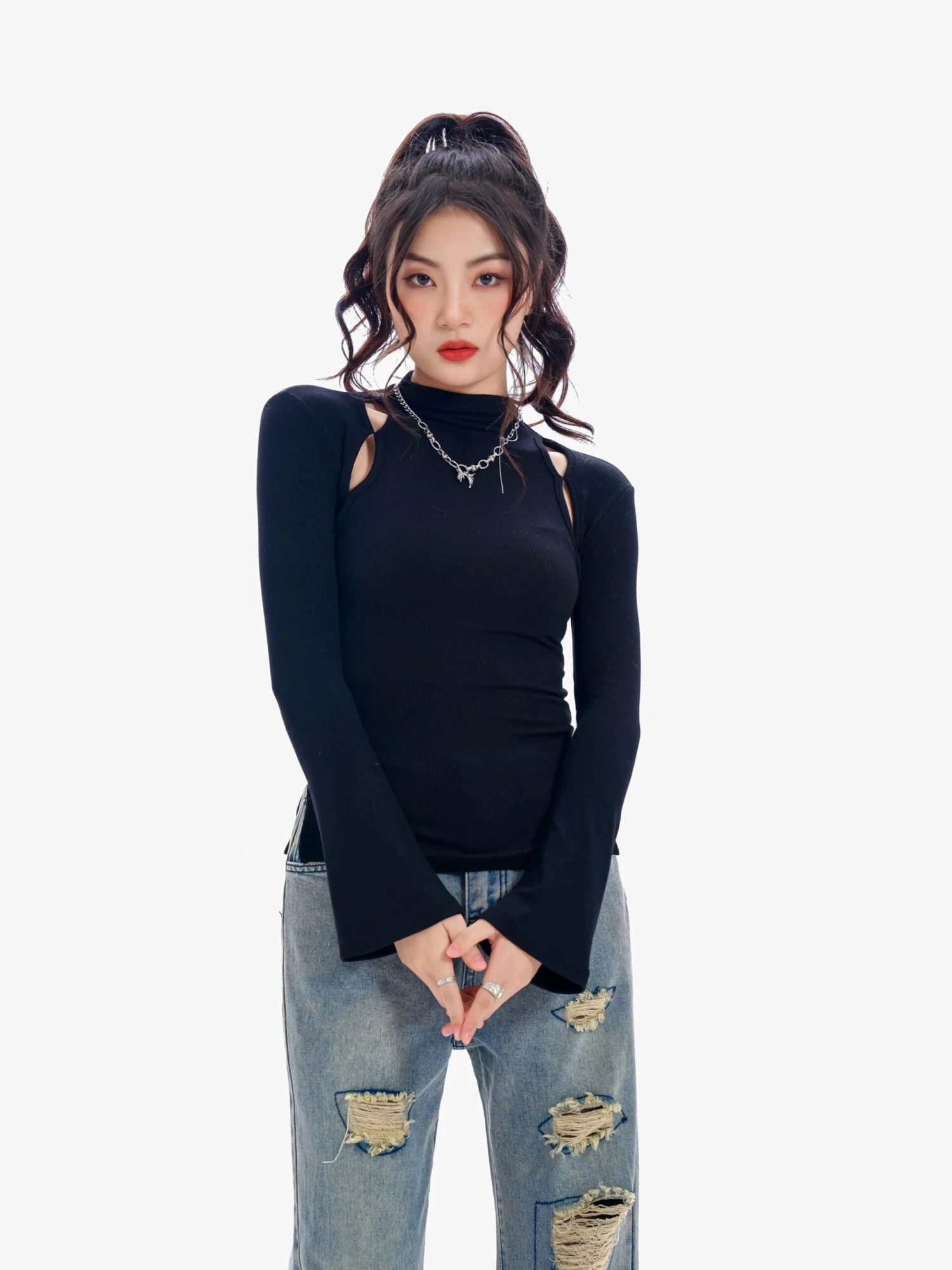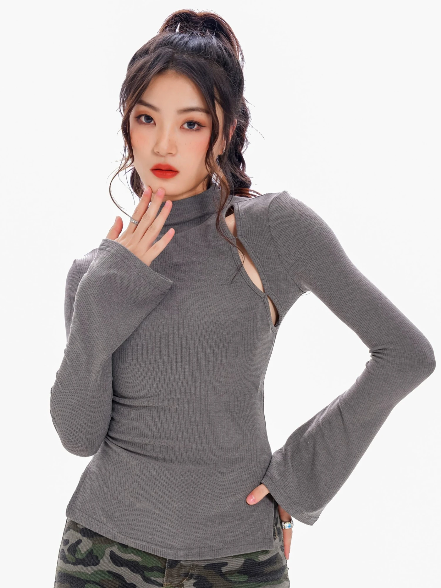 Embrace effortless sophistication with our Ribbed Mock Neck Cutout Long Sleeve Top, a versatile staple that elevates any wardrobe. This chic piece features a distinctive cutout design that provides a hint of allure while maintaining a professional edge, making it perfect for both office days and evening outings. Its ribbed texture and snug fit highlight your silhouette, promising comfort and style in one go.