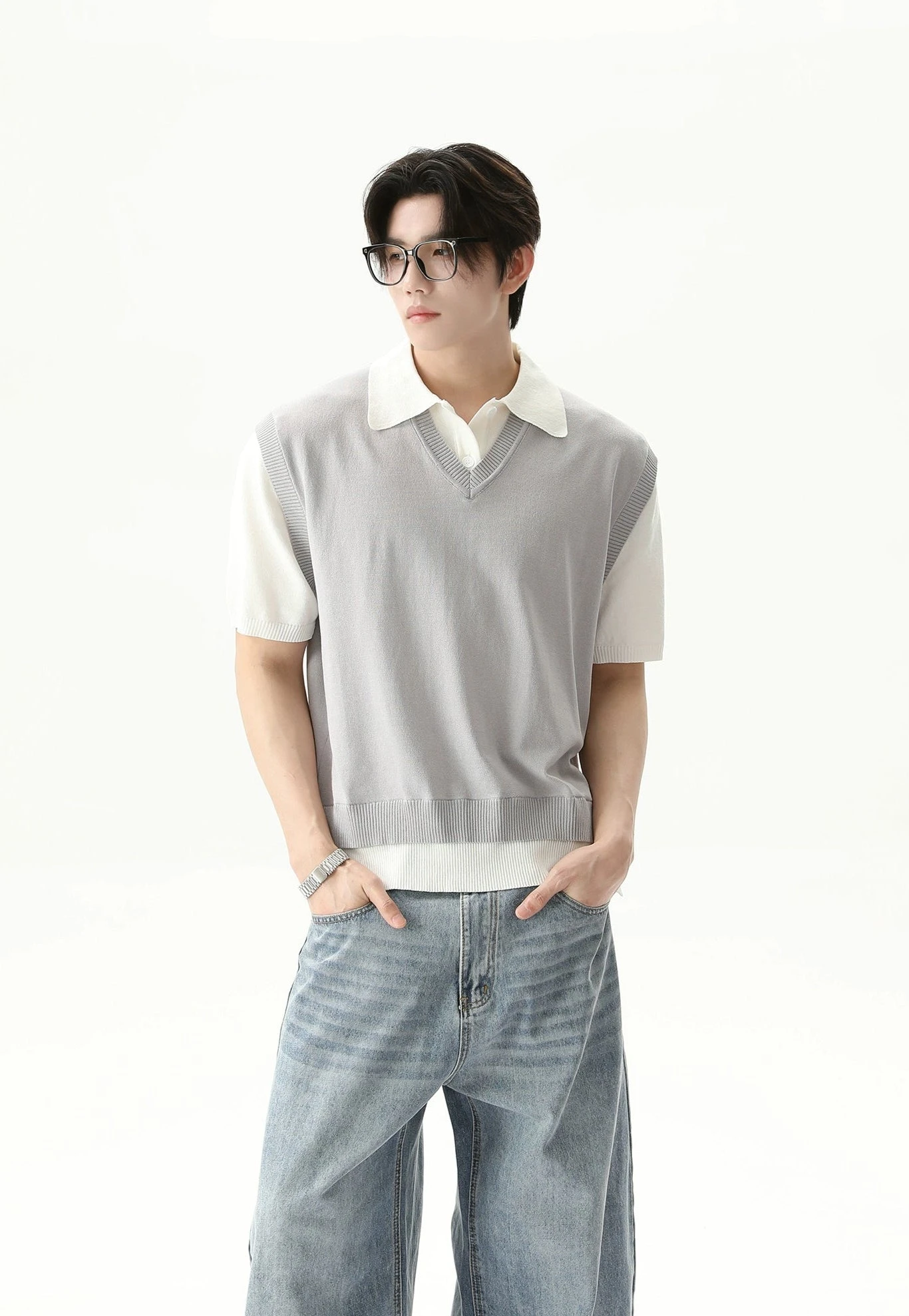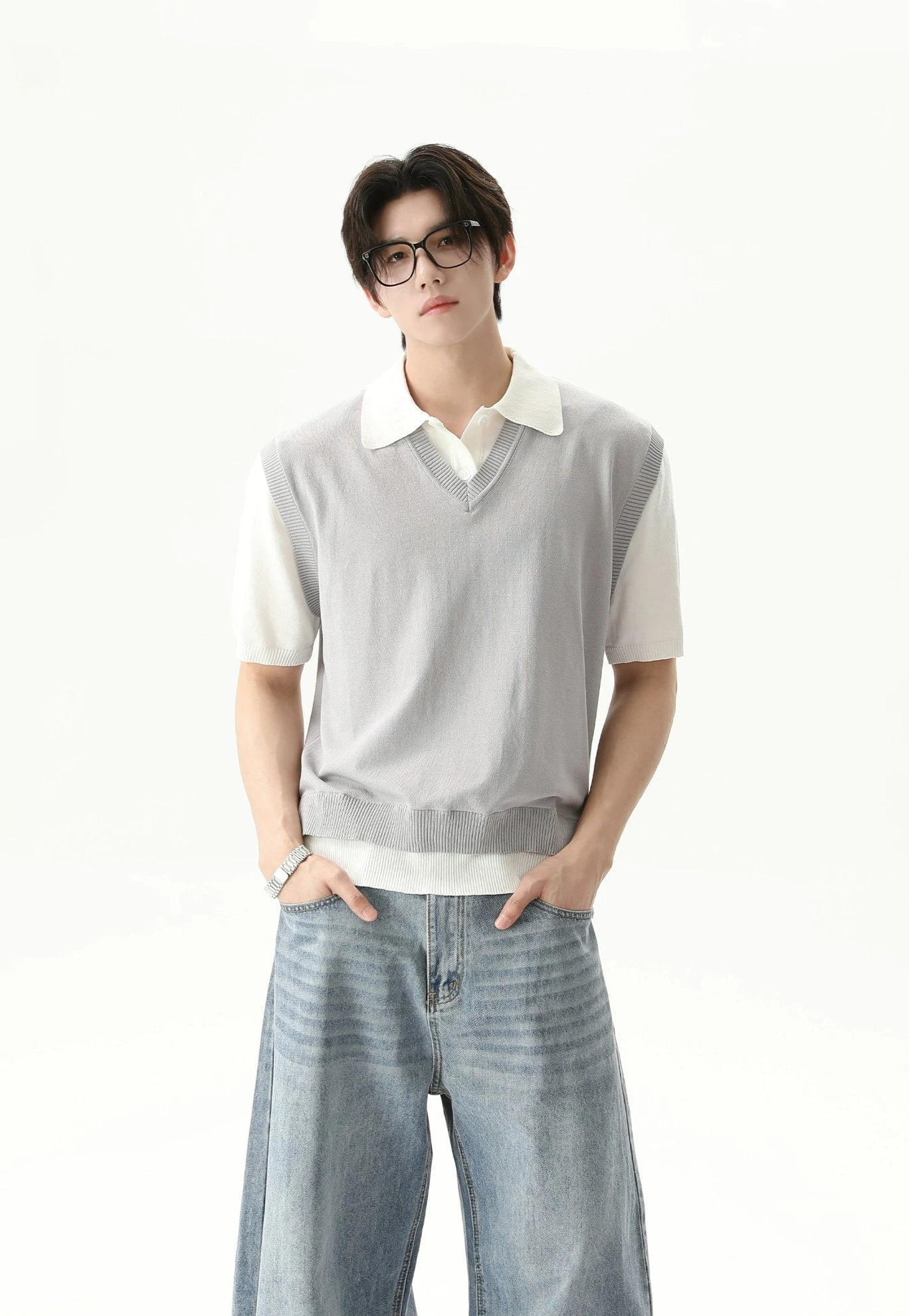 It’s an easy go-to for pulling together a polished outfit with minimal fuss. Made from a blend of lightweight 140D nylon and textured mock linen yarn, it balances breathability with just enough structure. The ribbed vest overlay adds depth and a subtle retro touch, while the underlying collared shirt introduces a refined contrast that keeps things sharp and wearable. Throw it on with loose trousers or denim for a relaxed everyday look, or layer with outerwear when the temperature dips.