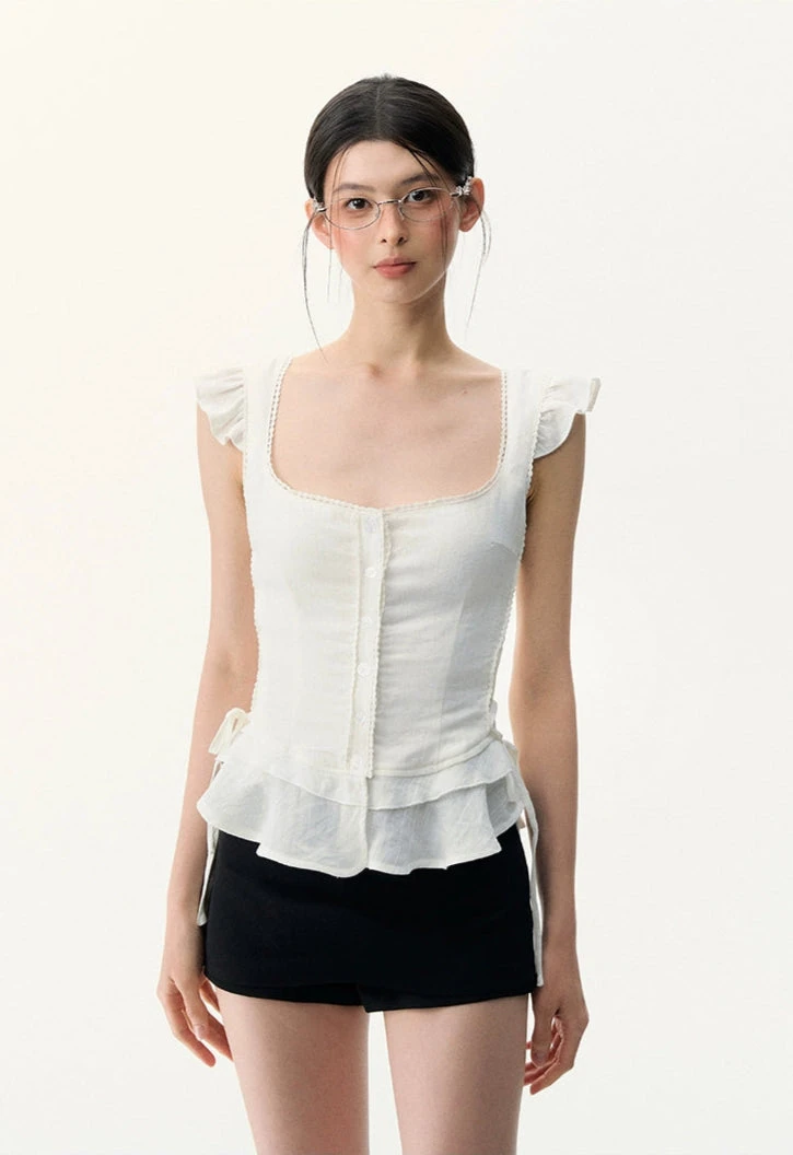 Whether you’re pairing it with relaxed trousers for a gallery stop, or fitted denim for something less curated, this top balances feminine energy with quiet confidence.