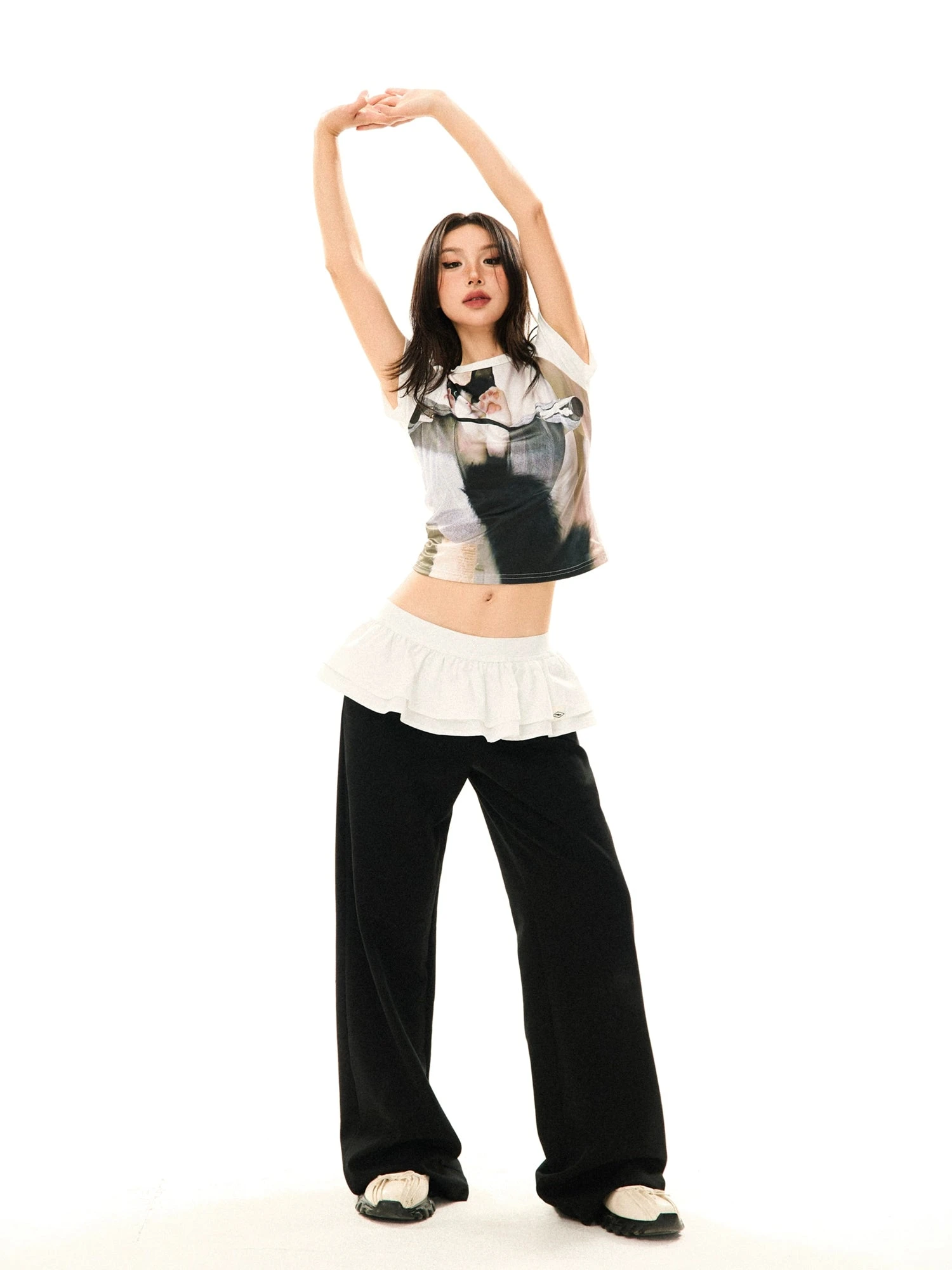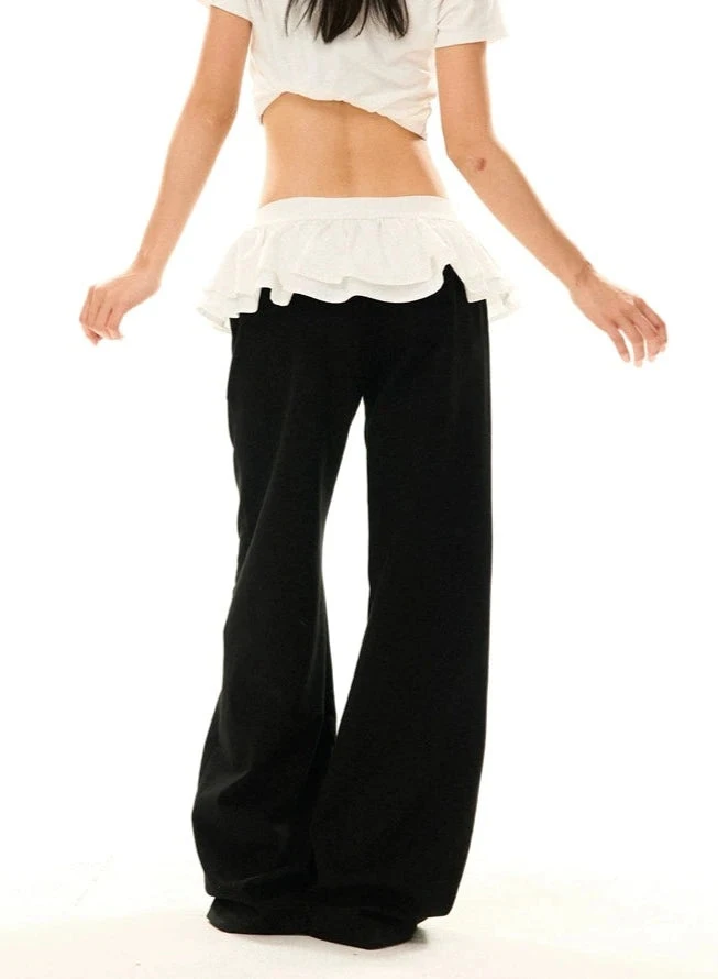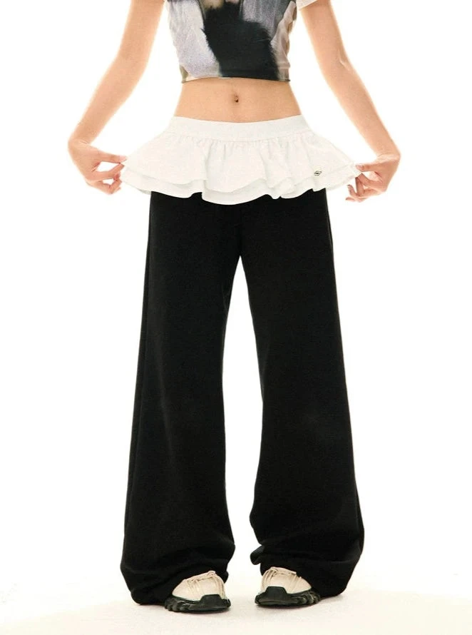 Crafted from plush velvet, these straight pants boast a unique mock skirt overlay, exuding an intriguing blend of sophistication and avant-garde style. The high waist design complements the loose fit, offering a silhouette that’s both flattering and liberating.