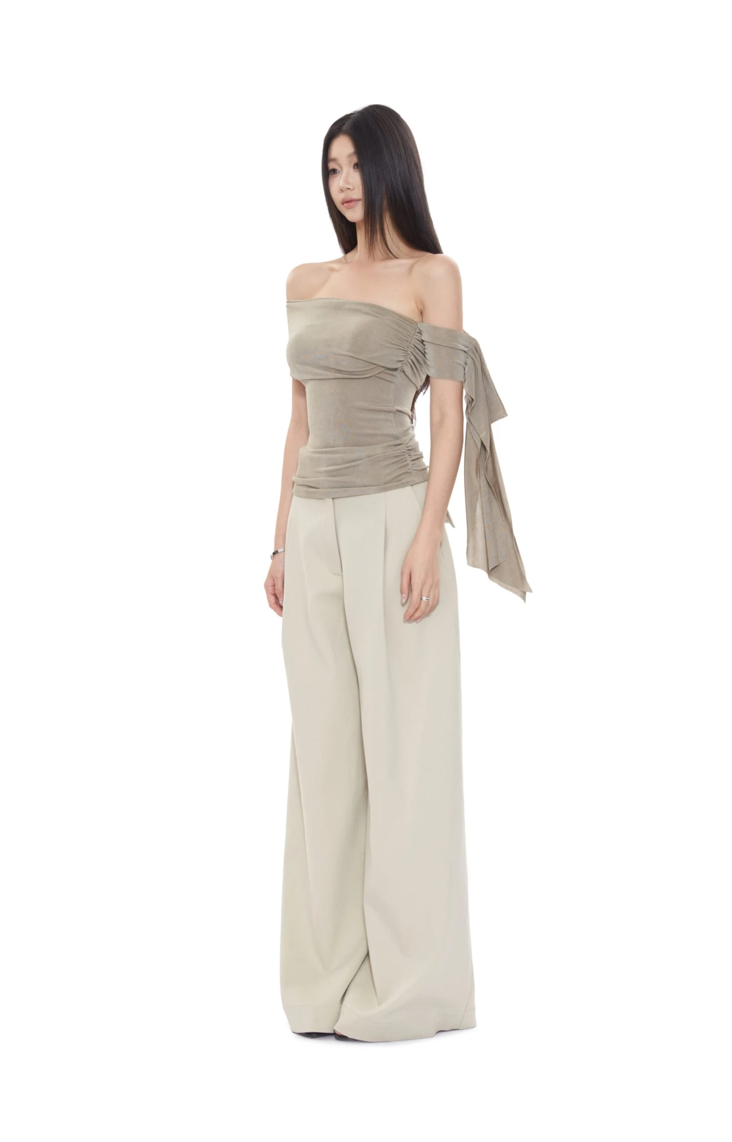 The Sheer One Shoulder Ruched Wrap Mesh Top brings a low-effort statement with its off-shoulder cut and fluid, ruched wrap detail.