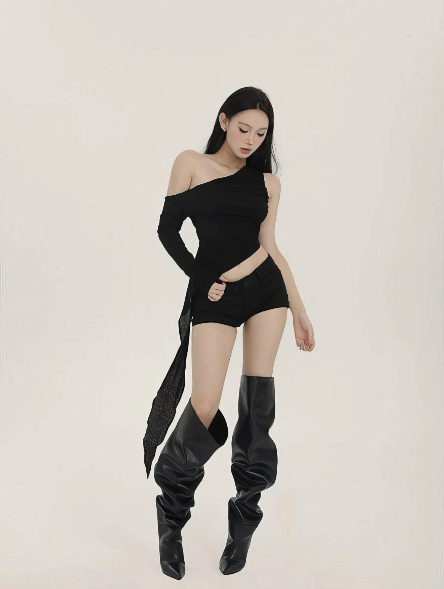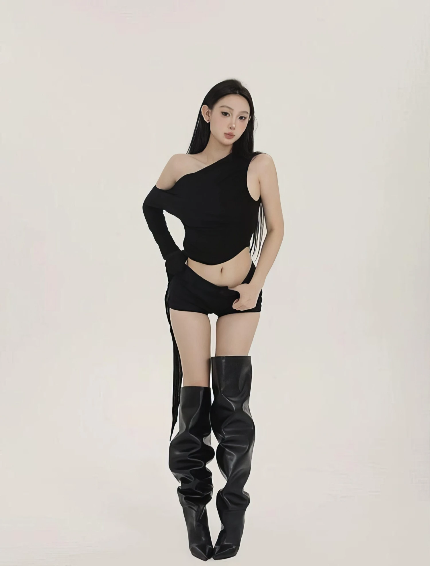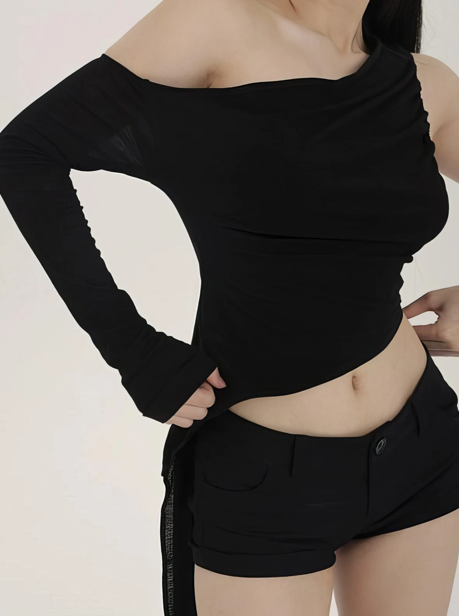 Embrace the allure of asymmetry with this Skinny Asymmetric One-Shoulder Crop Top, a fresh take on casual elegance.