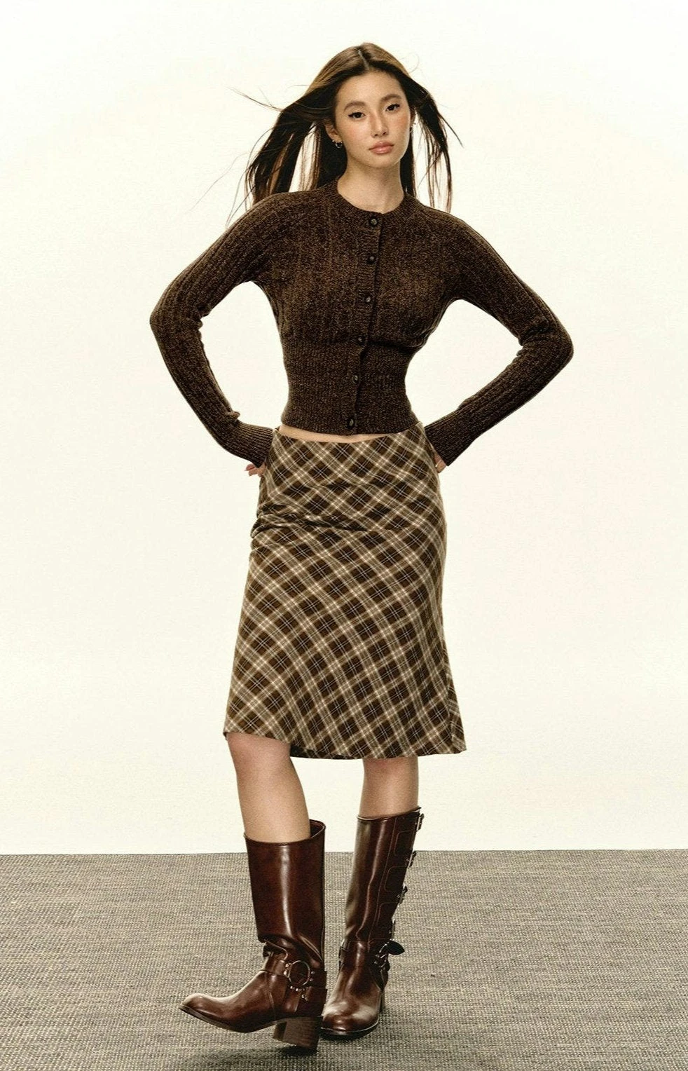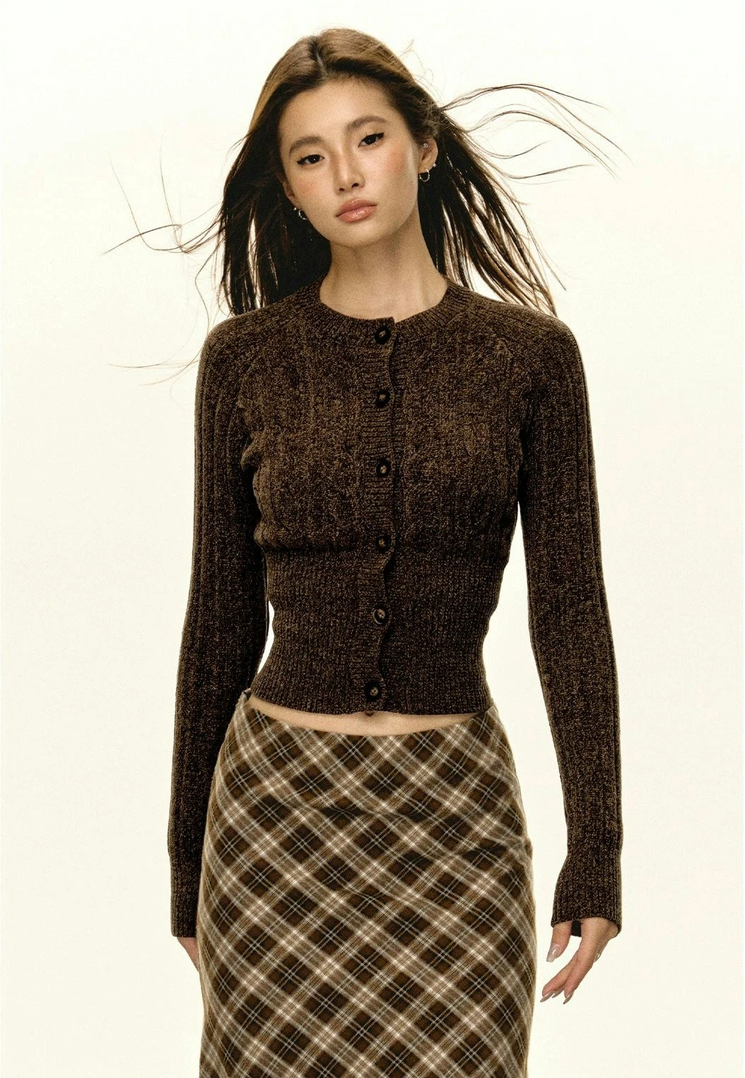 Unlock the quintessence of fall fashion with the Skinny Cable Knit Button-Up Cardigan, a perfect blend of retro charm and contemporary finesse.