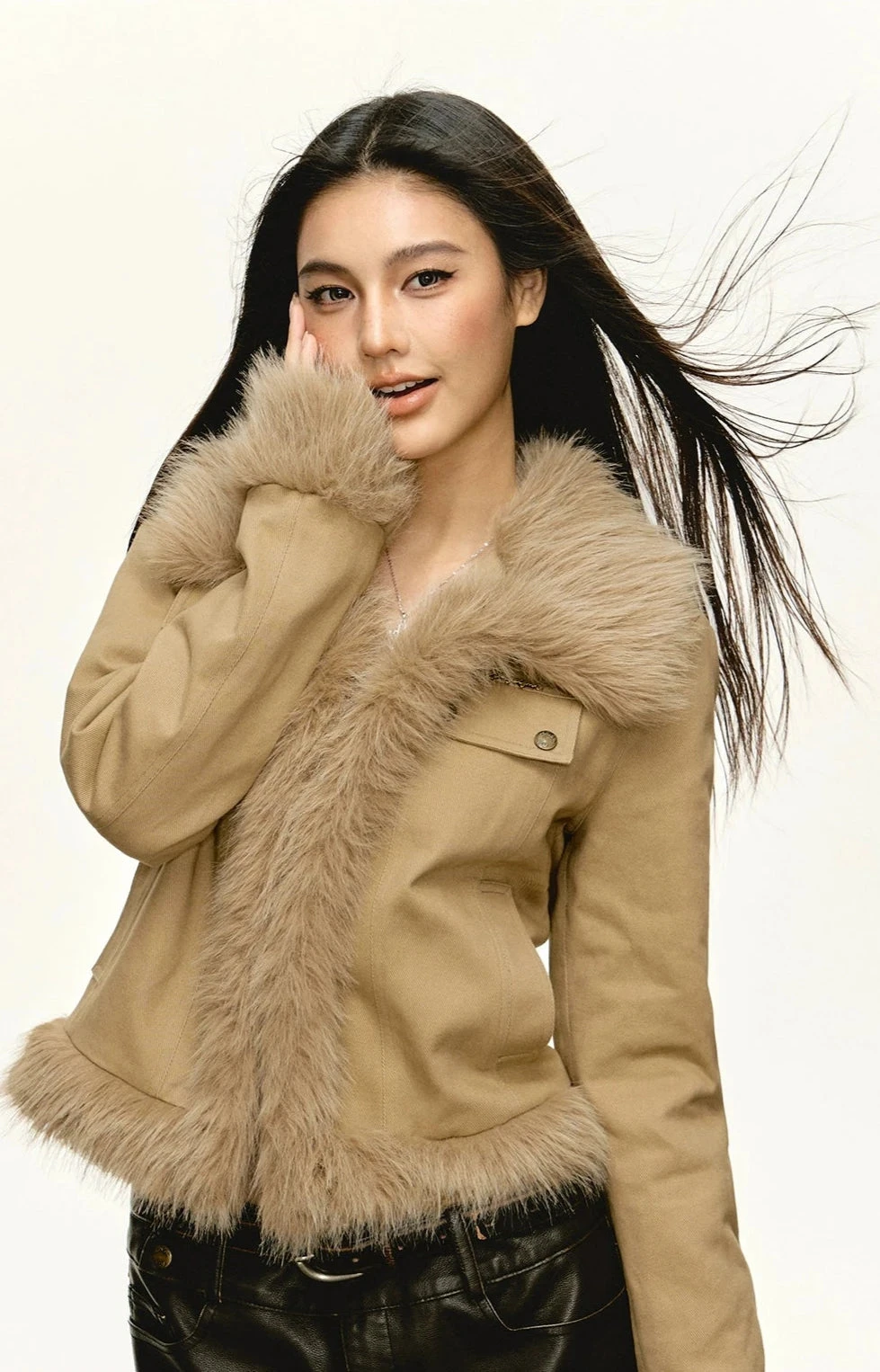 Chic meets street with this Skinny Faux Fur Trim Zip Jacket, a fresh take on urban outerwear.
