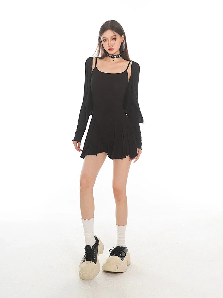 Experience effortless style with our Sleeveless Crop Top and Pleated Shorts with Cardian Tee Three-Piece Set, a sophisticated yet comfortable ensemble perfect for modern wardrobes.