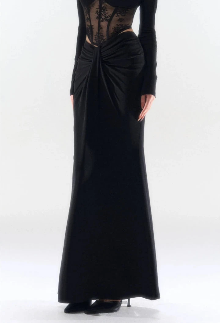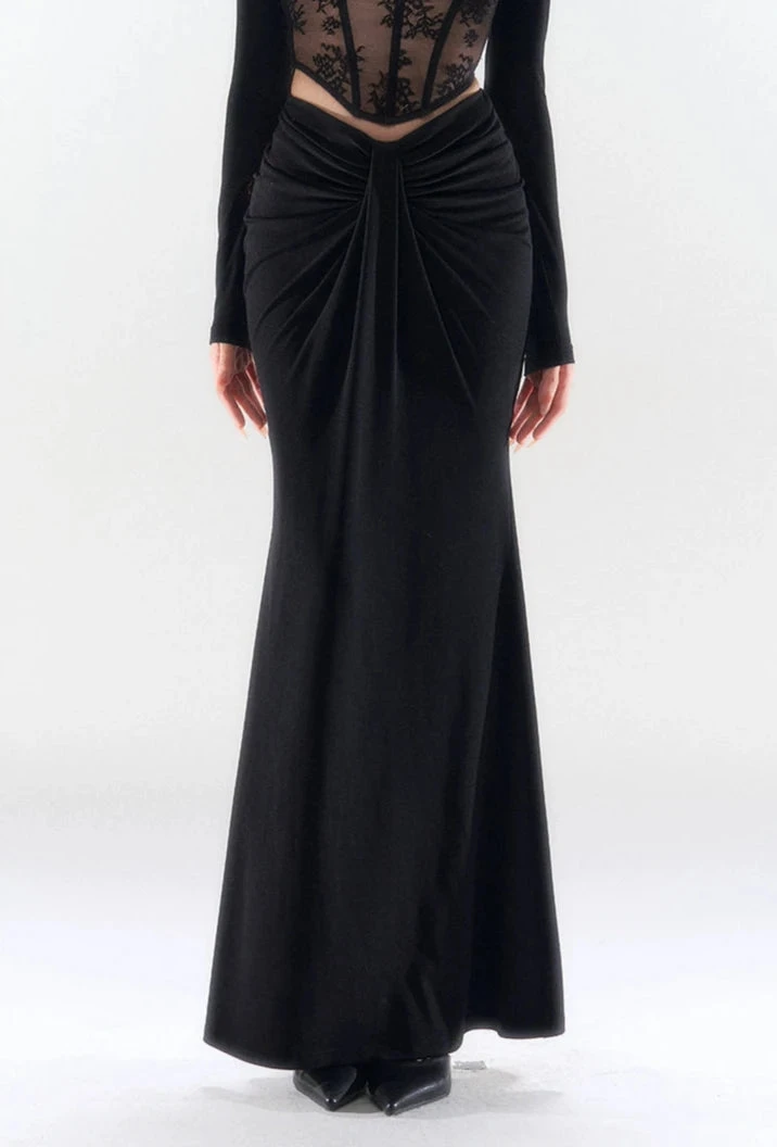 Discover the allure of sophistication with the Slim Ruched Serpentina Maxi Skirt, a piece where form meets function.