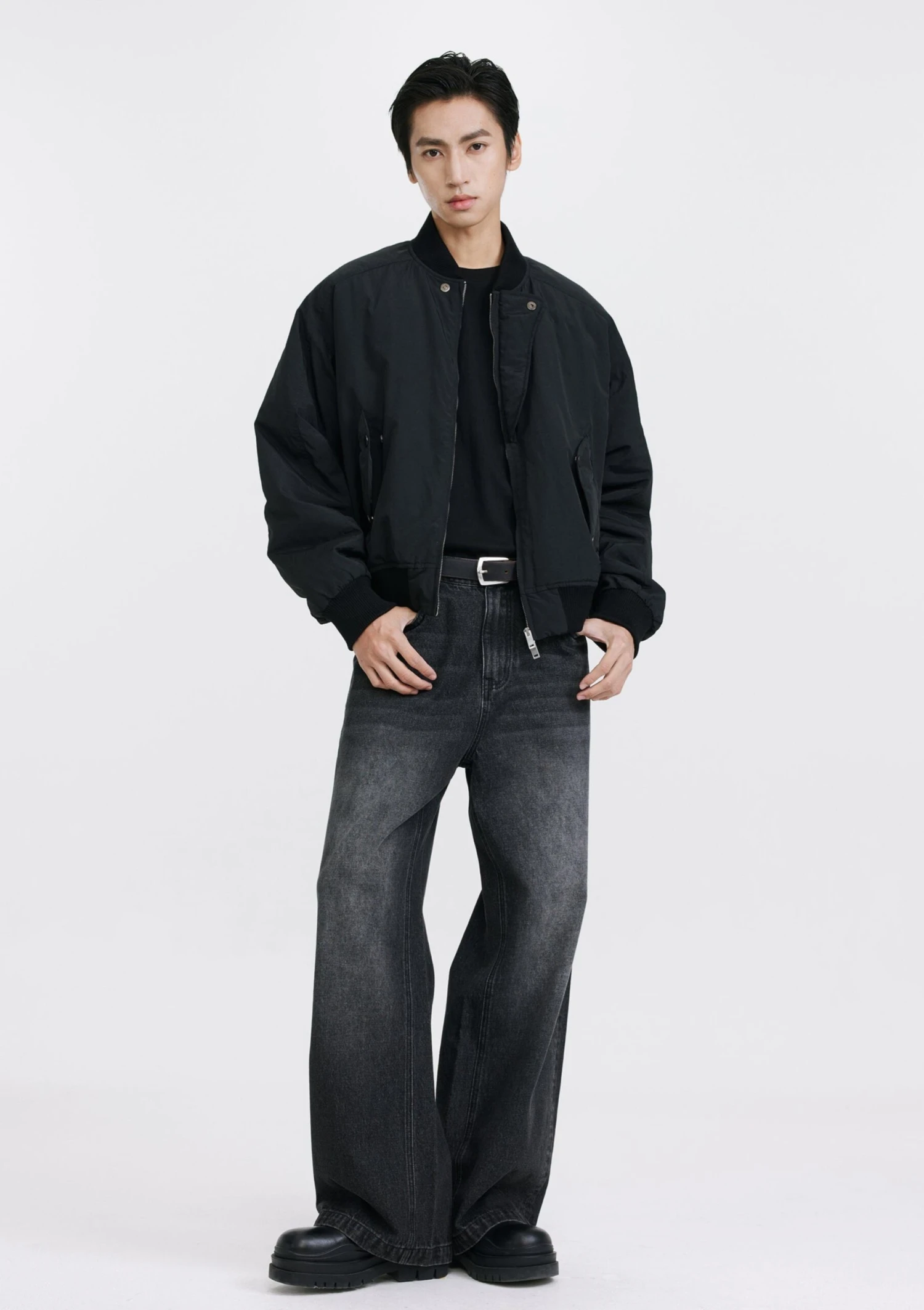 Designed for comfort and edge, this is the outerwear piece that does the heavy lifting, so you don’t have to. Crafted from tightly woven polyamide for durability and wind resistance, the jacket features a double-ended white copper zipper and discreet magnetic snap pockets for sharp, functional style. Ribbed trims at the cuffs, hem, and collar lock in warmth and deliver a refined finish, while the soft-touch imitation silk filling keeps things insulated without too much bulk.
