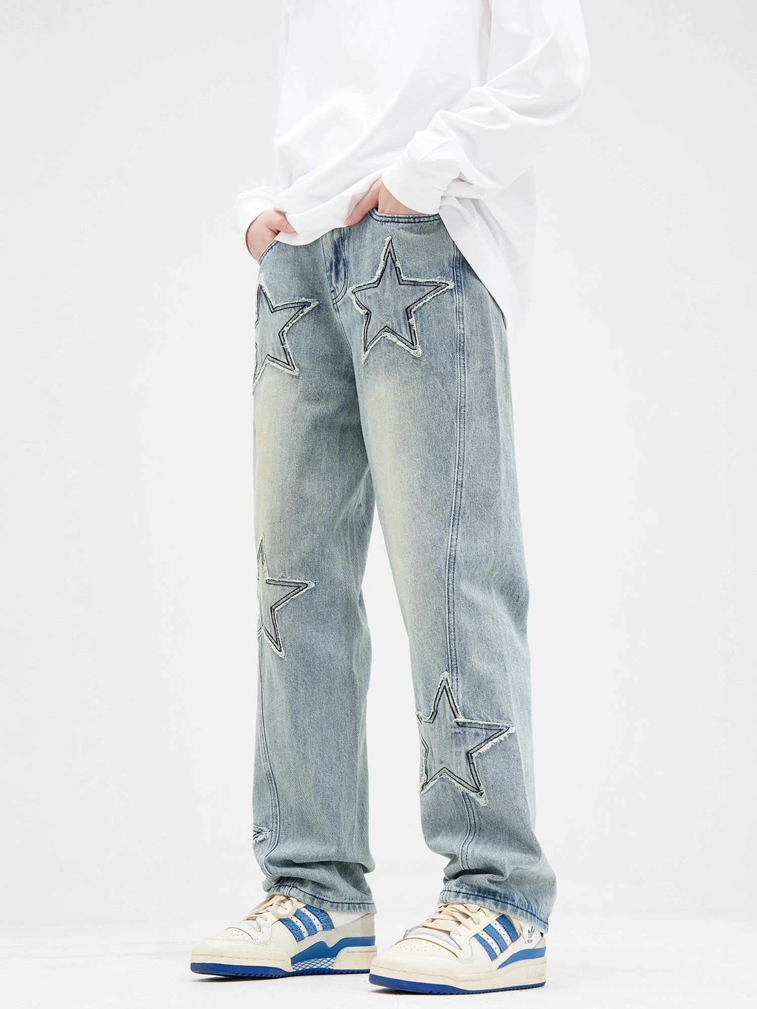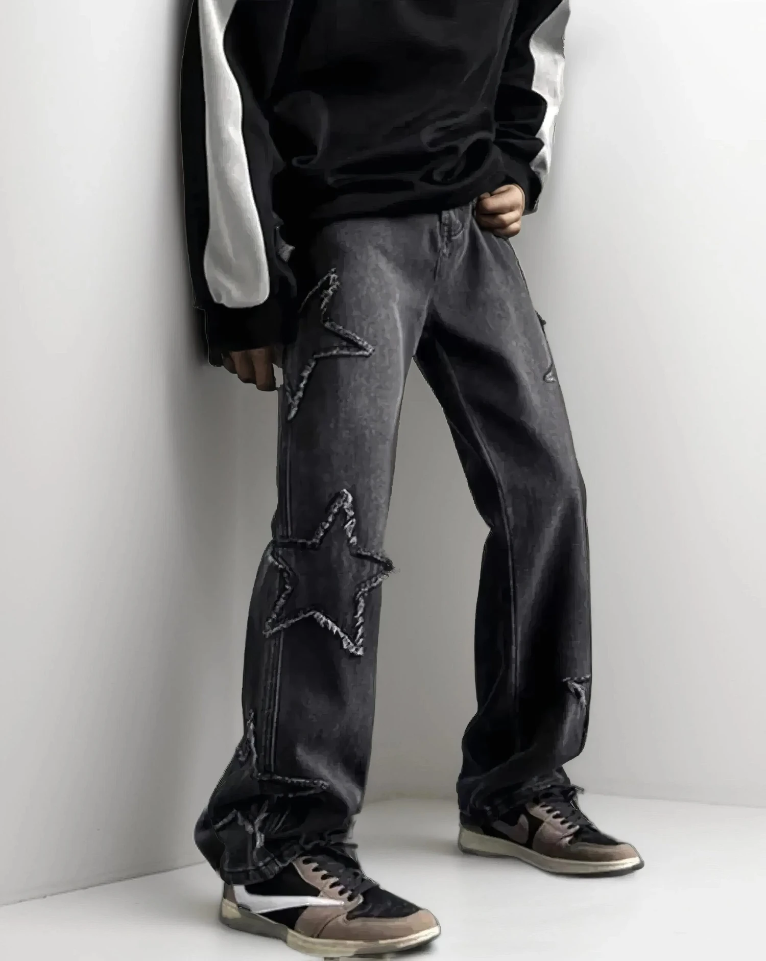 With these Star Patchwork Straight Fit Jeans, you’ll be comfortable and stylish all day long. The star patchwork detail adds a bit of fun and personality to these otherwise casual jeans. They’ll go great with any top, making them a versatile and valuable addition to your wardrobe. So go ahead and add these jeans to your cart now. You won’t regret it.