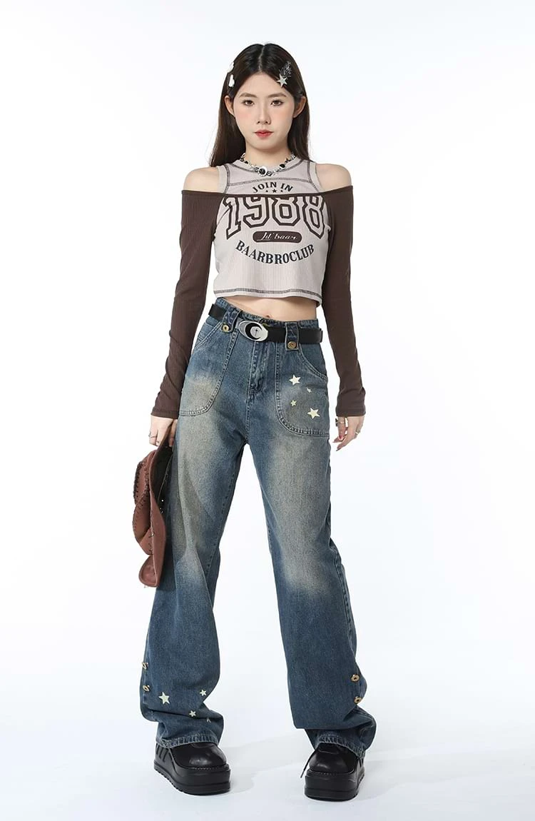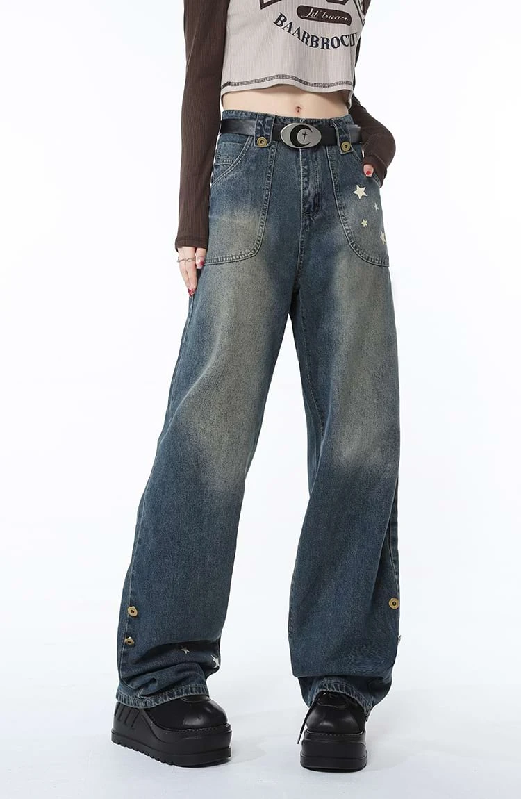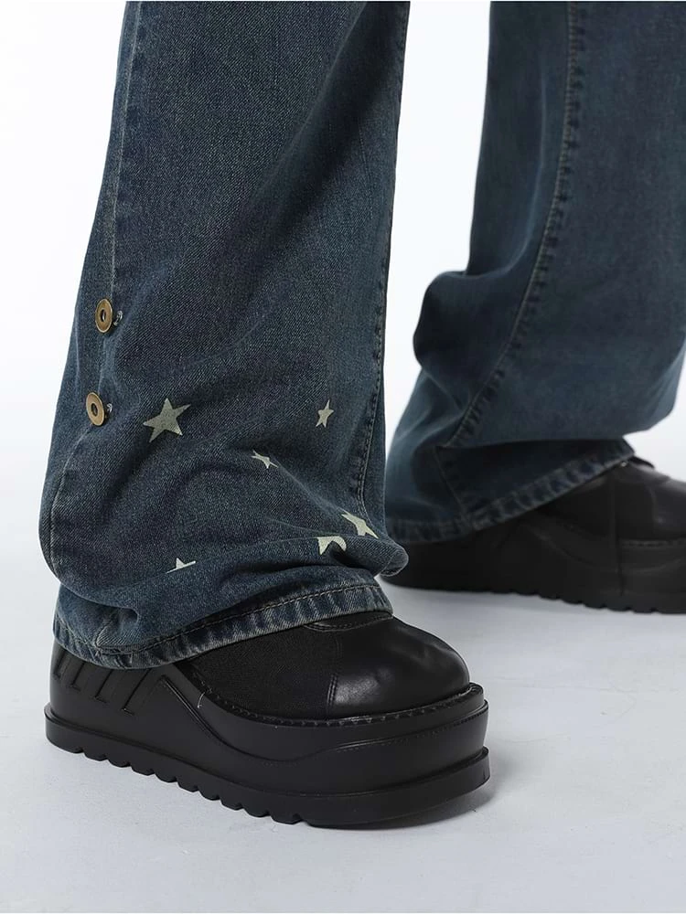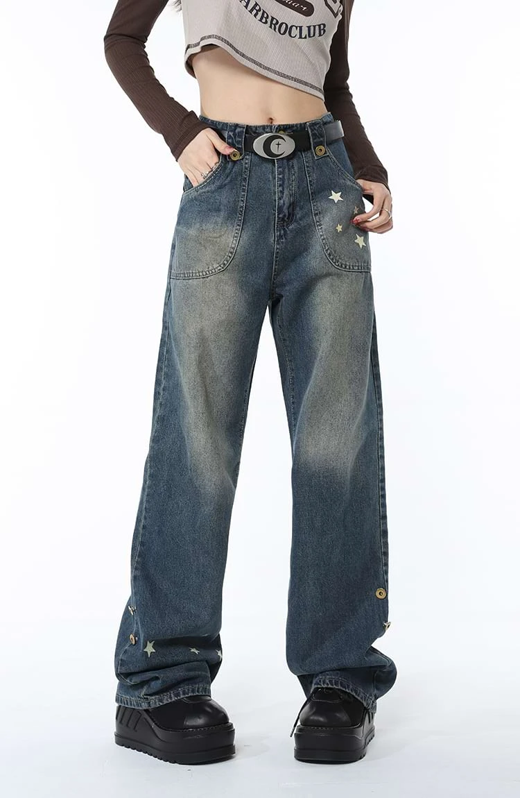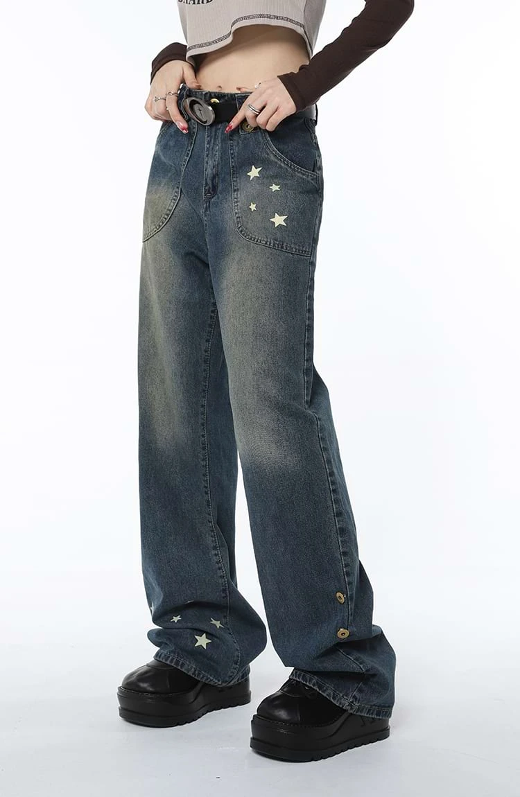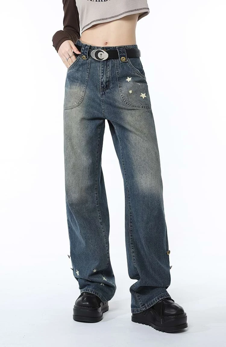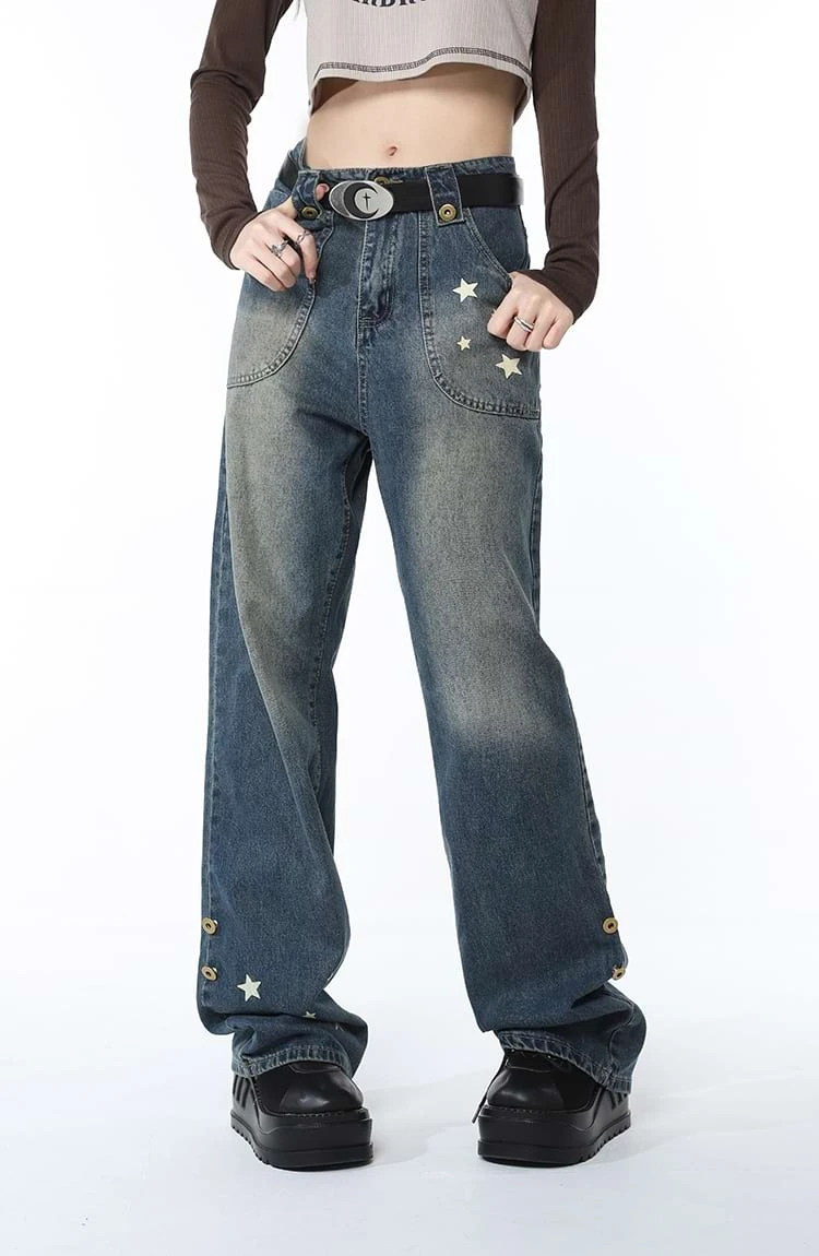 It’s time to upgrade your wardrobe with this sweet pair of wide-legged faded jeans from nightcity clothing. This denim is made with a star pattern, giving you a unique look that will have heads turning. Whether you’re rocking a casual day look or going out for the evening, these jeans pairs perfectly with any top and shoes – from sneakers to sandals. Get your hands on the star-studded look that will take you anywhere this season.