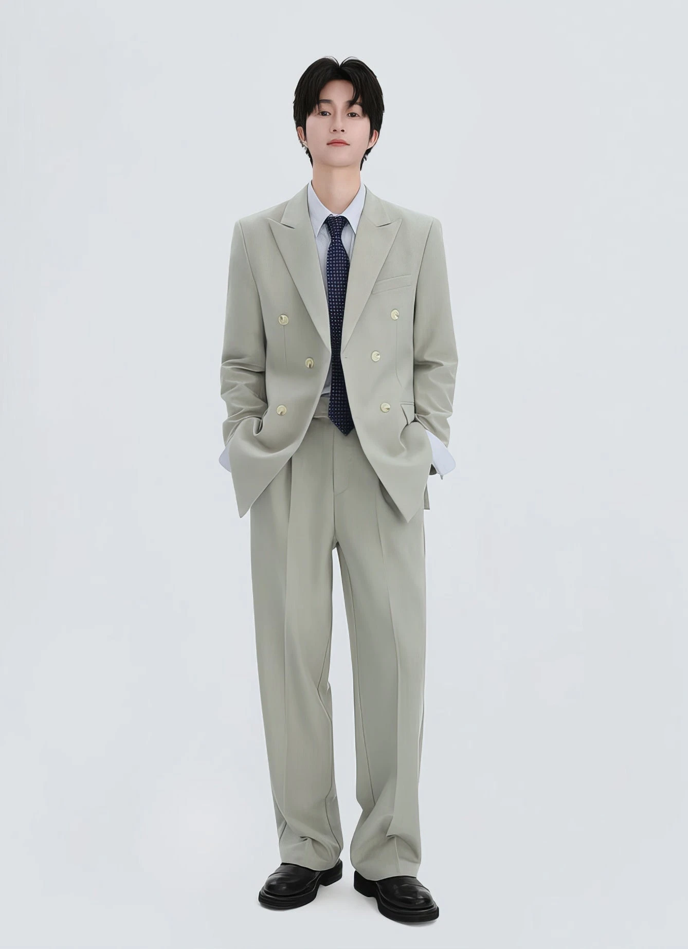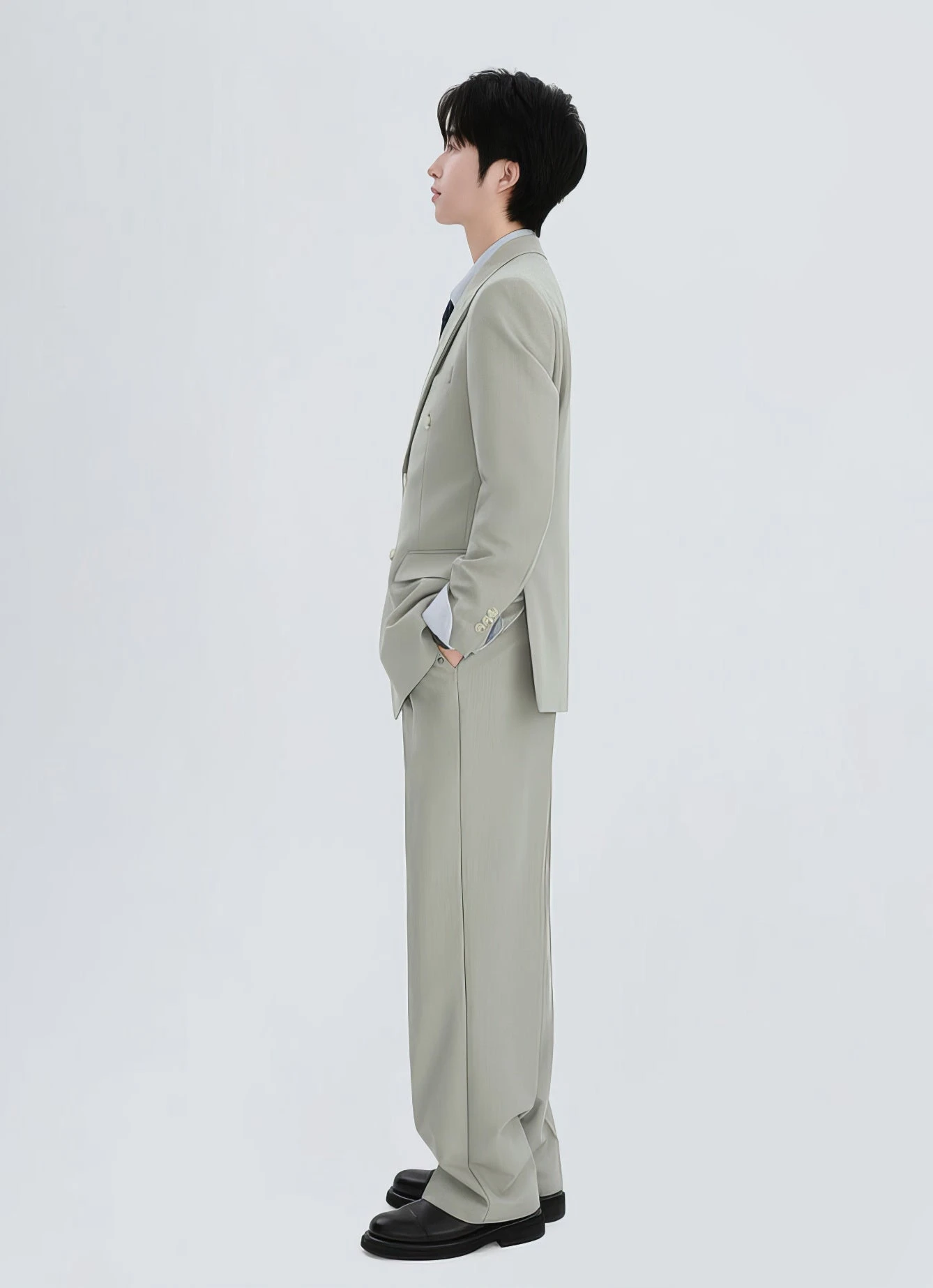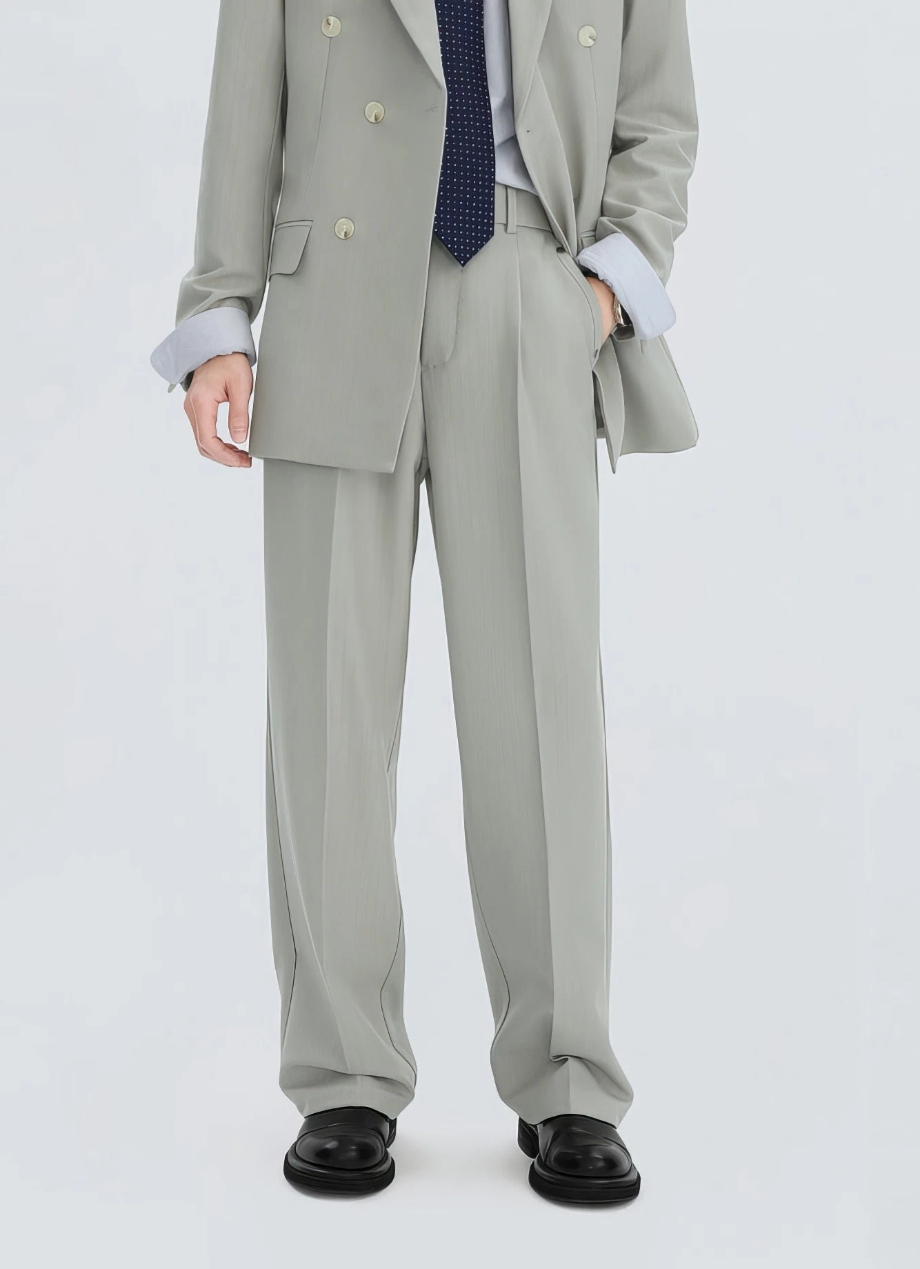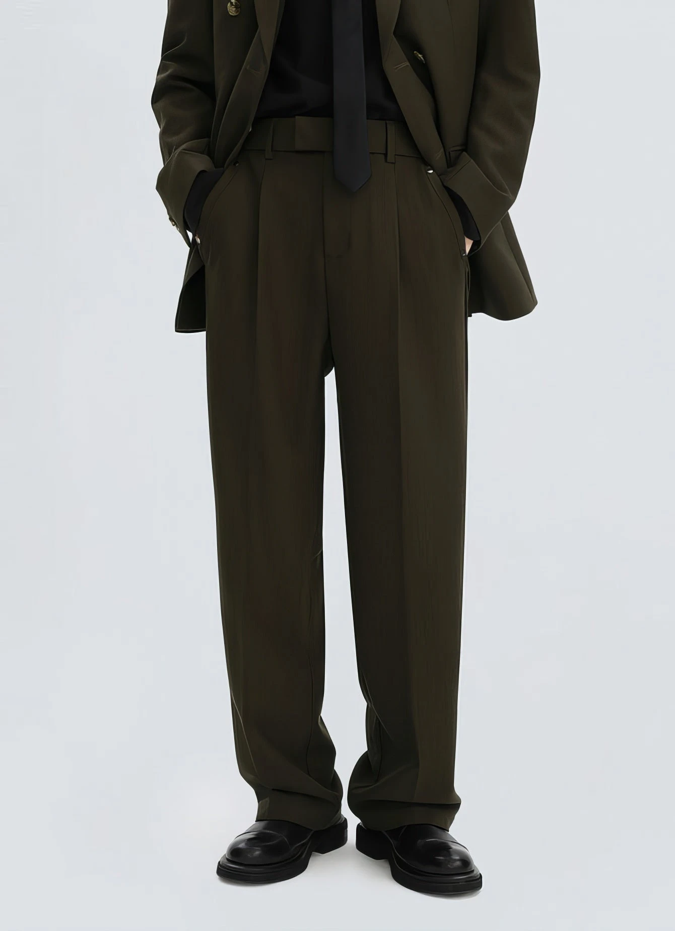 Designed with a soft drape and clean pleats, they strike the right balance between structure and ease. Crafted from a breathable blend with a subtle tactile feel, the tailored silhouette features understated belt loops, a stretch-adjusted waist, and side pockets that blend into the design. The tone-on-tone texture keeps the look minimal while adding quiet detail.
