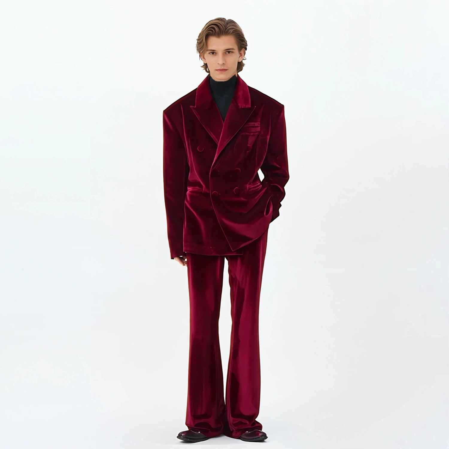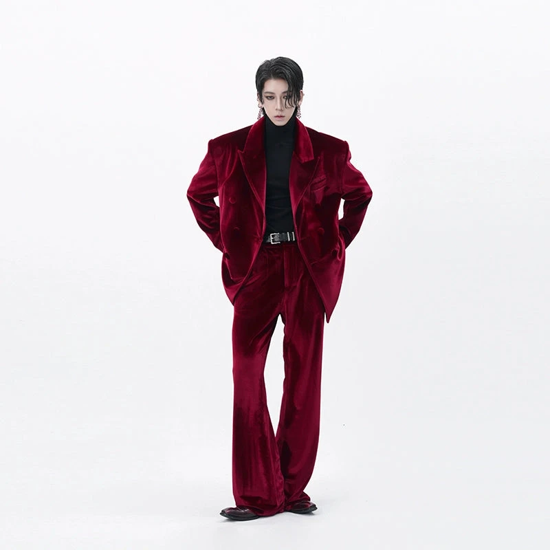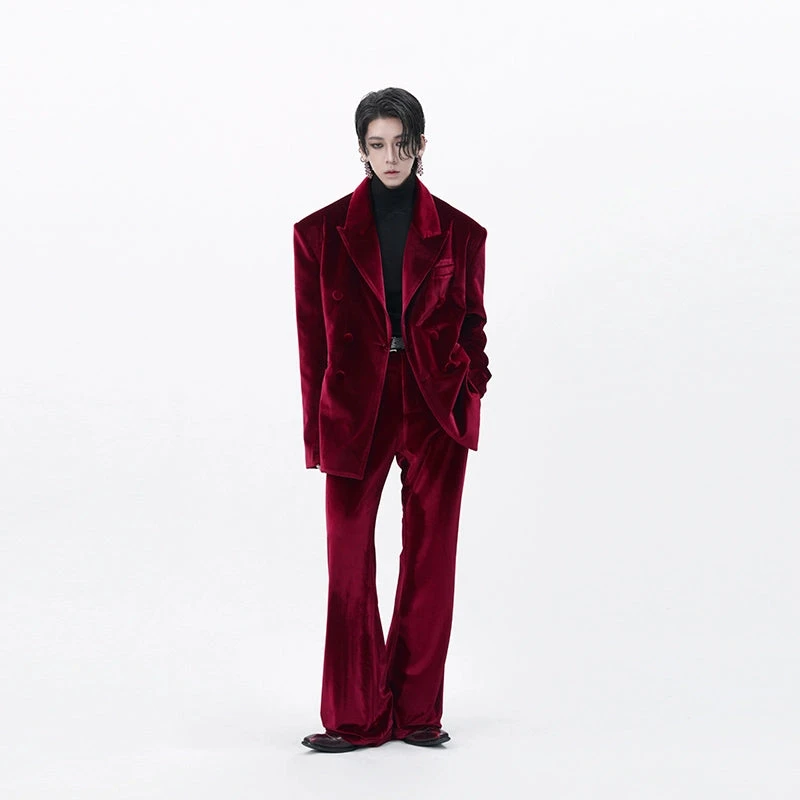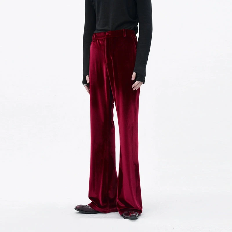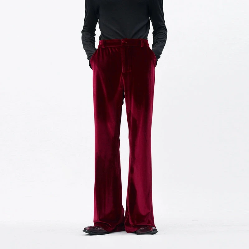 Cut from rich velvet with a soft luster, these straight leg semi-flare trousers make a quiet statement without trying too hard.
