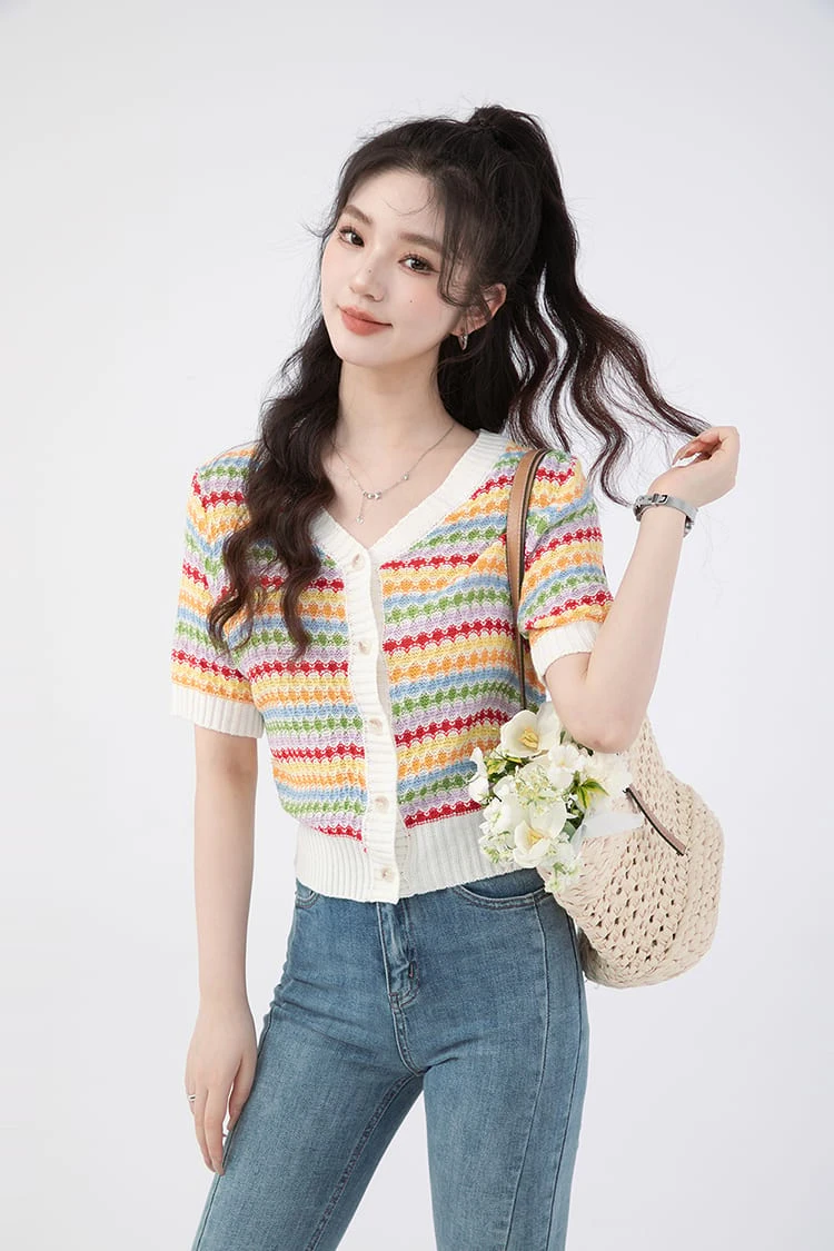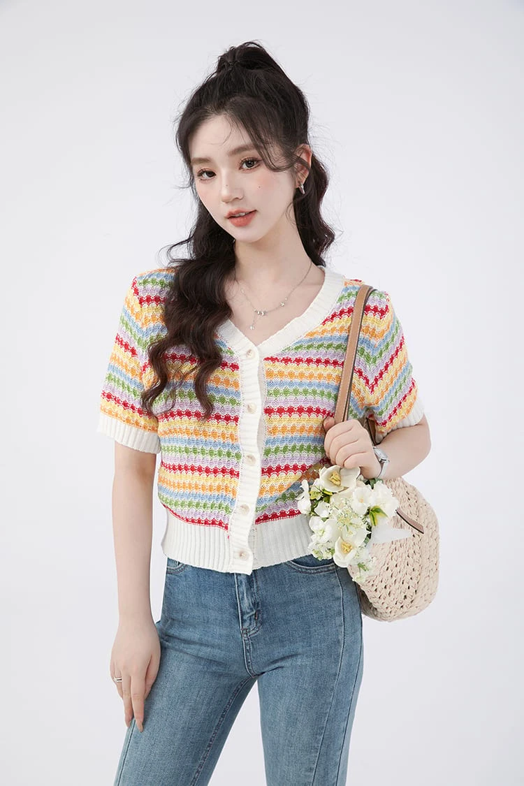 Meet the Stripe Cropped Ribbed Hem Cardigan, the perfect piece for your layered look. Featuring a bright color and ribbed hem, this casual cardigan can be worn on its own or as a layer. With buttons that stay open when you layer up, you’ll be ready to hit the town in style, best paired with your favorite jeans.