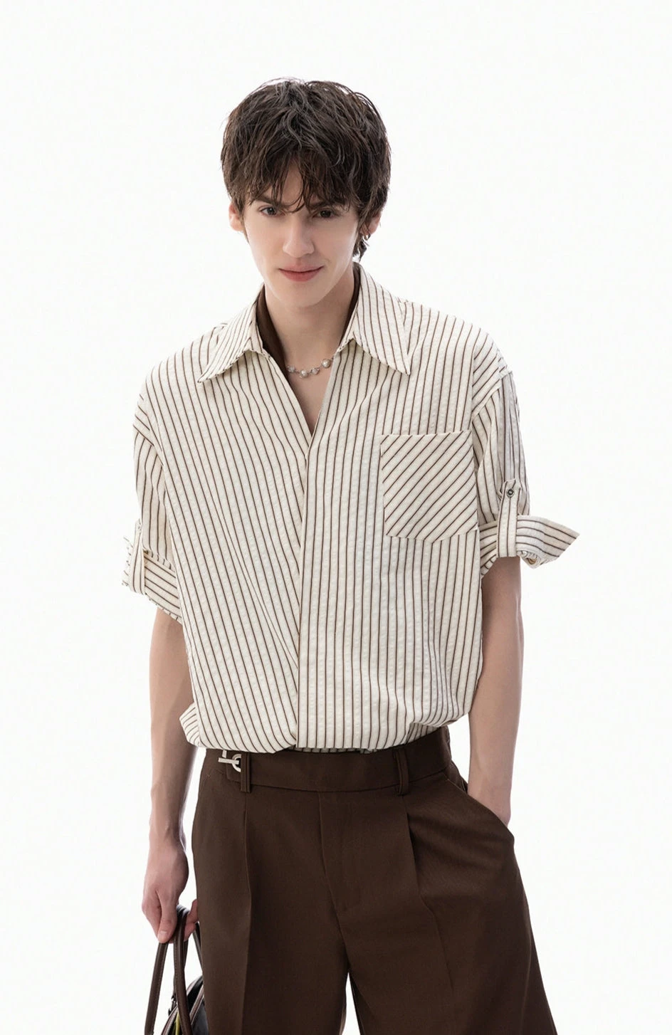 Whether layered over a tee, tucked into pleated trousers, or left open with denim, this shirt adapts to whatever tone you’re going for.