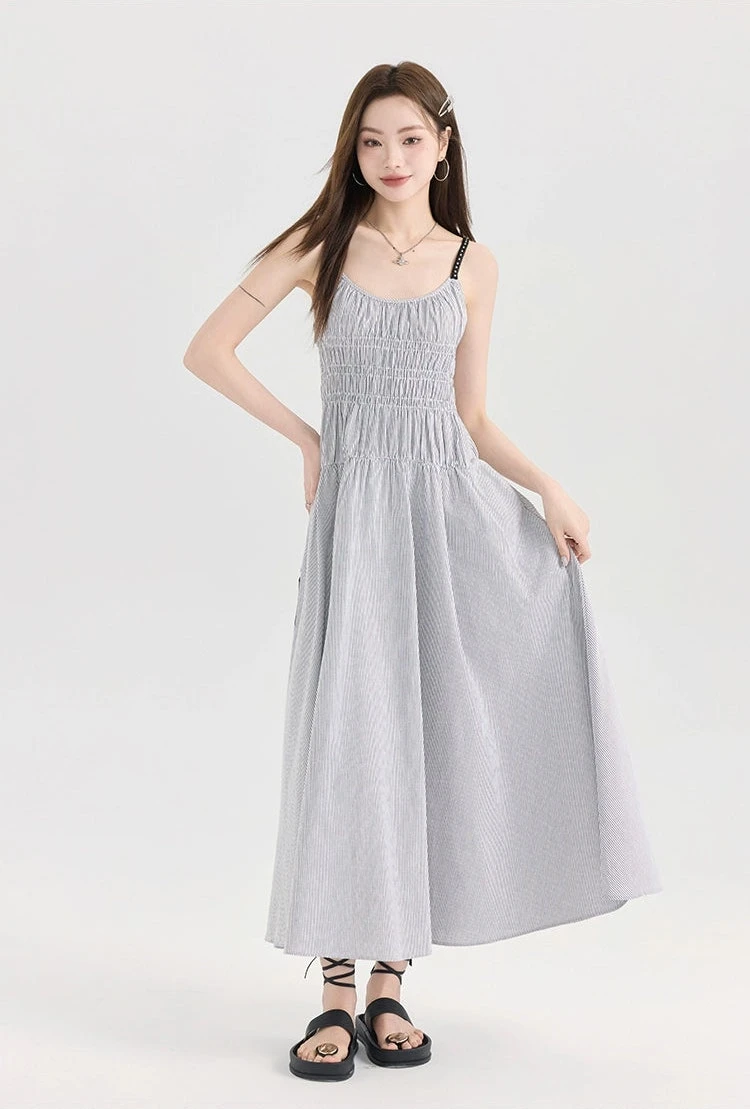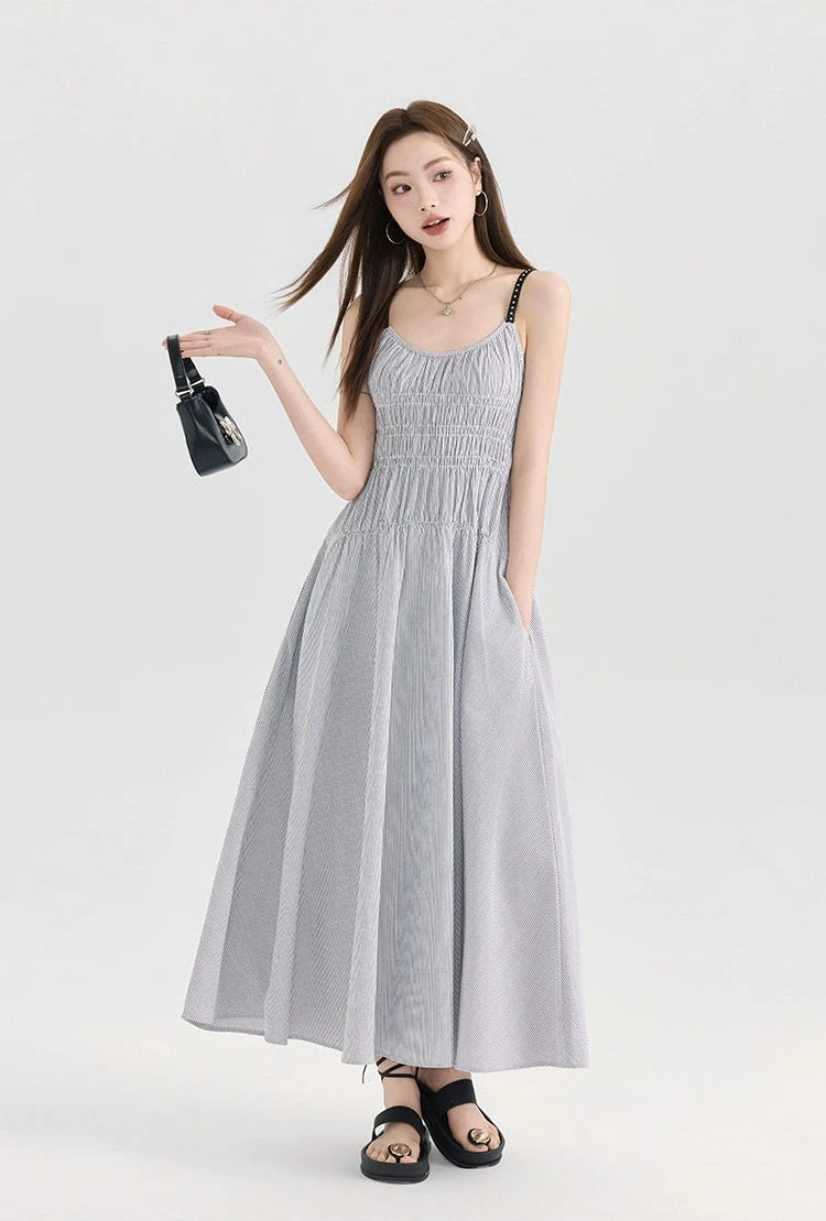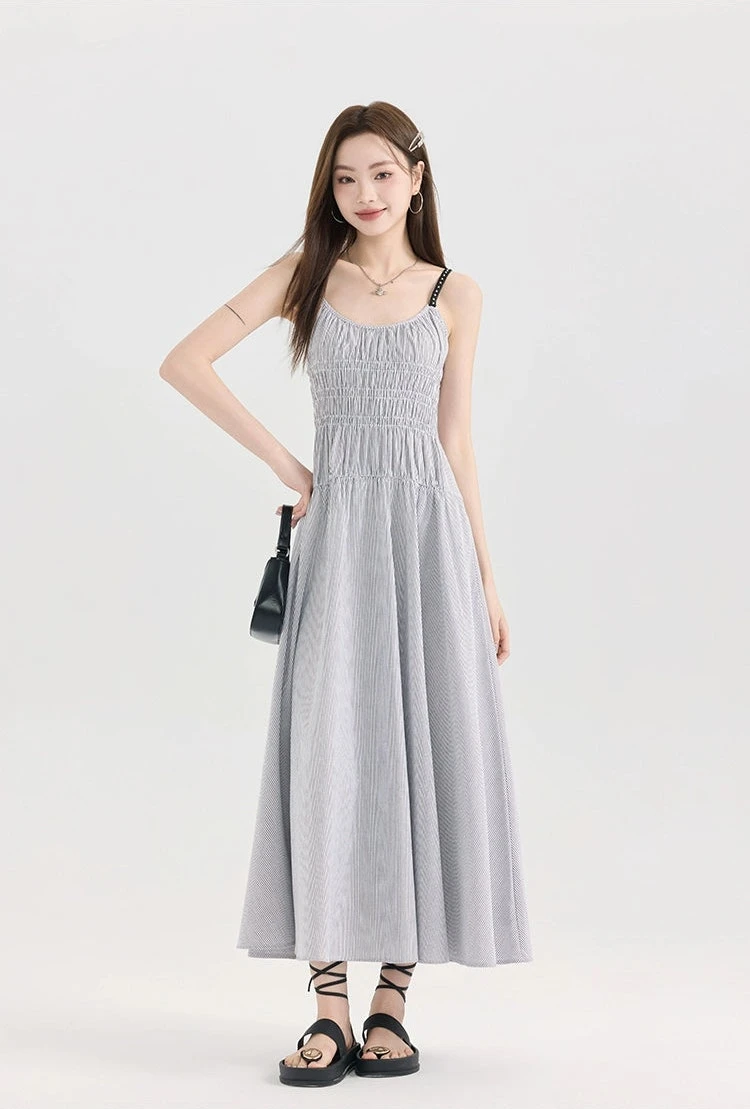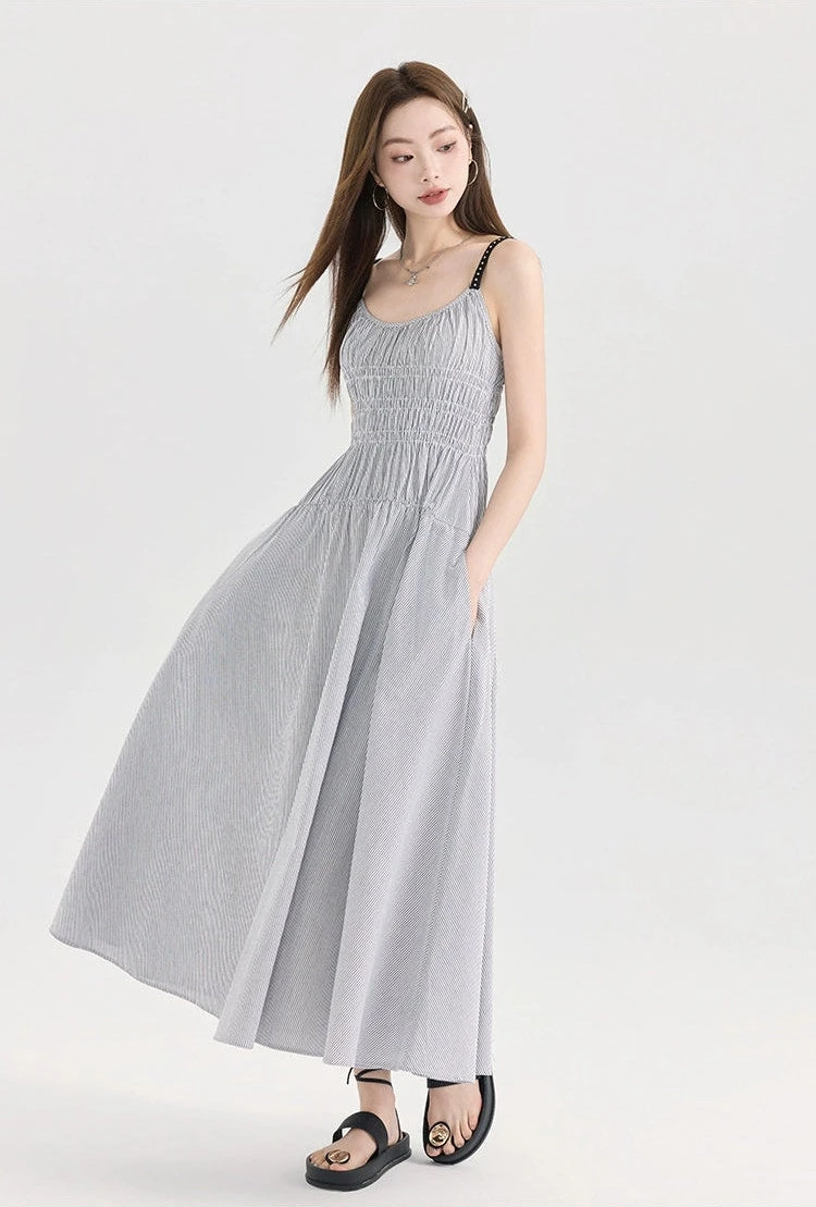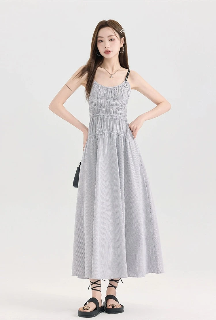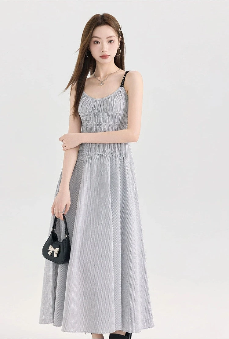 Step into the effortless elegance of the Striped Midi Sundress, a perfect fusion of comfort and chic style.