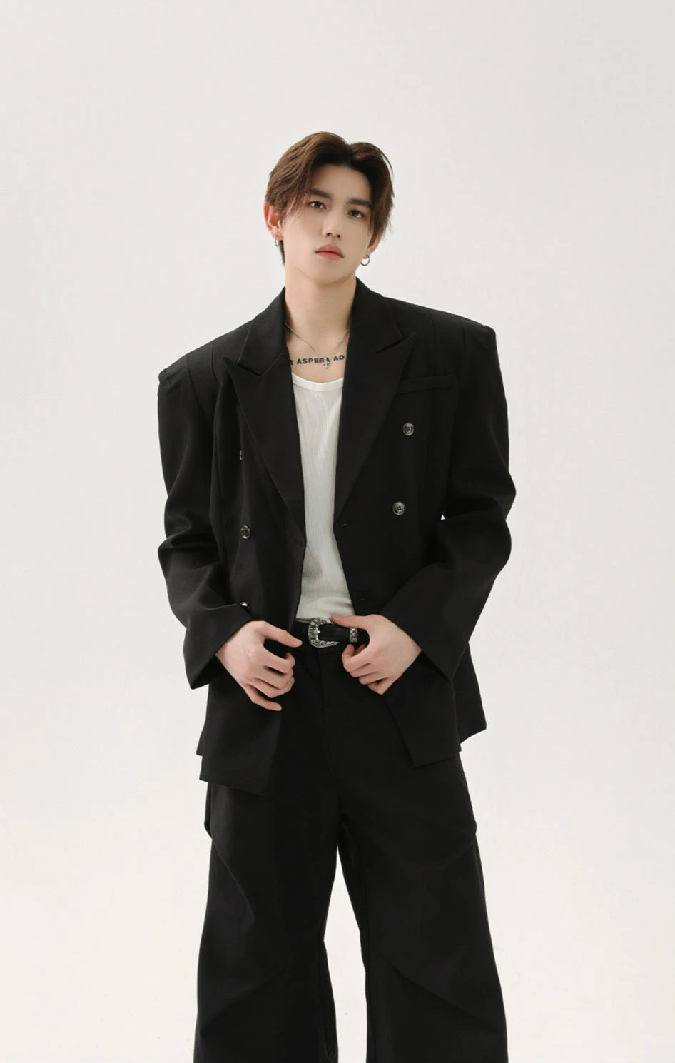 Made for those who lean into confidence but don’t need to shout, it walks the line between effortless cool and tailored polish. Crafted from a durable blend of polyester and spandex, the fabric offers a clean look with reliable wrinkle resistance and a smooth hand feel. The wide lapel and sculpted waist give structure to its relaxed cut, while the subtle padded shoulders elevate the form without making it stiff. The solid black tone keeps it versatile and grounded in everyday wear.