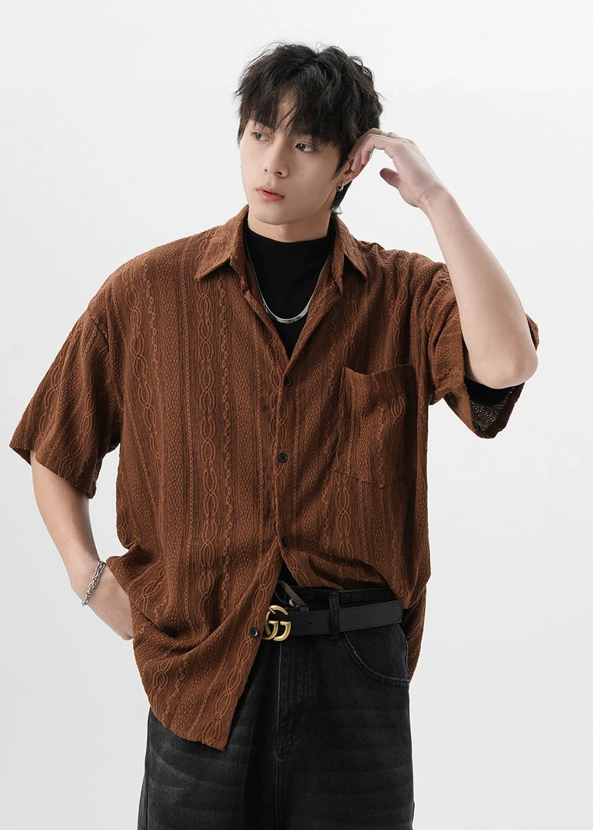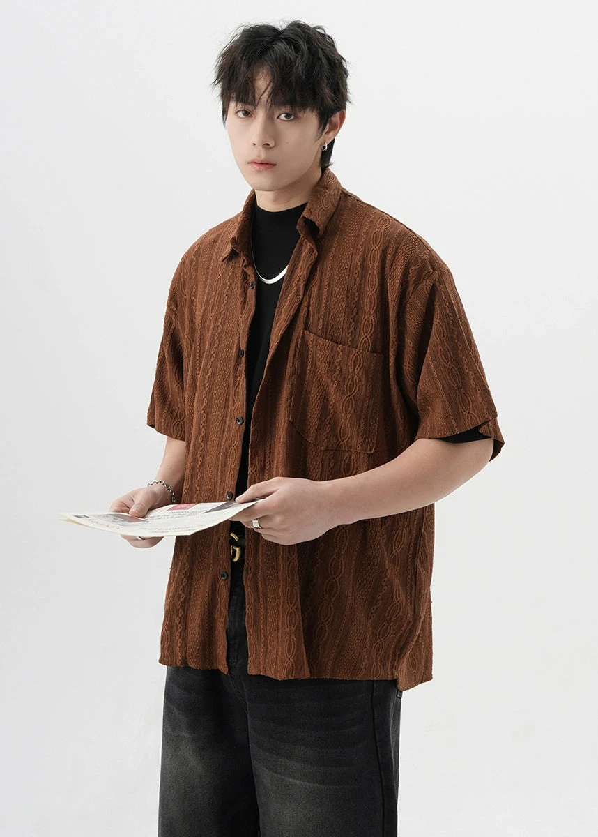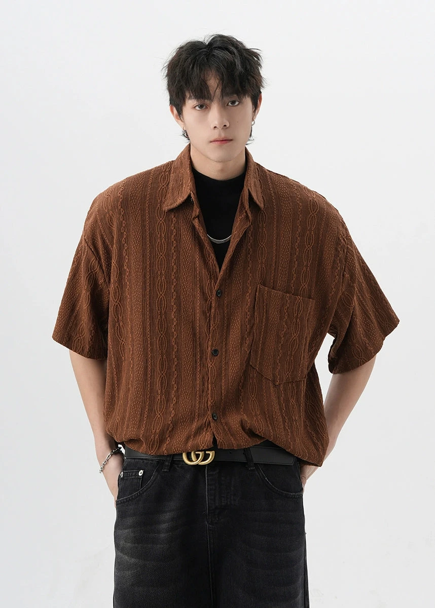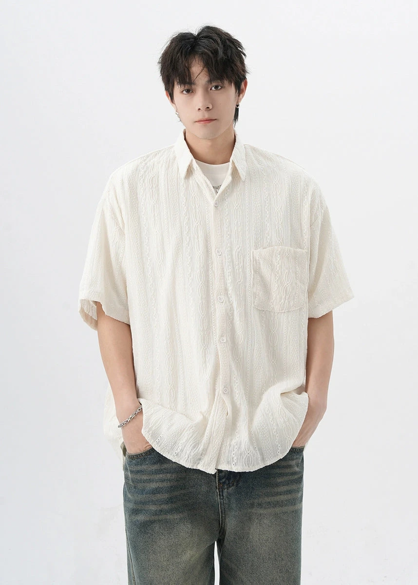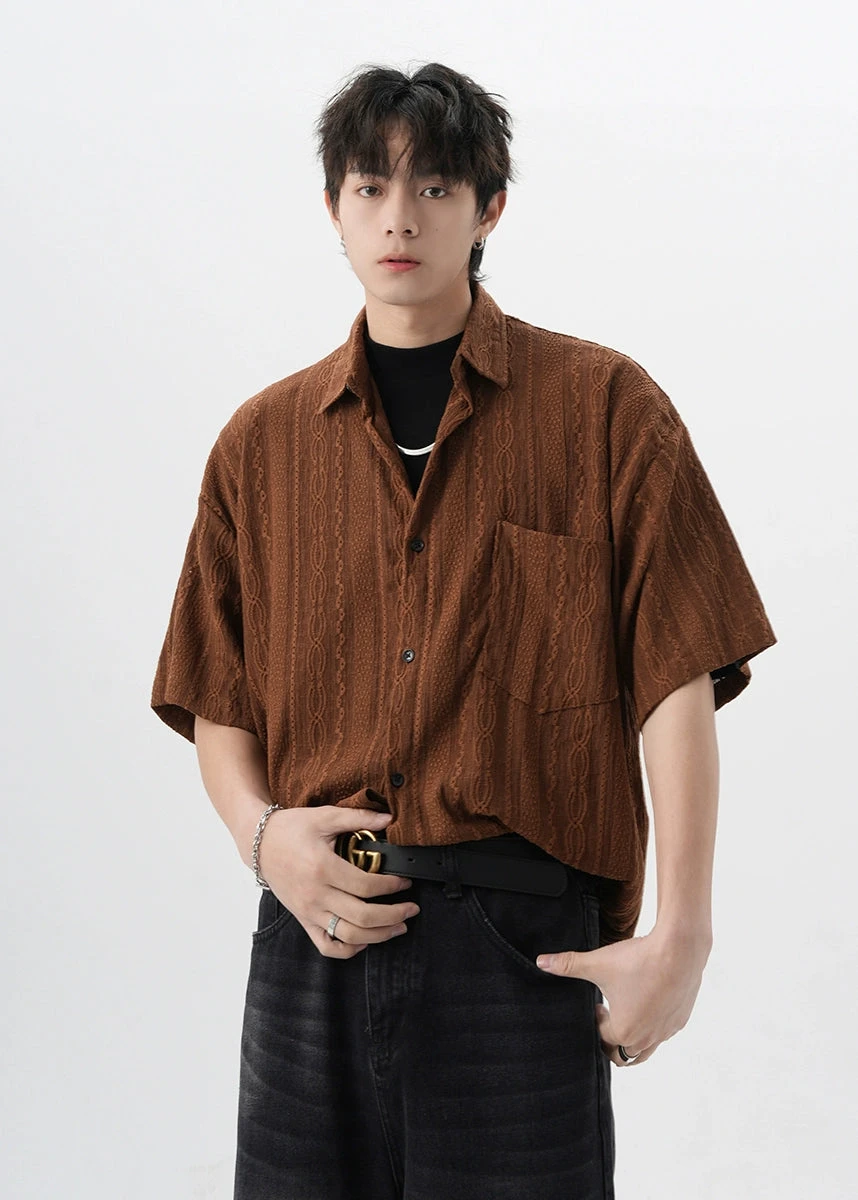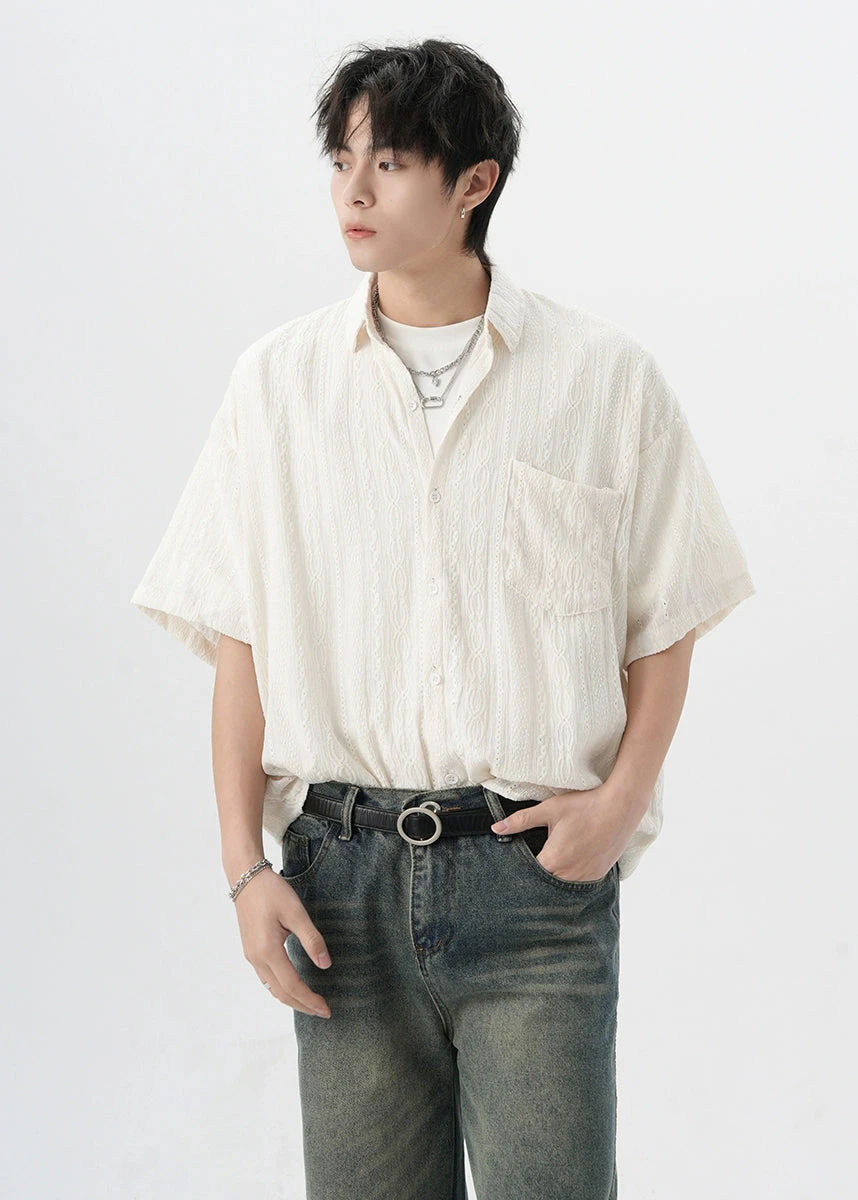 Crafted with attention to detail, this shirt features a unique cable knit texture and a classic button-up front, offering a subtle twist on the traditional silhouette. The high-quality fabric ensures durability while providing a comfortable fit for everyday wear.