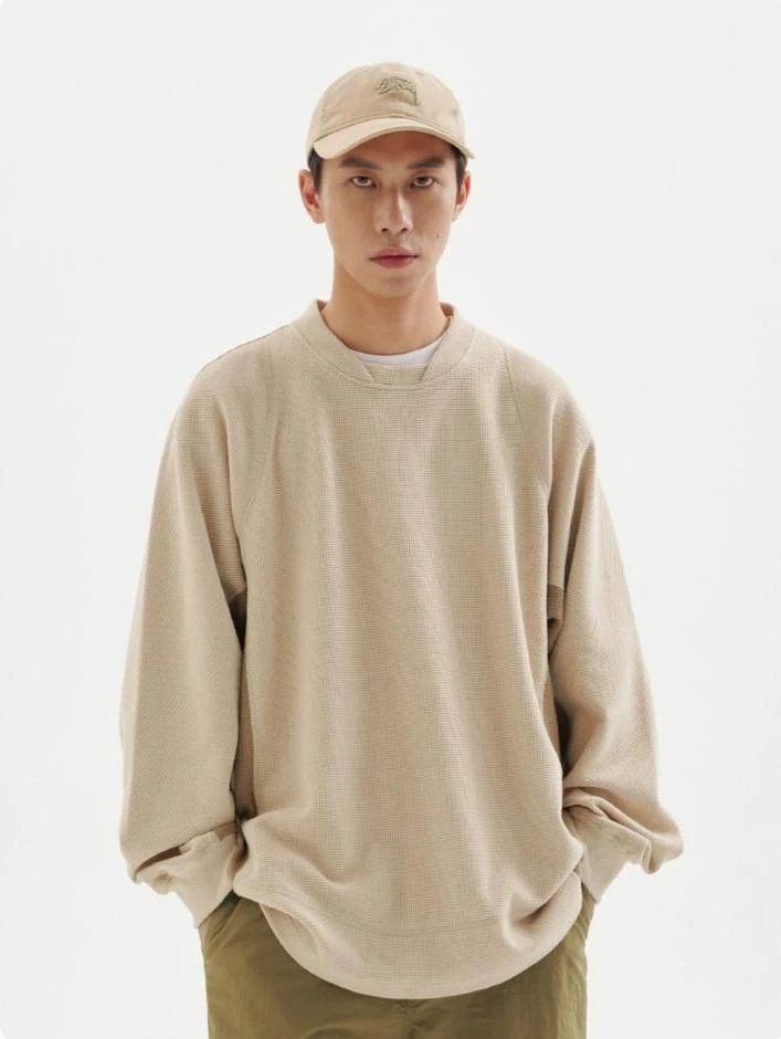 Made from a quality blend of cotton and polyester (62% cotton, 38% polyester), this sweatshirt features a distinctive waffle texture that’s not only visually appealing but also improves moisture wicking and breathability. The unique blend of fibers provides wrinkle resistance and durability, perfect for everyday wear.