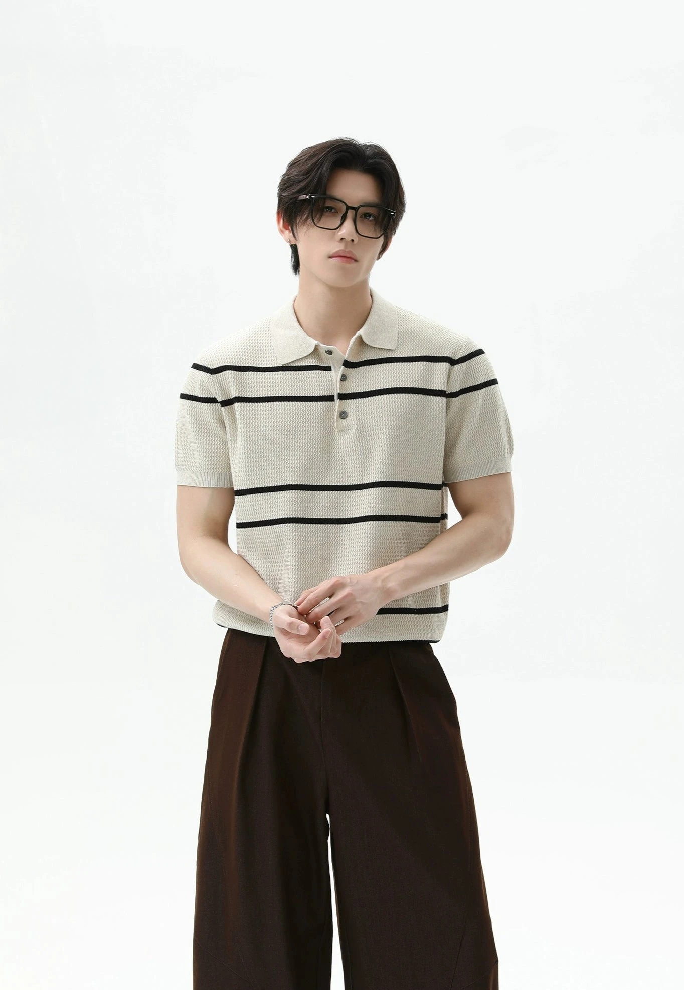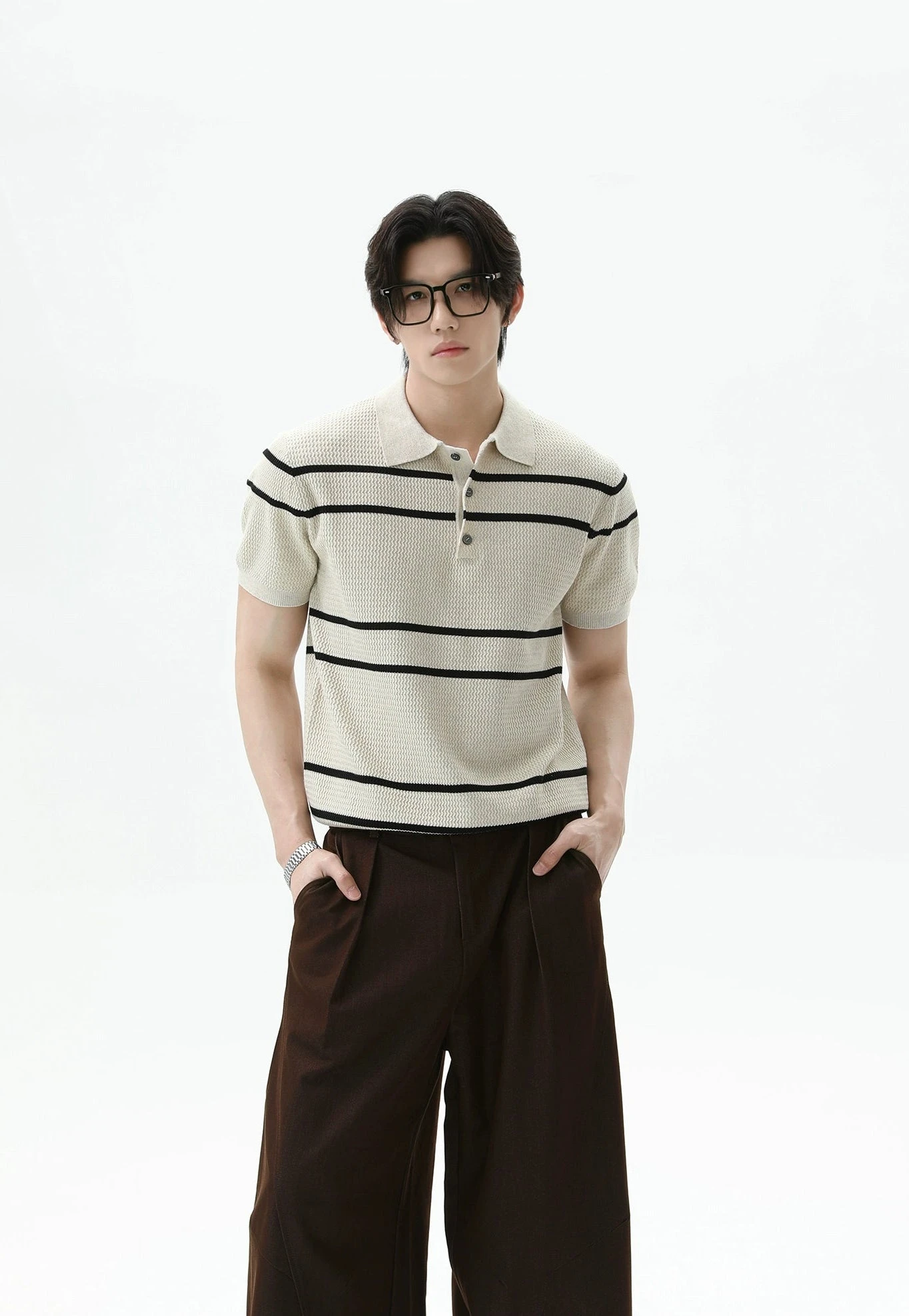 A textured knit that actually makes a statement—this horizontal stripe polo shirt brings a refined edge to a laid-back essential.