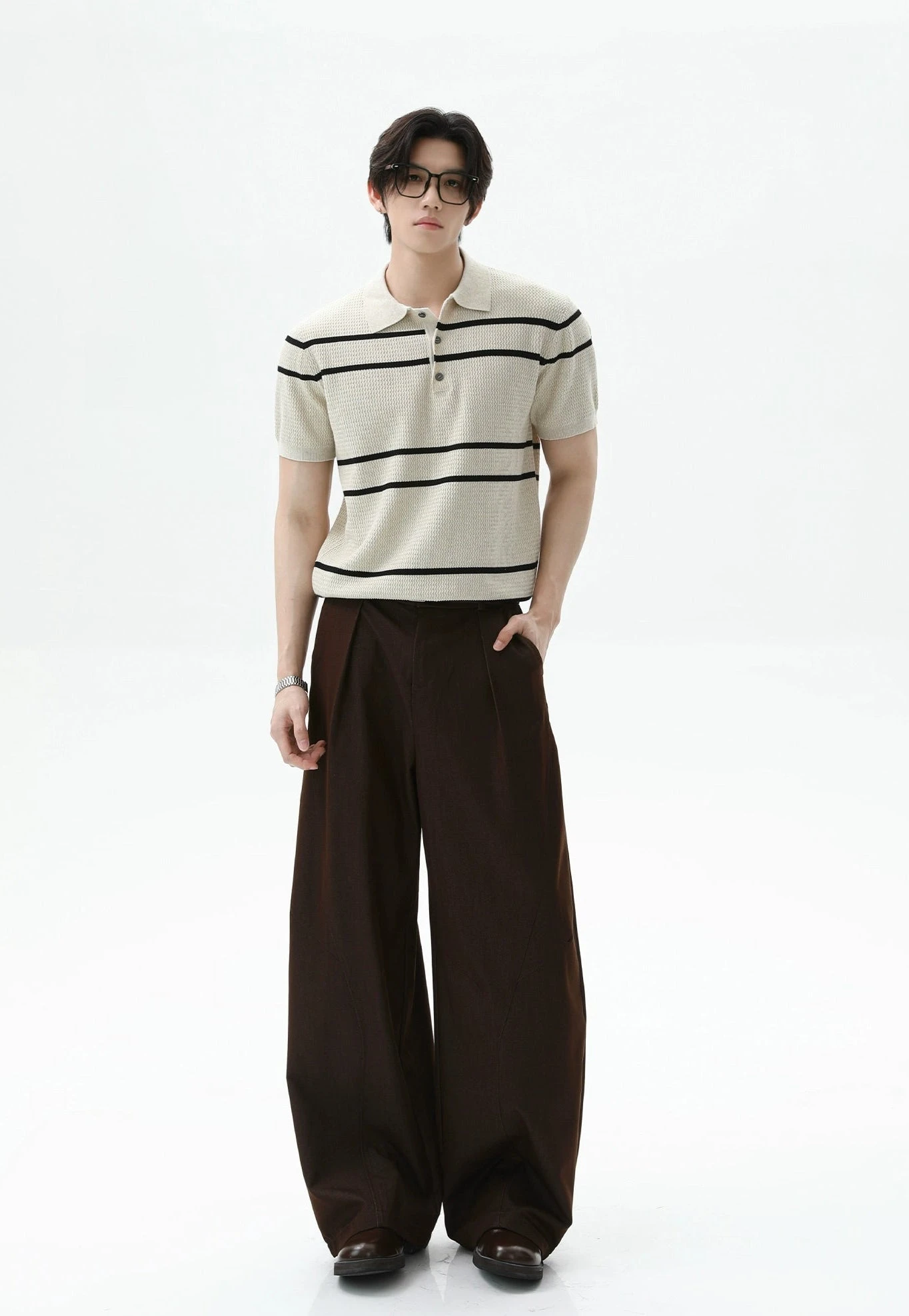 It’s breathable, easy to throw on, and feels as good as it looks. Crafted from a soft cotton-nylon blend, the open-grid knit adds visual texture while keeping airflow steady. The clean contrast stripe pattern and relaxed fit balance a sharp silhouette with everyday wearability—effortlessly cool without trying too hard.