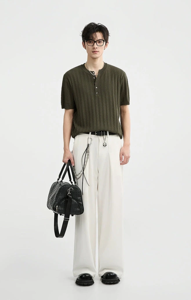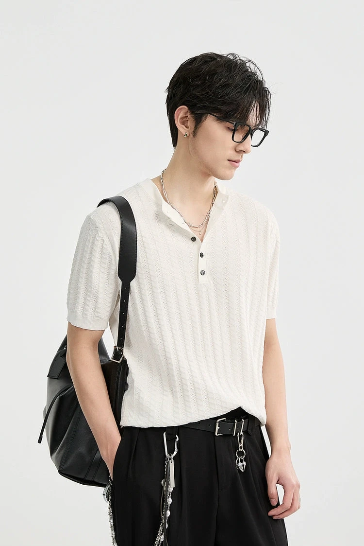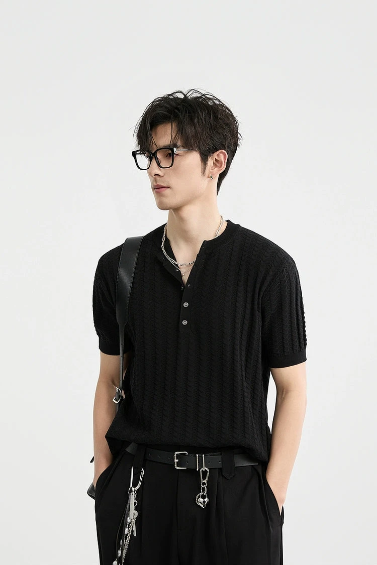 Its standout feature is the woven texture that adds subtle depth without shouting for attention. Crafted from a breathable blend of viscose and polyester, this short sleeve top combines structure and softness in a lightweight knit you can wear all day. The ribbed trims and half-button Henley neckline offer a laid-back silhouette with just enough detail to elevate a routine fit.