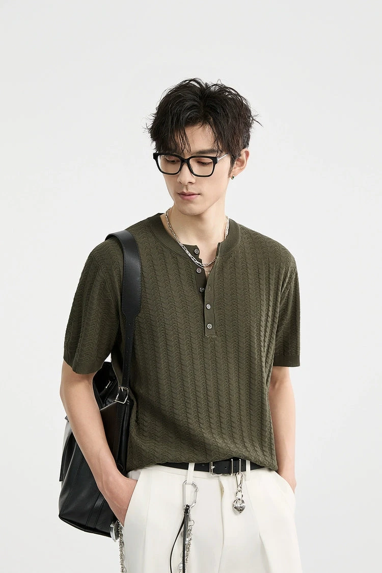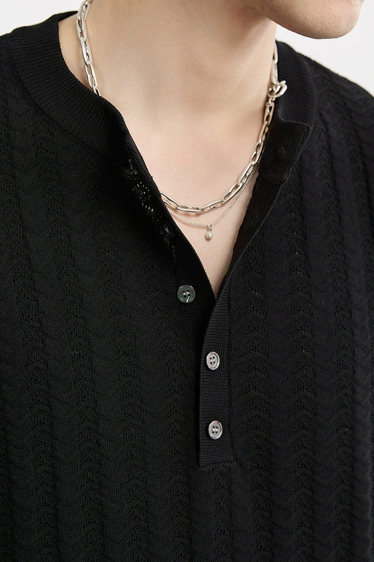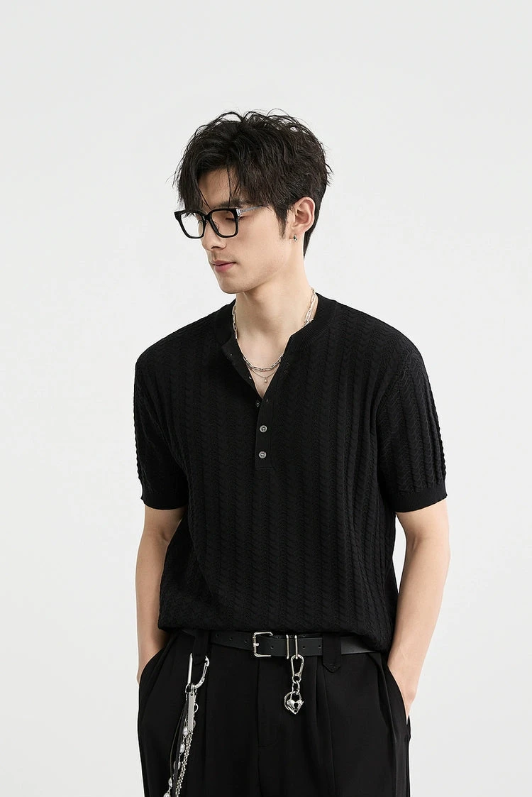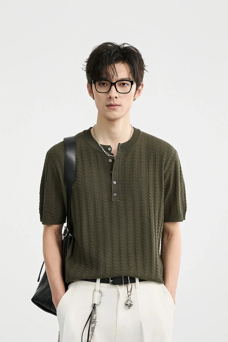 The Textured Knit Ribbed Trim Half Button Shirt brings low-effort refinement with a tactile edge.