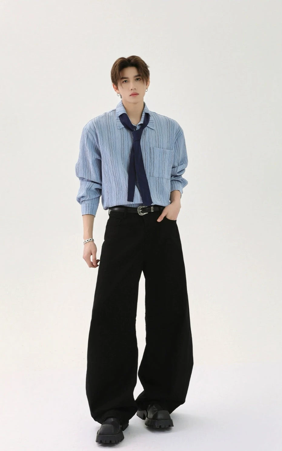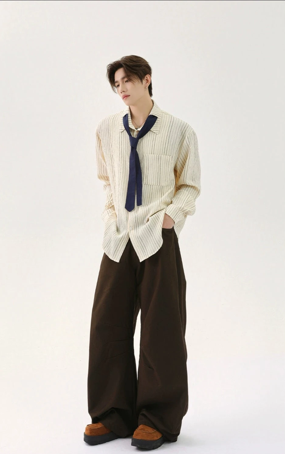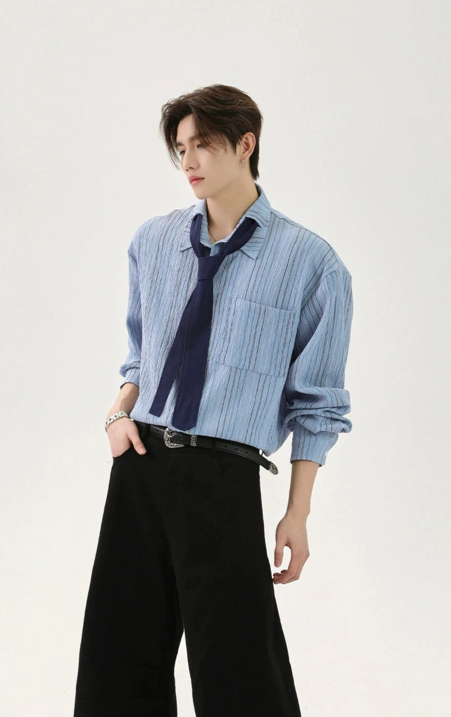 Crafted with care from a soft, durable fabric blend, it features an easy loose fit, drop shoulders, and a chest pocket for that relaxed but put-together feel. The contrast stripe pattern adds subtle dimension, while the lightweight structure gives it everyday versatility without sacrificing shape or form. I