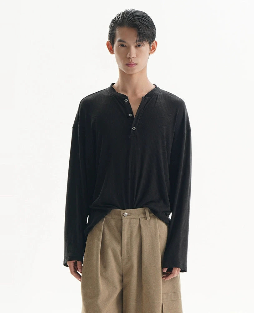 Closure: Button-front Henley neckline