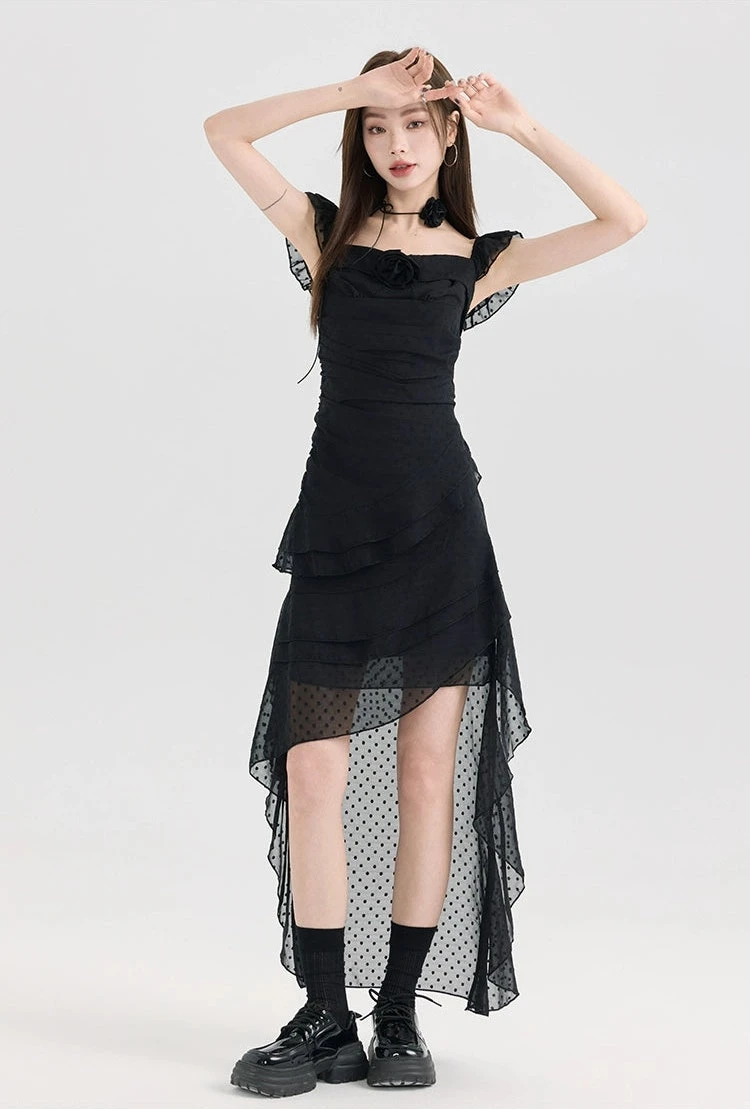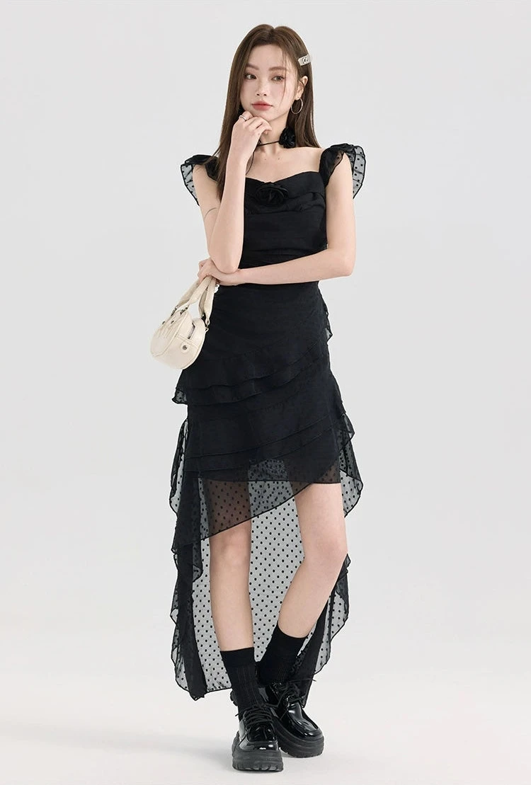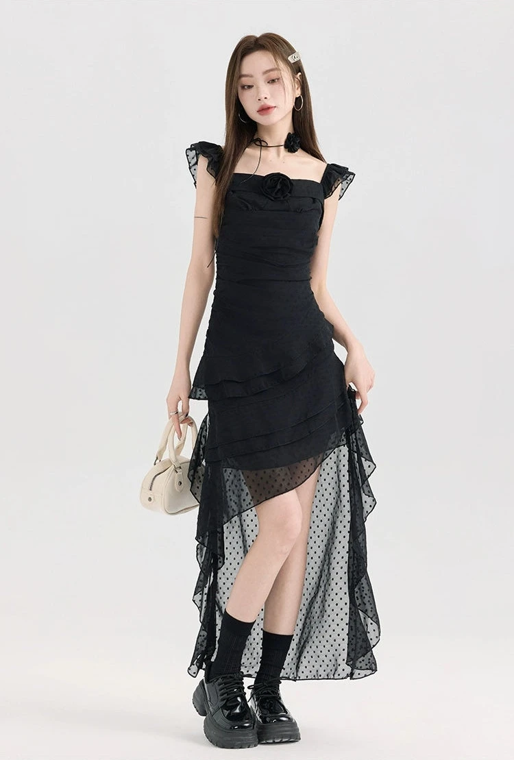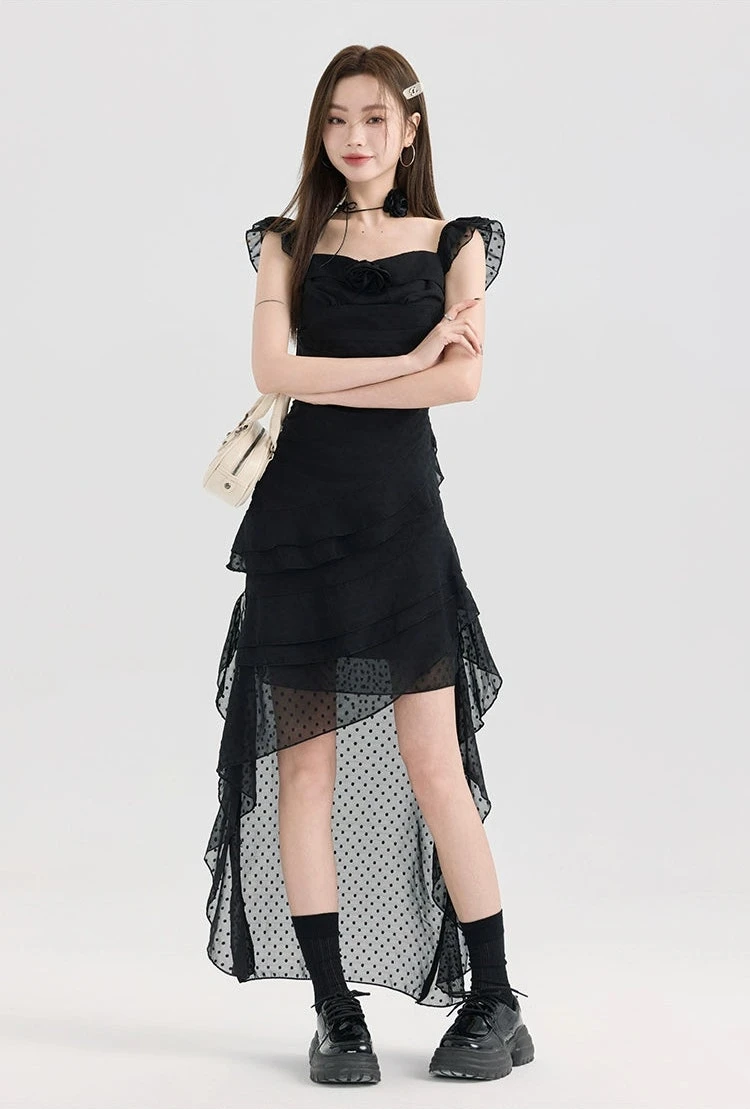 Perfect for a variety of occasions, from casual brunches to evening soirees, this piece invites effortless pairing with block heels or strappy sandals for a chic, moody look. Its allure lies in the details—wear it with minimalist jewelry and a clutch to let the ruffled tiers and flowy shape take center stage.