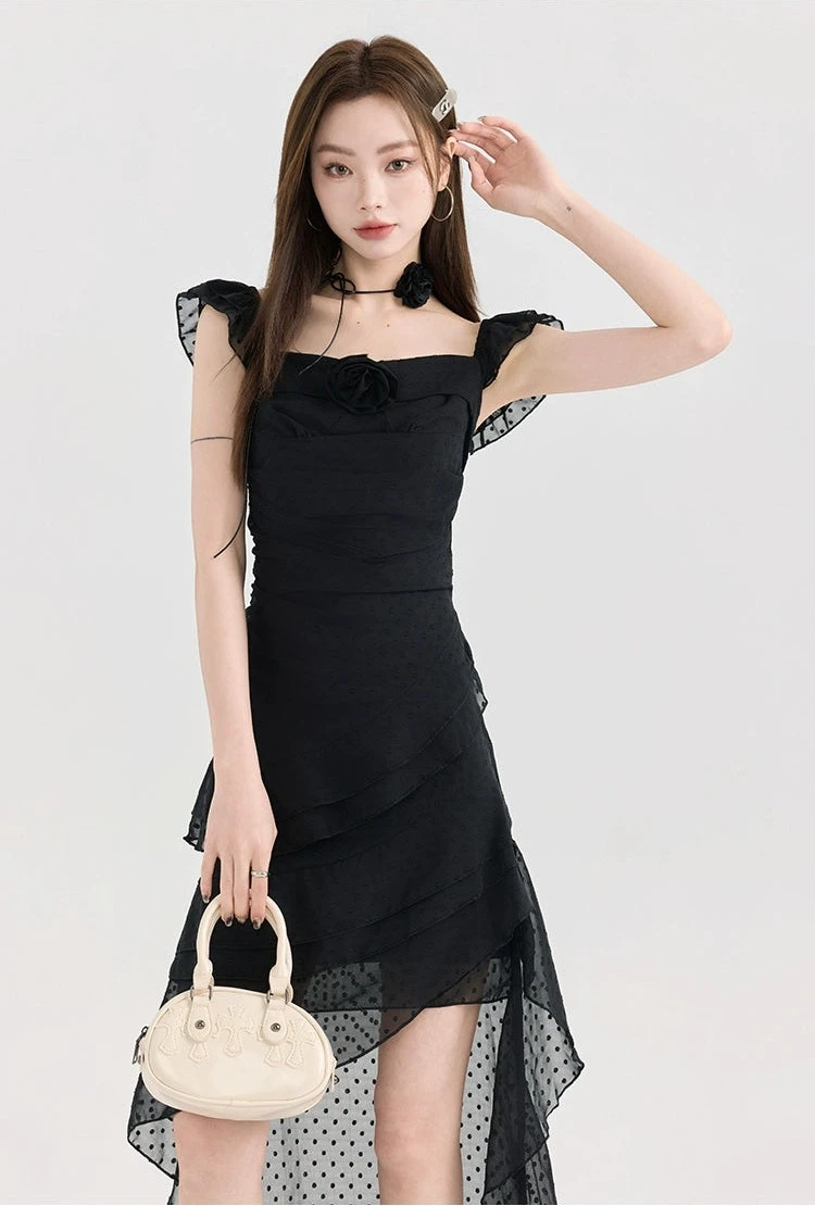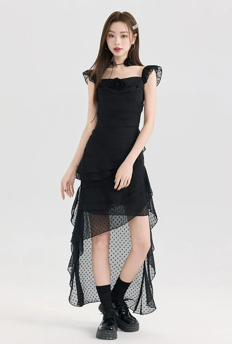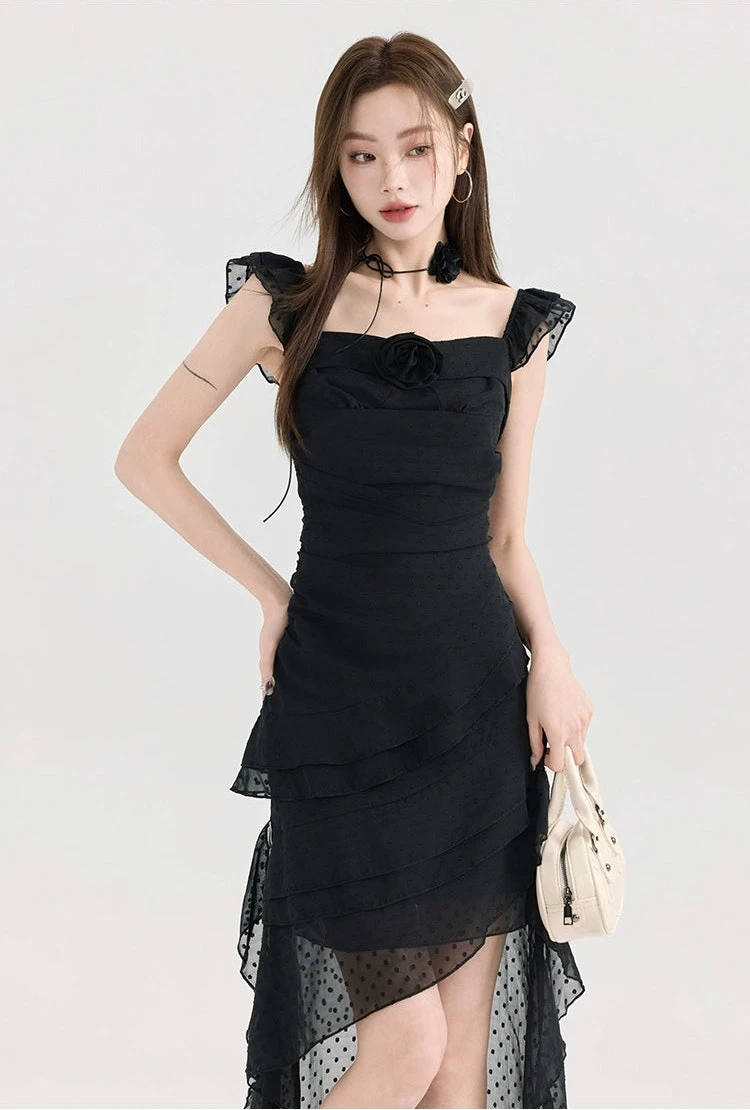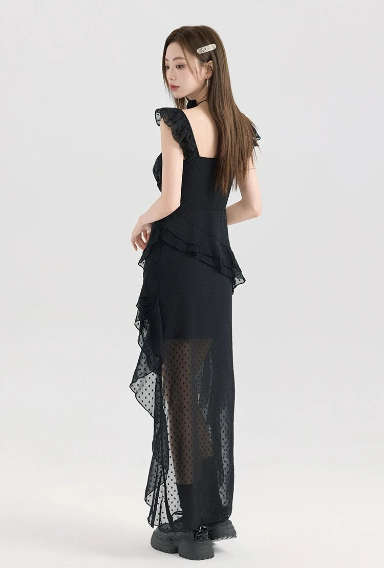 Perfect for a variety of occasions, from casual brunches to evening soirees, this piece invites effortless pairing with block heels or strappy sandals for a chic, moody look. Its allure lies in the details—wear it with minimalist jewelry and a clutch to let the ruffled tiers and flowy shape take center stage.