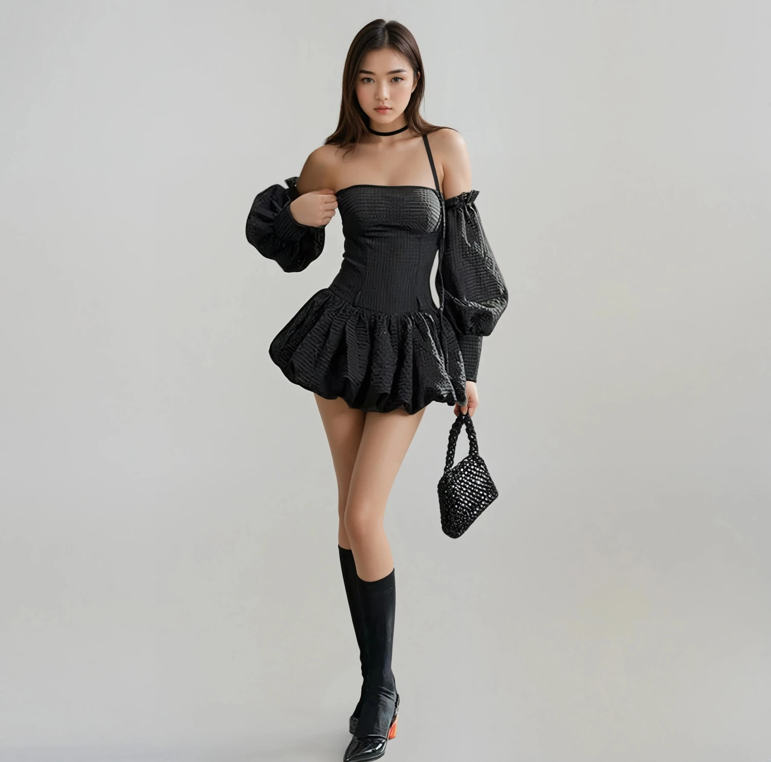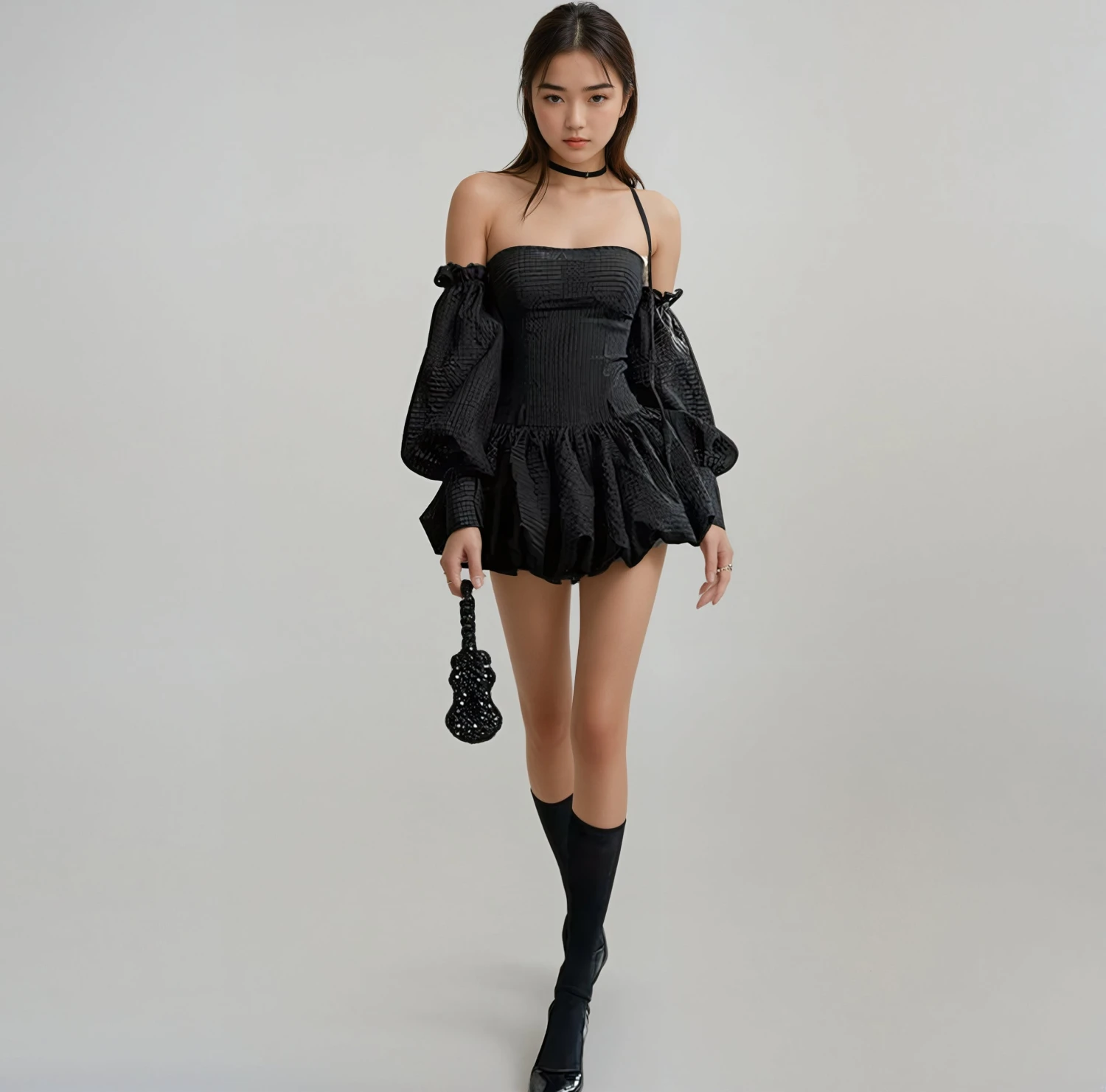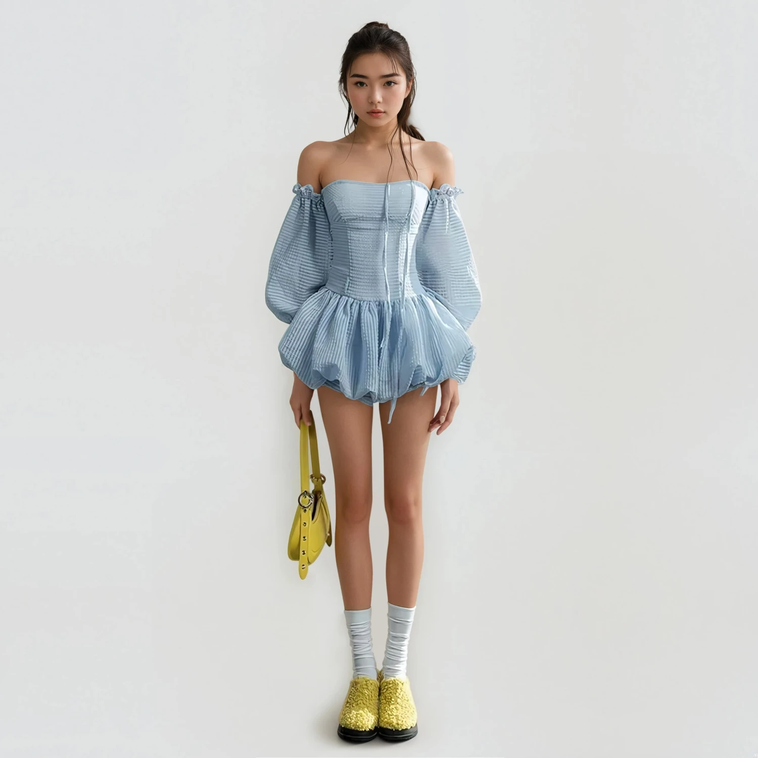 Embrace romantic flair with the Tube Balloon Mini Dress, a figure-flattering statement piece perfect for contemporary closets.