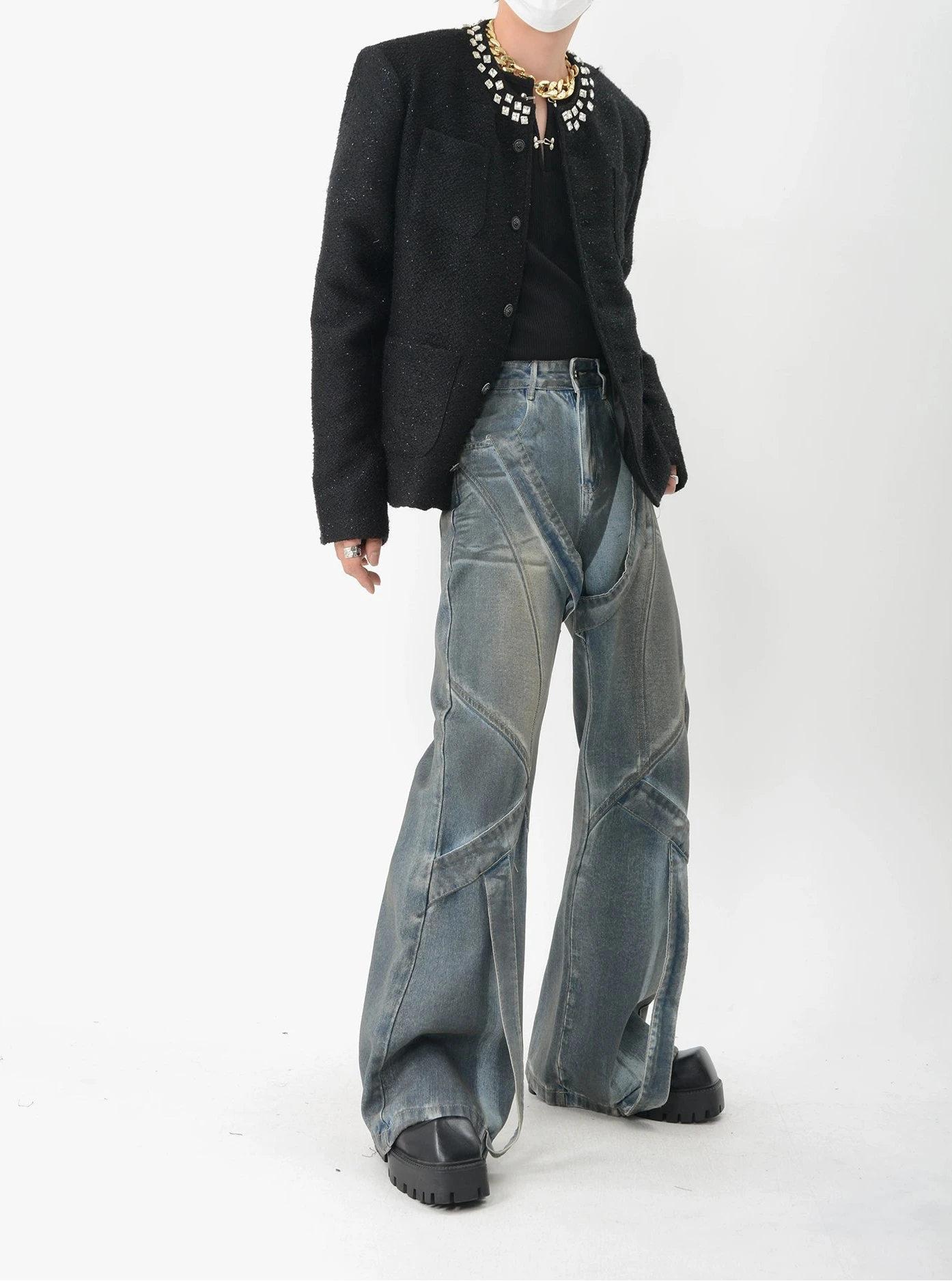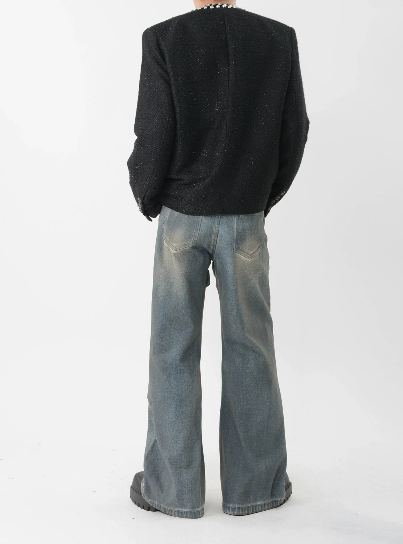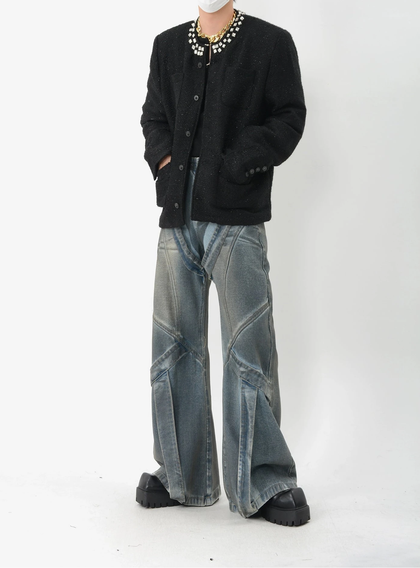Elevate your outerwear game with the Tweed Embellished Collar Multi-Pocket Coat, a statement piece that effortlessly blends edgy sophistication with functional style.