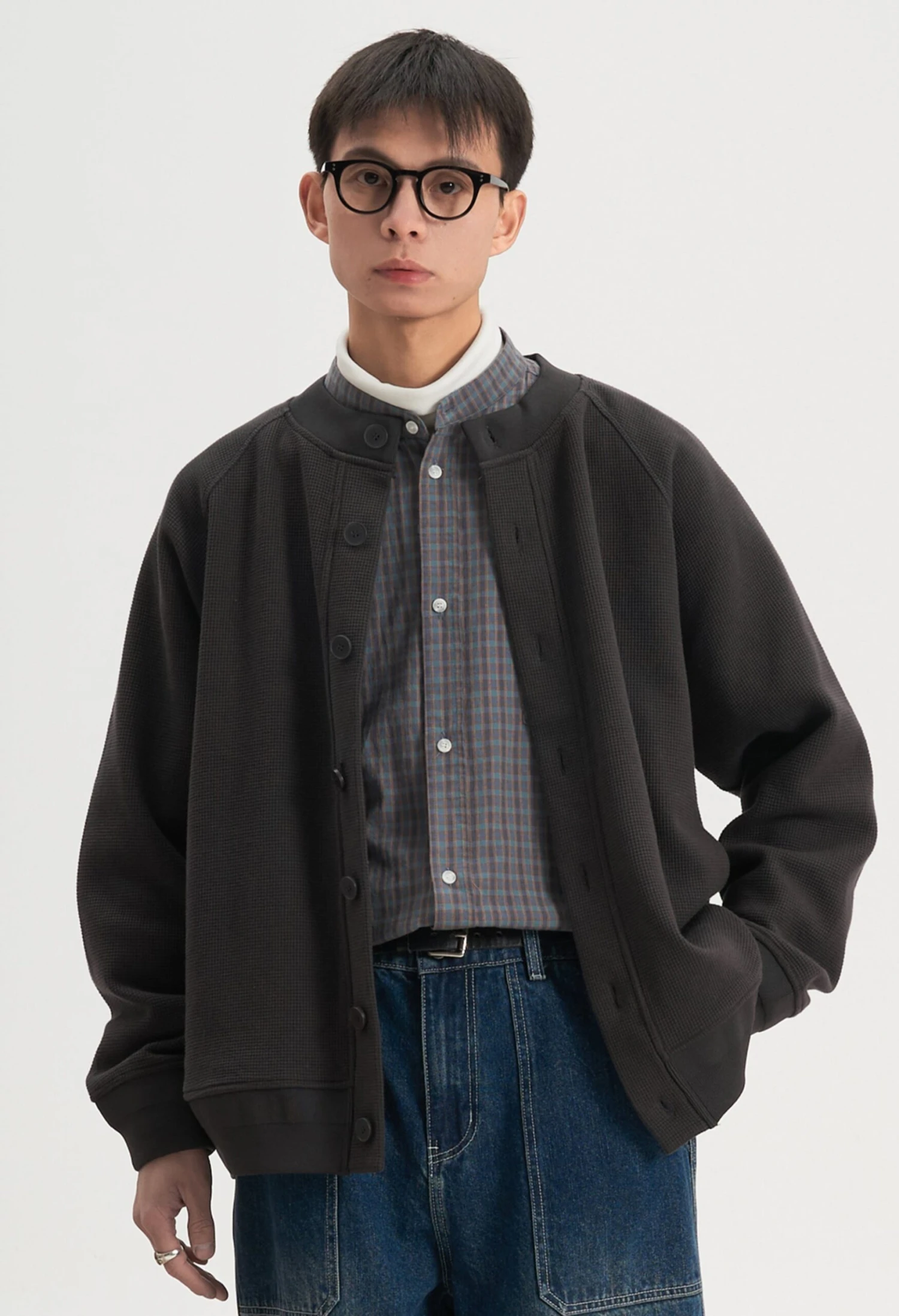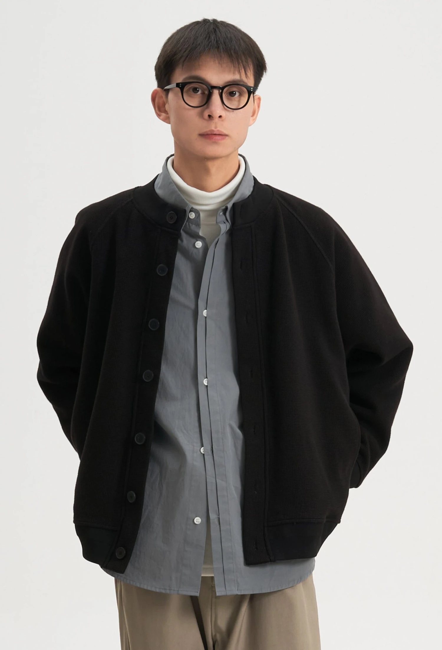 A laid-back essential with a structured edge, this waffle-textured bomber jacket brings subtle depth to a clean, minimalist design.