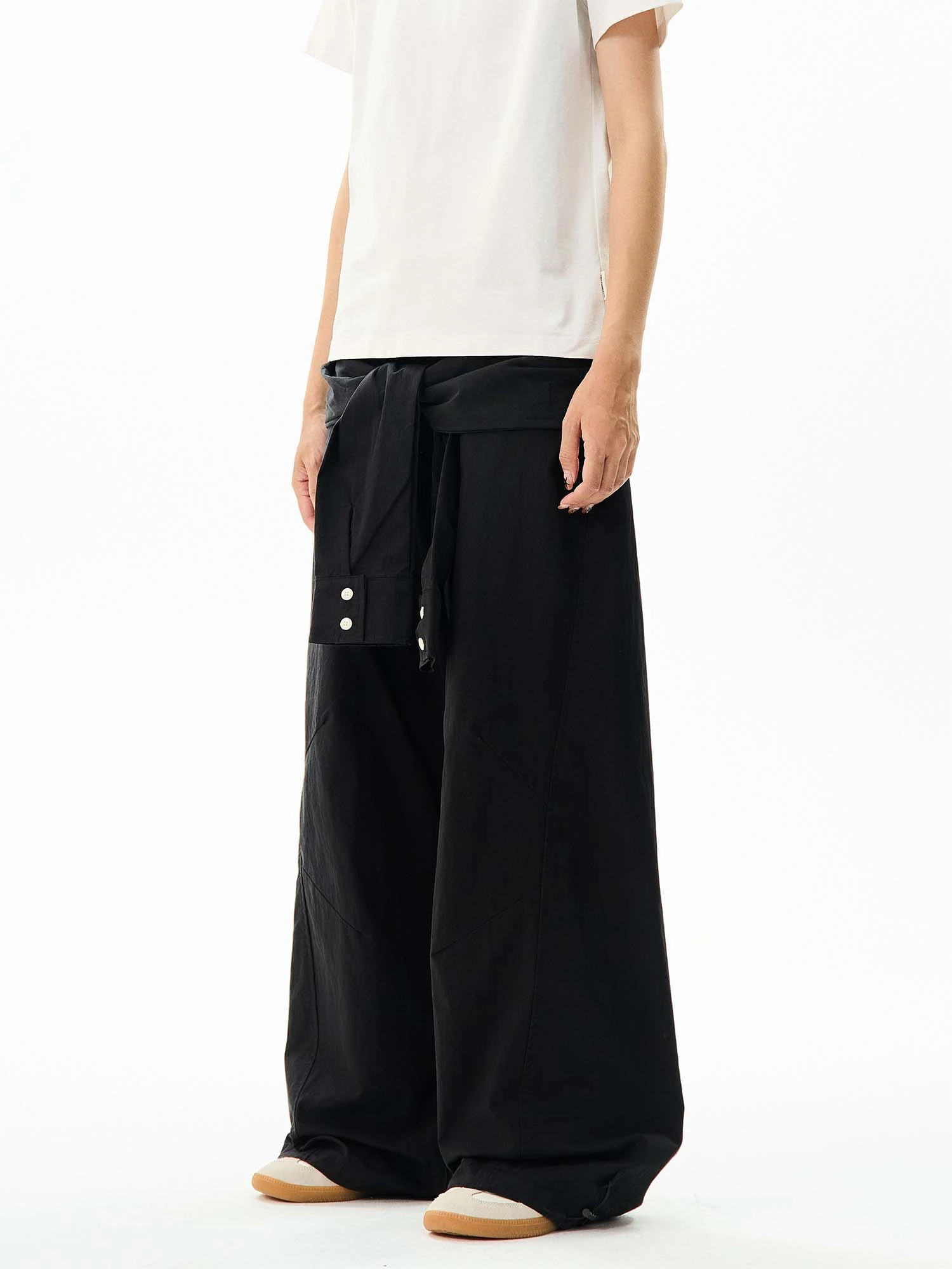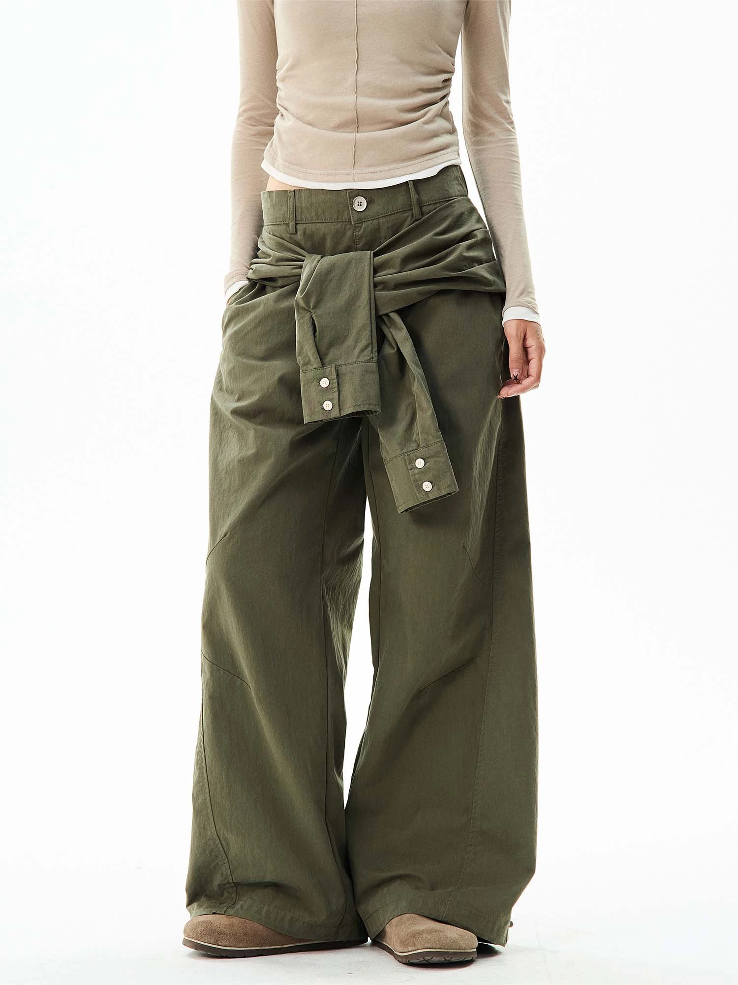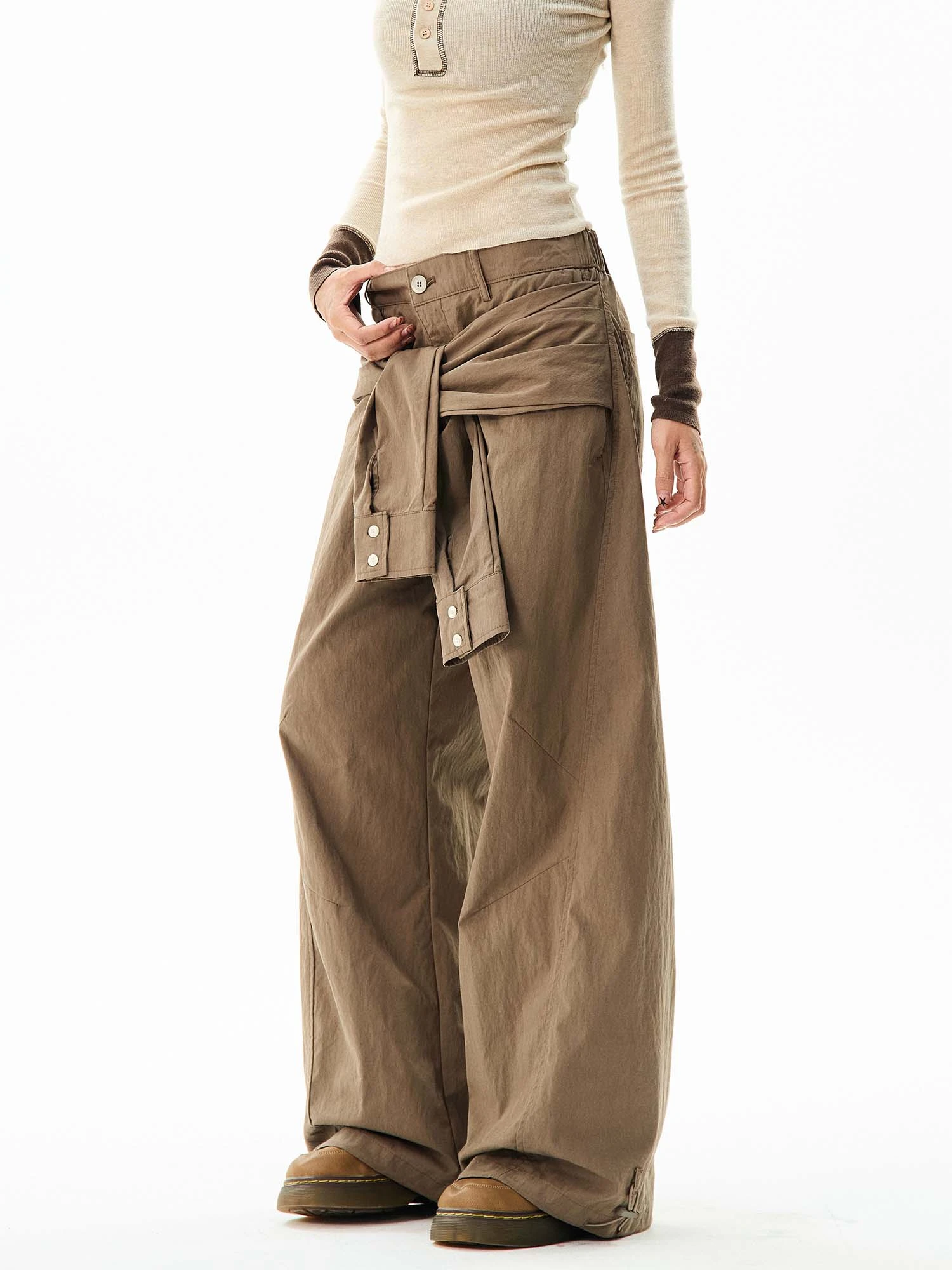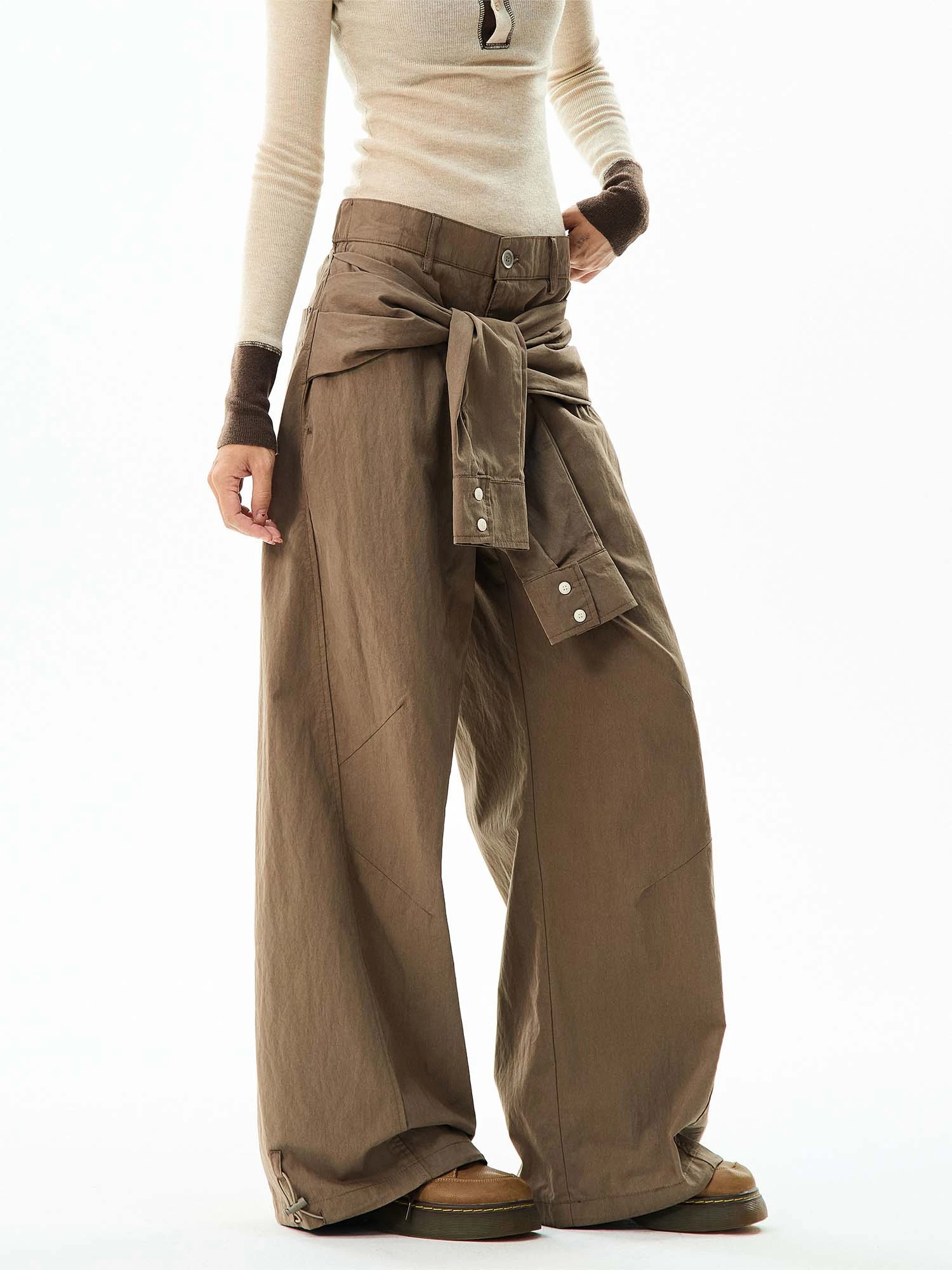 These pants feature a statement wraparound belt detail for an elevated edge, perfect for making a bold yet understated statement. Expertly crafted with a cotton-nylon blend, their soft yet durable fabric provides all-day comfort while maintaining a sturdy structure. The wide-leg design brings a nonchalant charm, while functional pockets and subtle stitching add a touch of retro utility.
