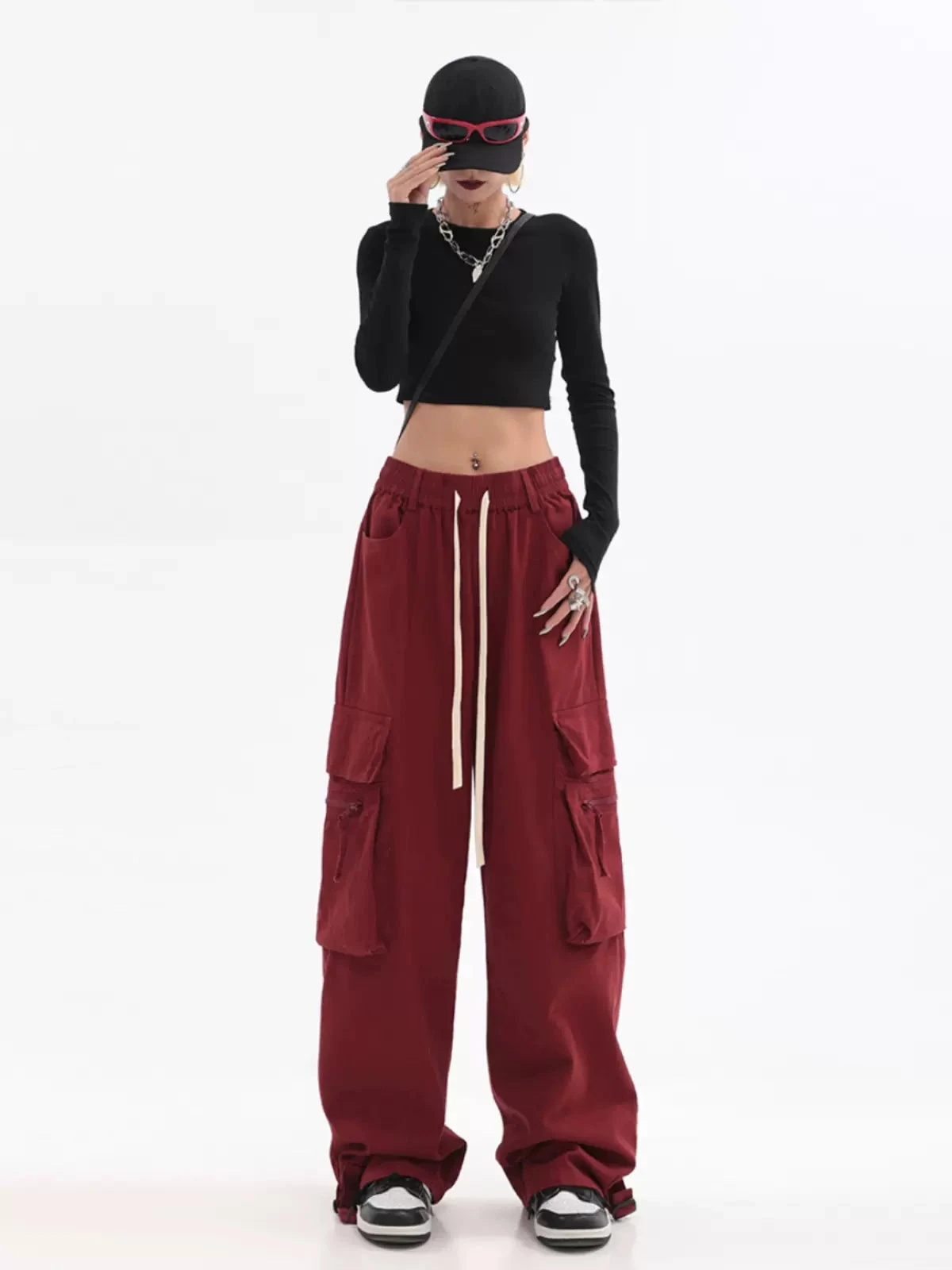 Crafted from a soft fabric, these pants offer a relaxed straight fit enhanced by the practicality of side pockets. The retro red hue adds a touch of edgy sophistication to your wardrobe, making them a perfect piece for expressing your personal style. With a focus on fine craftsmanship, these pants are perfect for those who value functionality without compromising on design.
