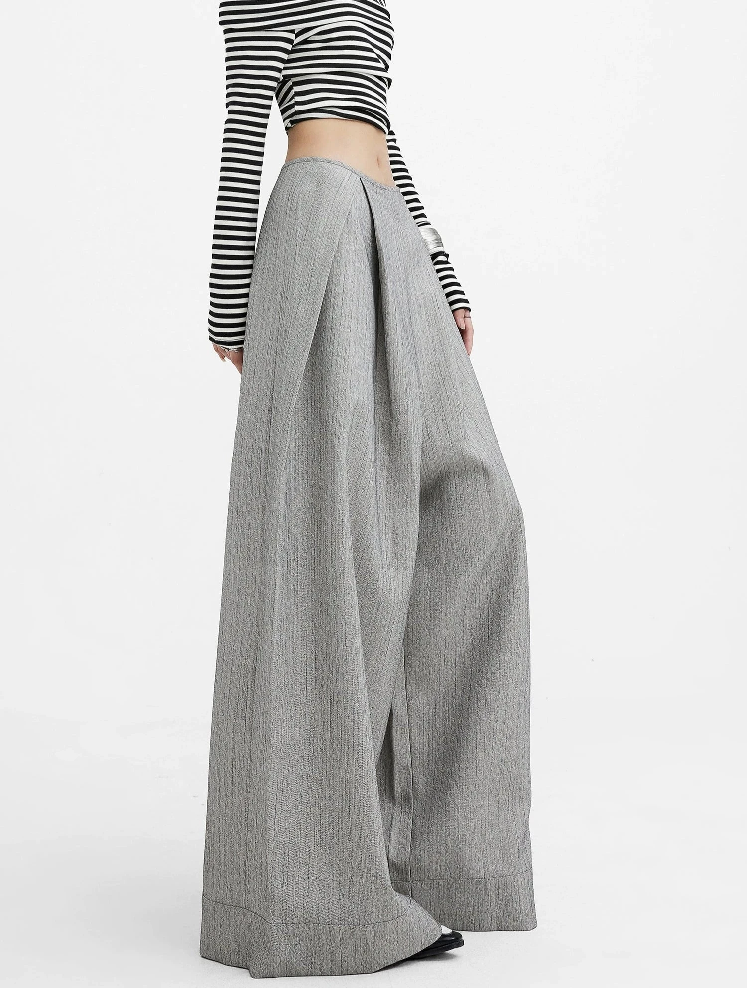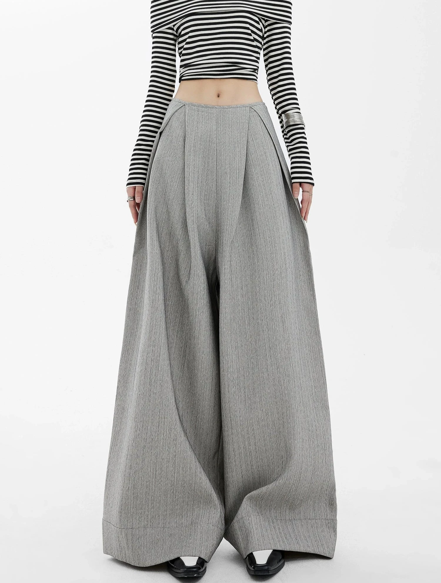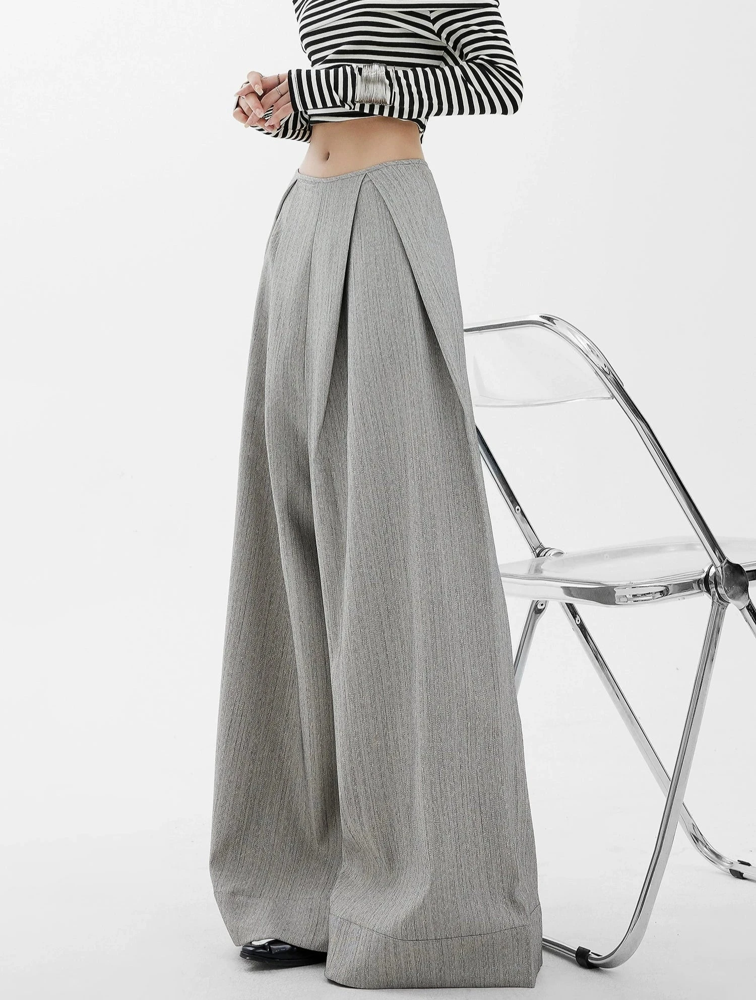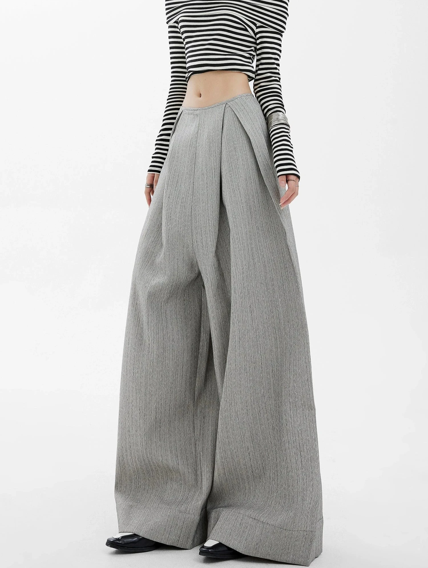 Step up your wardrobe game with these effortlessly chic Wide-Leg High Waist Panel-Pleat Palazzo Trousers, a fusion of relaxed sophistication and versatile style.