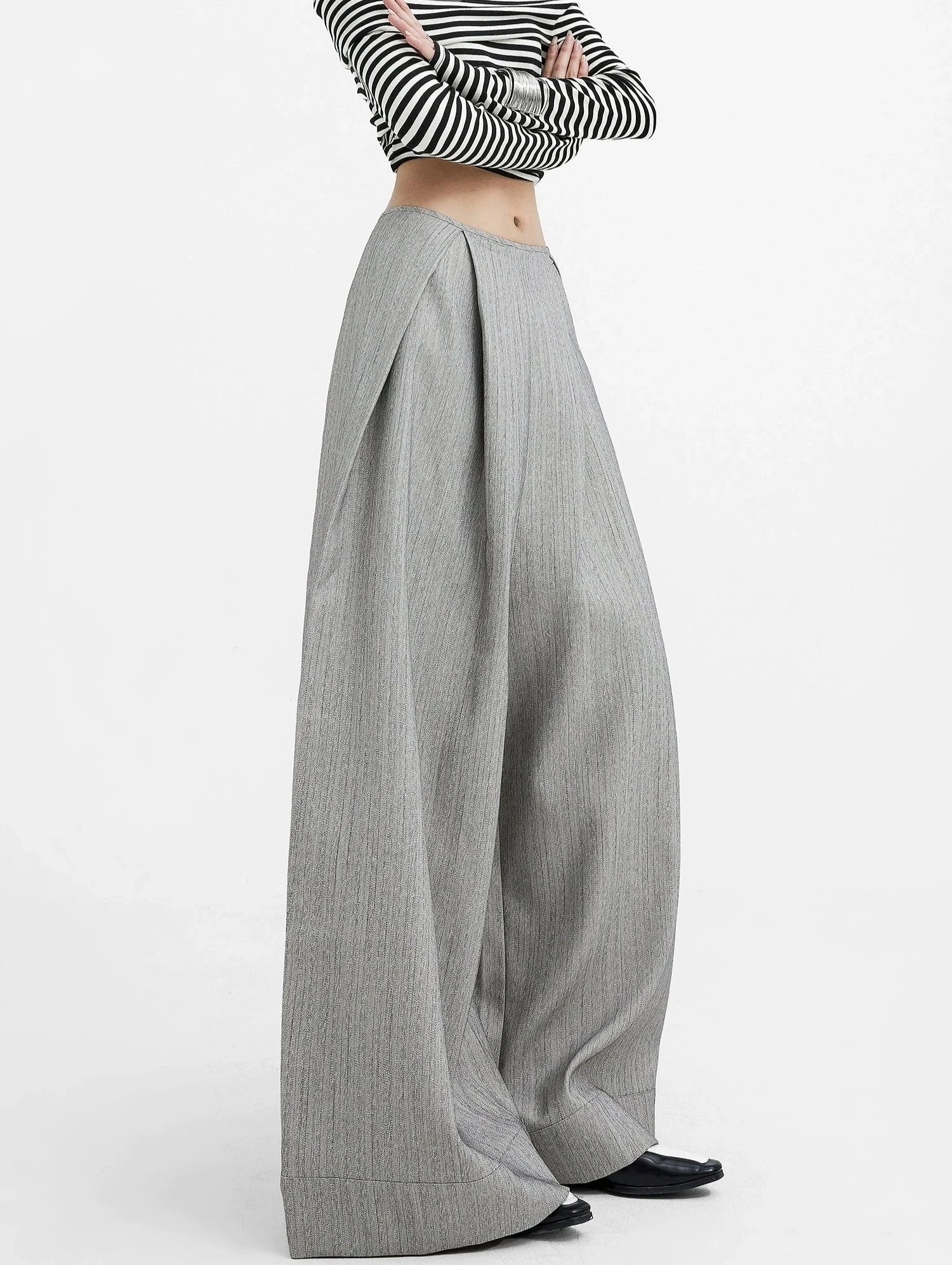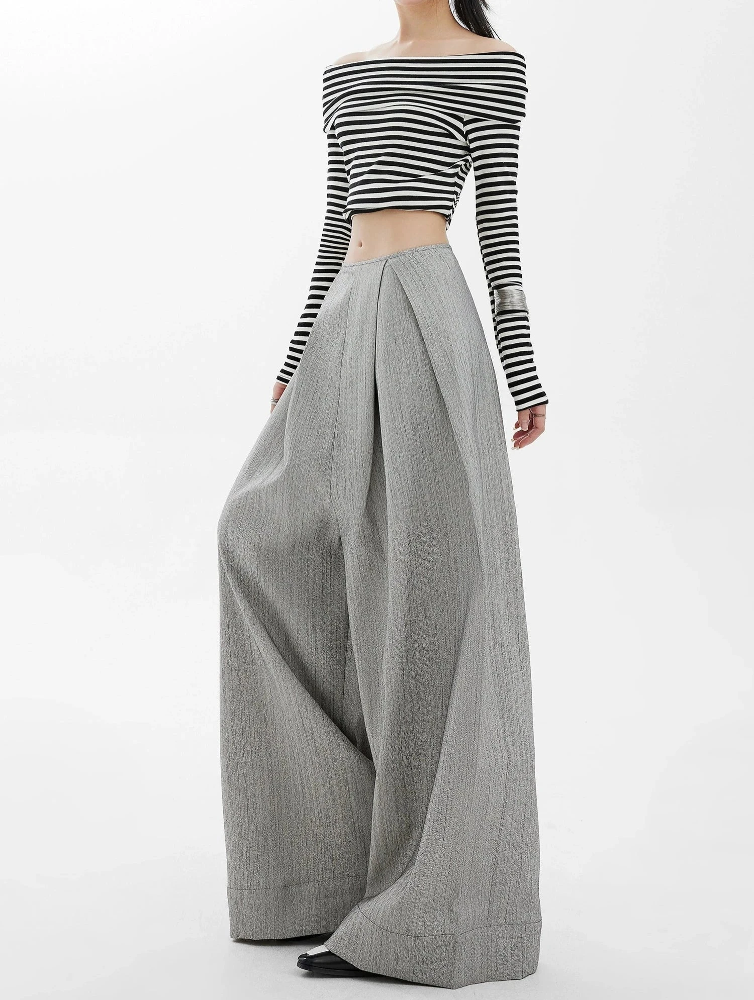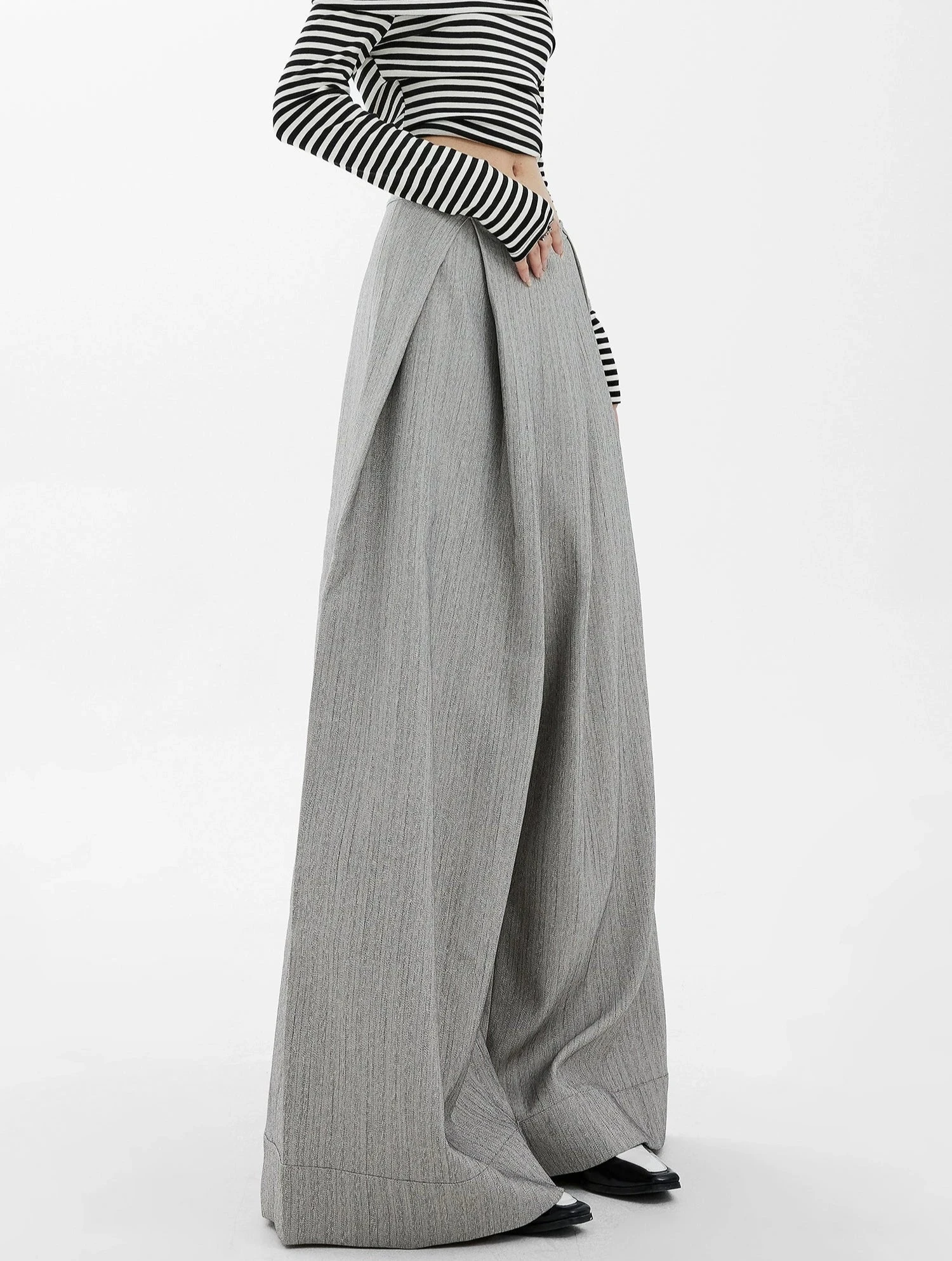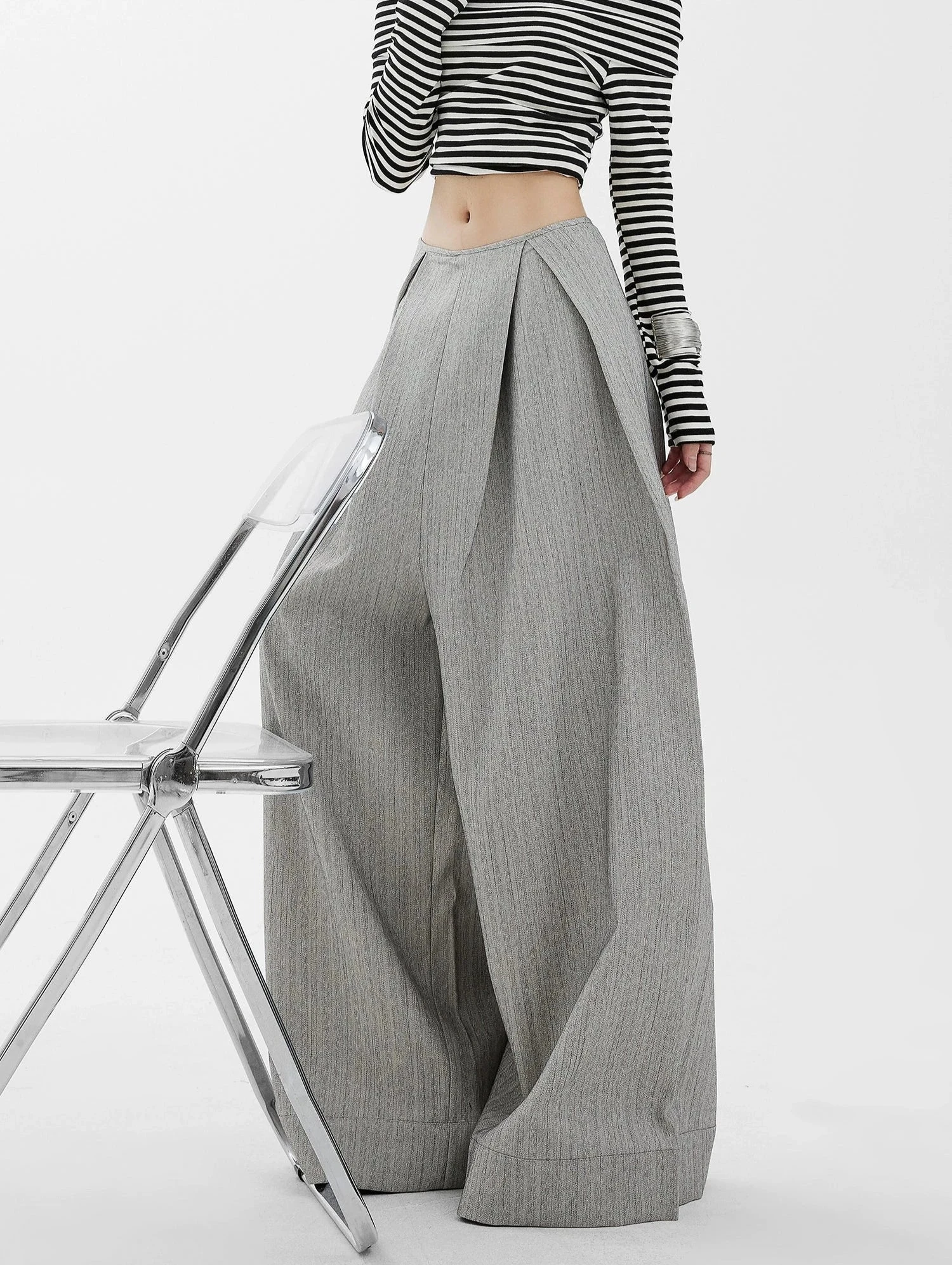 Step up your wardrobe game with these effortlessly chic Wide-Leg High Waist Panel-Pleat Palazzo Trousers, a fusion of relaxed sophistication and versatile style.