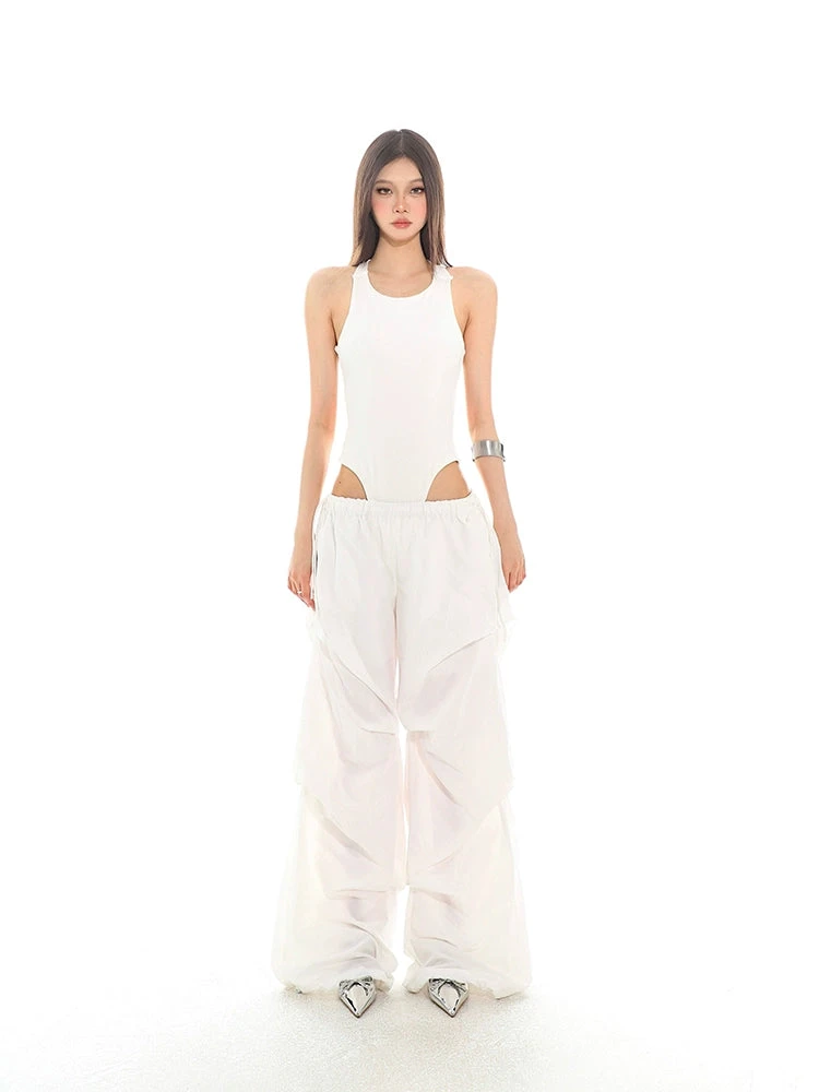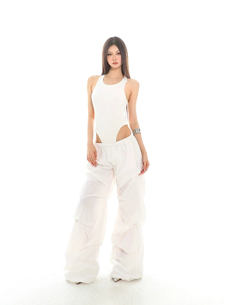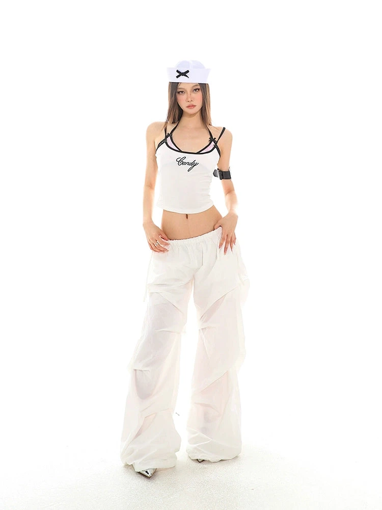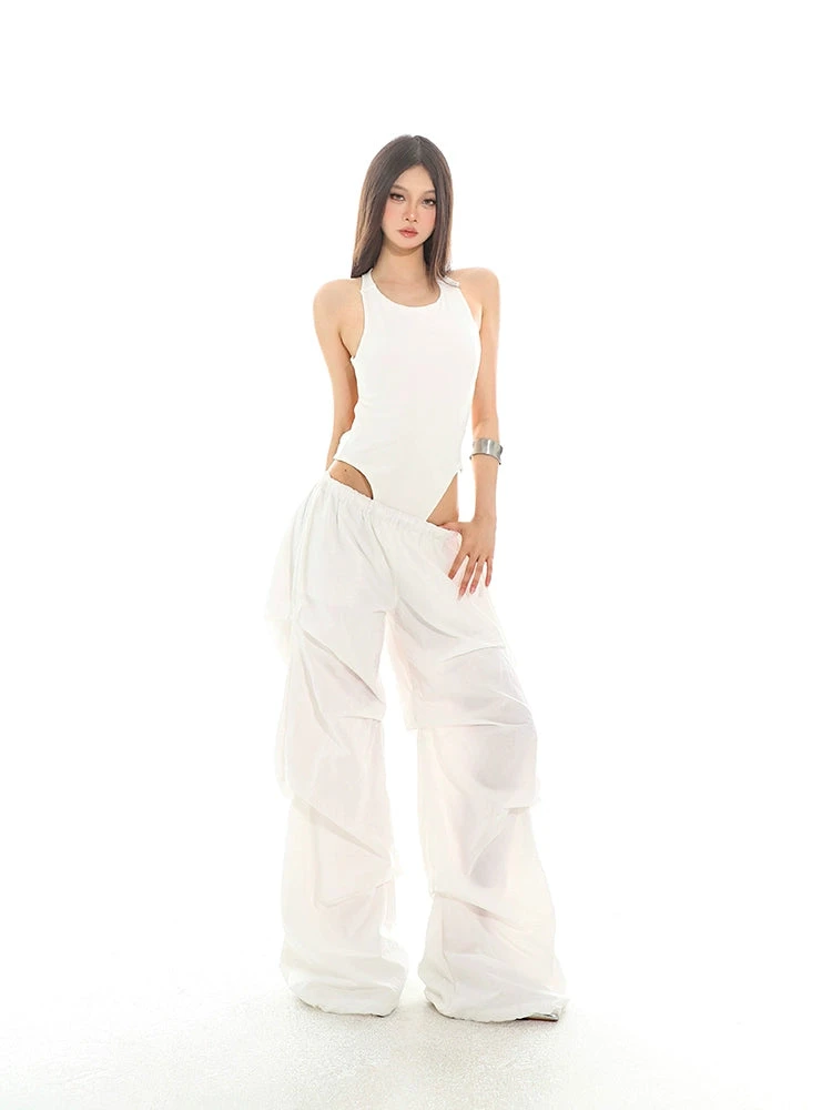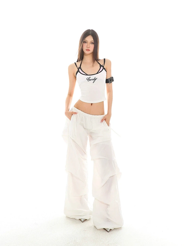 These pants are a sartorial staple, crafted from a soft, breathable fabric that promises to keep you comfortable through the day. The flowing wide-leg cut, combined with crisp pleats, creates a sleek silhouette that moves with you. An elastic waistband ensures a snug, flexible fit, making these trousers as practical as they are stylish.