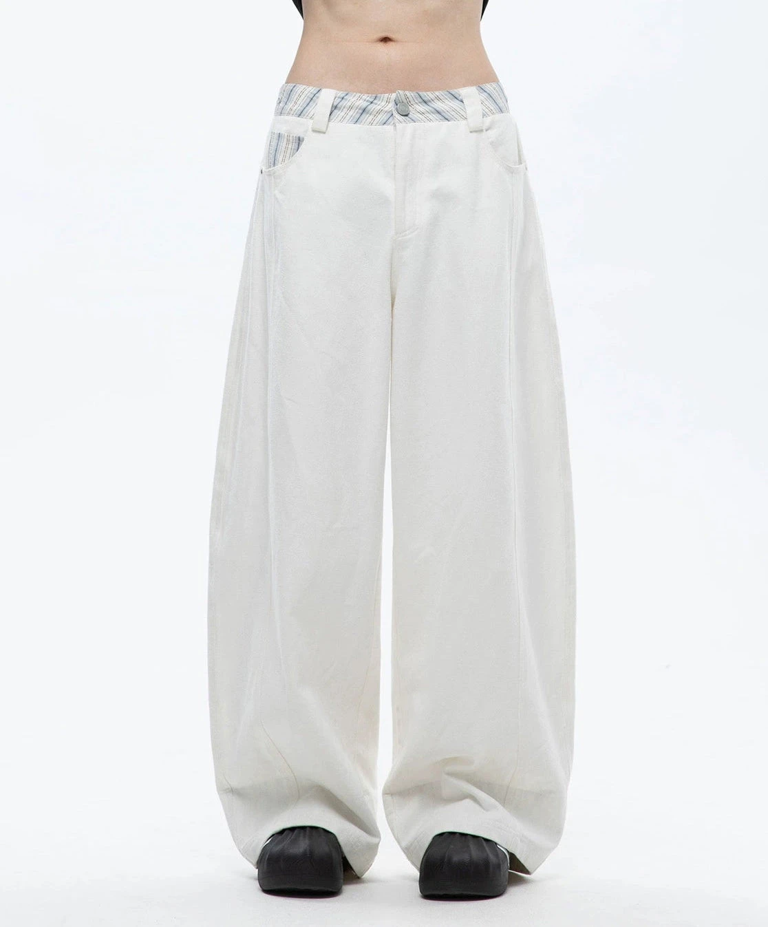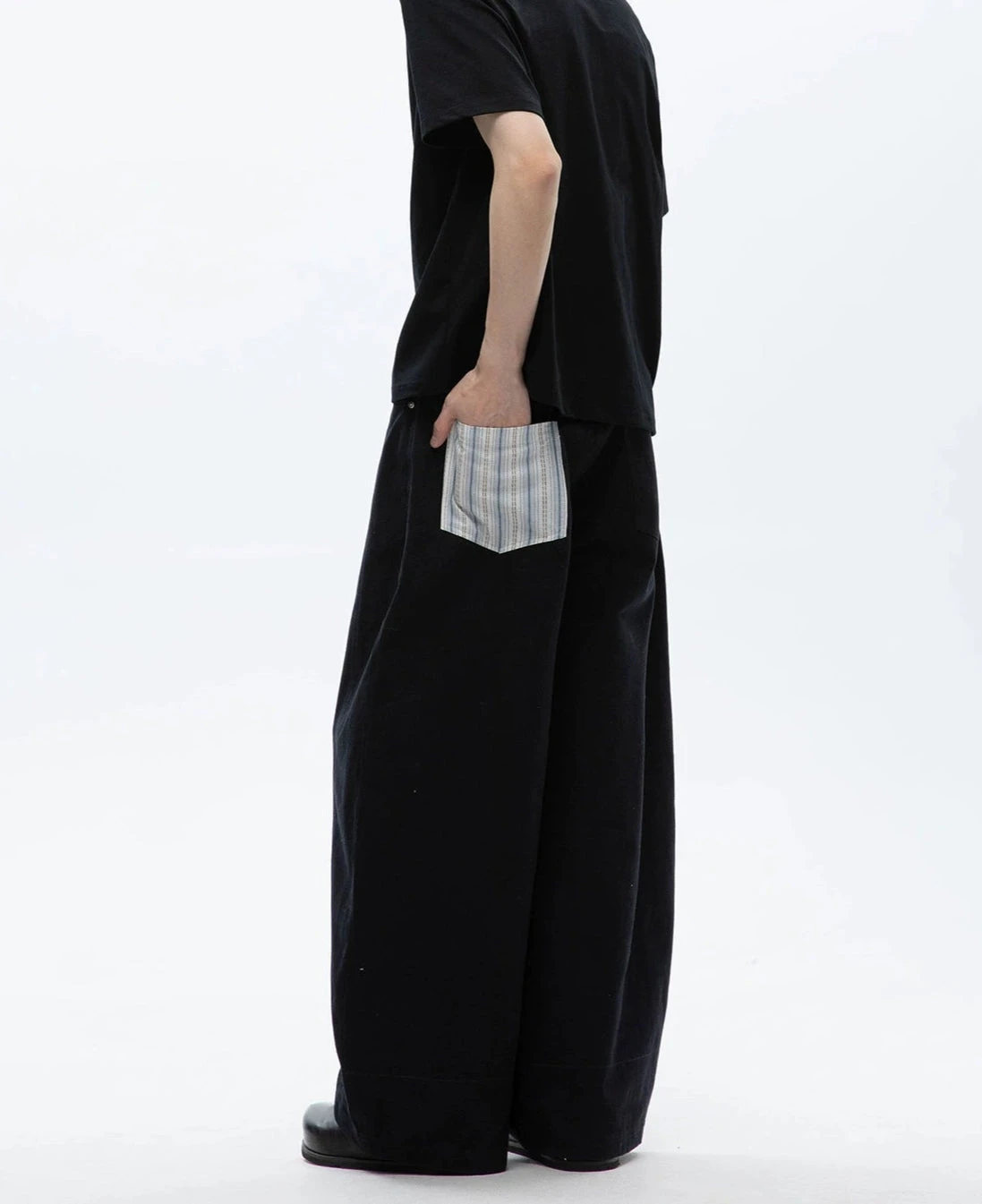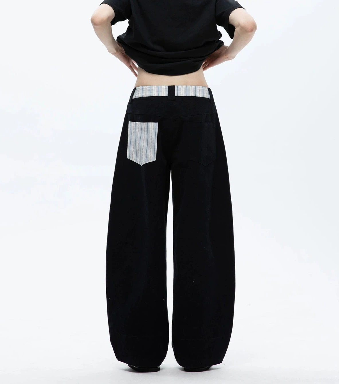 Wide leg pants designed with a contrasting striped waistband and statement back pocket, offering a subtle edge that stands out without trying too hard.