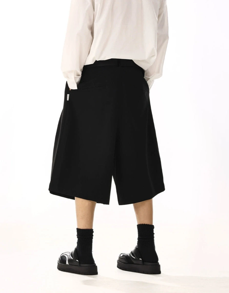 These shorts are crafted from a lightweight, soft-touch fabric with a matte finish and subtle drape, giving them a crisp profile while keeping things breathable and relaxed. The pleated front adds dimension, while the extra-wide leg cut creates a bold silhouette that moves easily from laid-back to polished depending on how you style it.