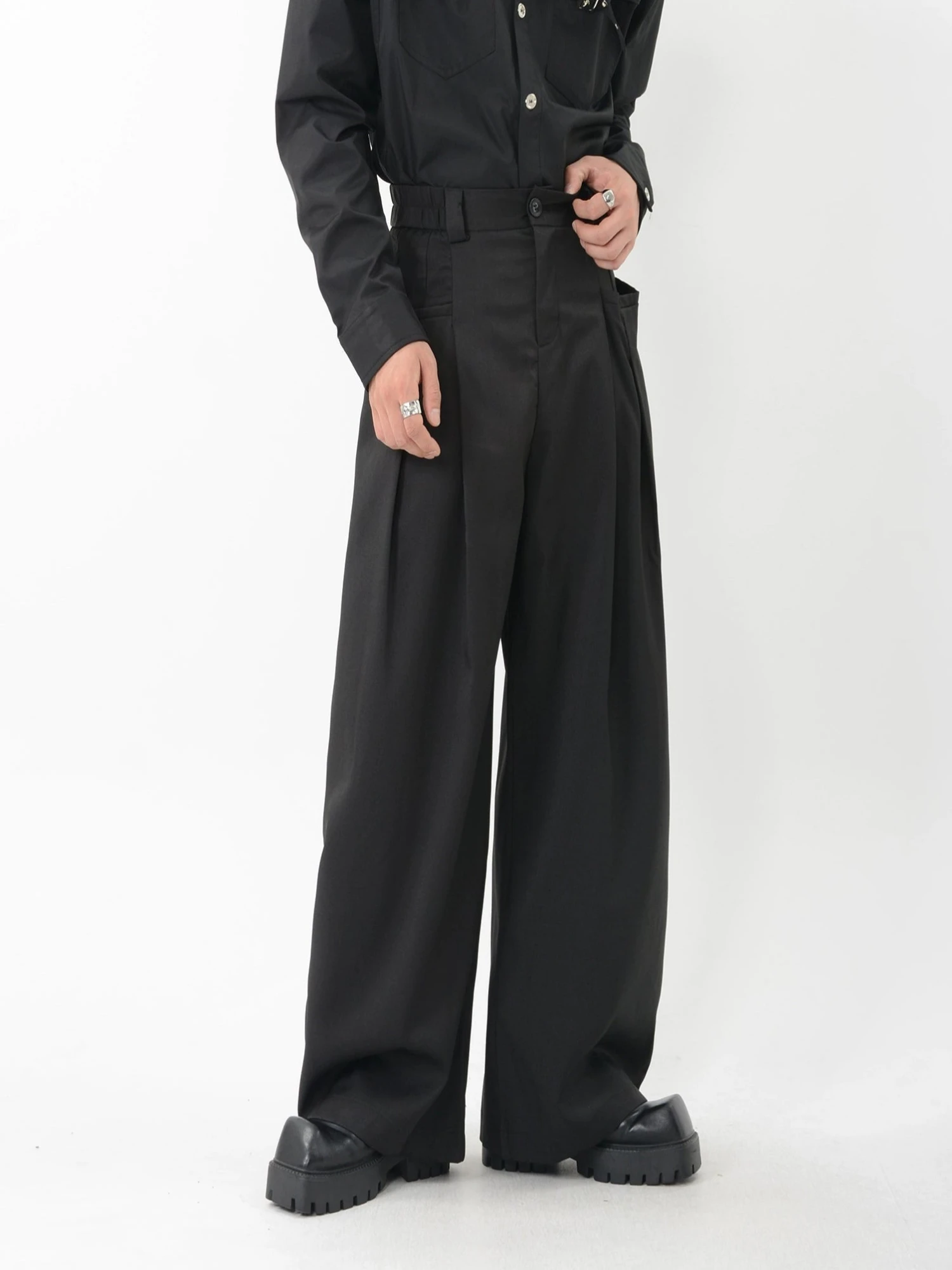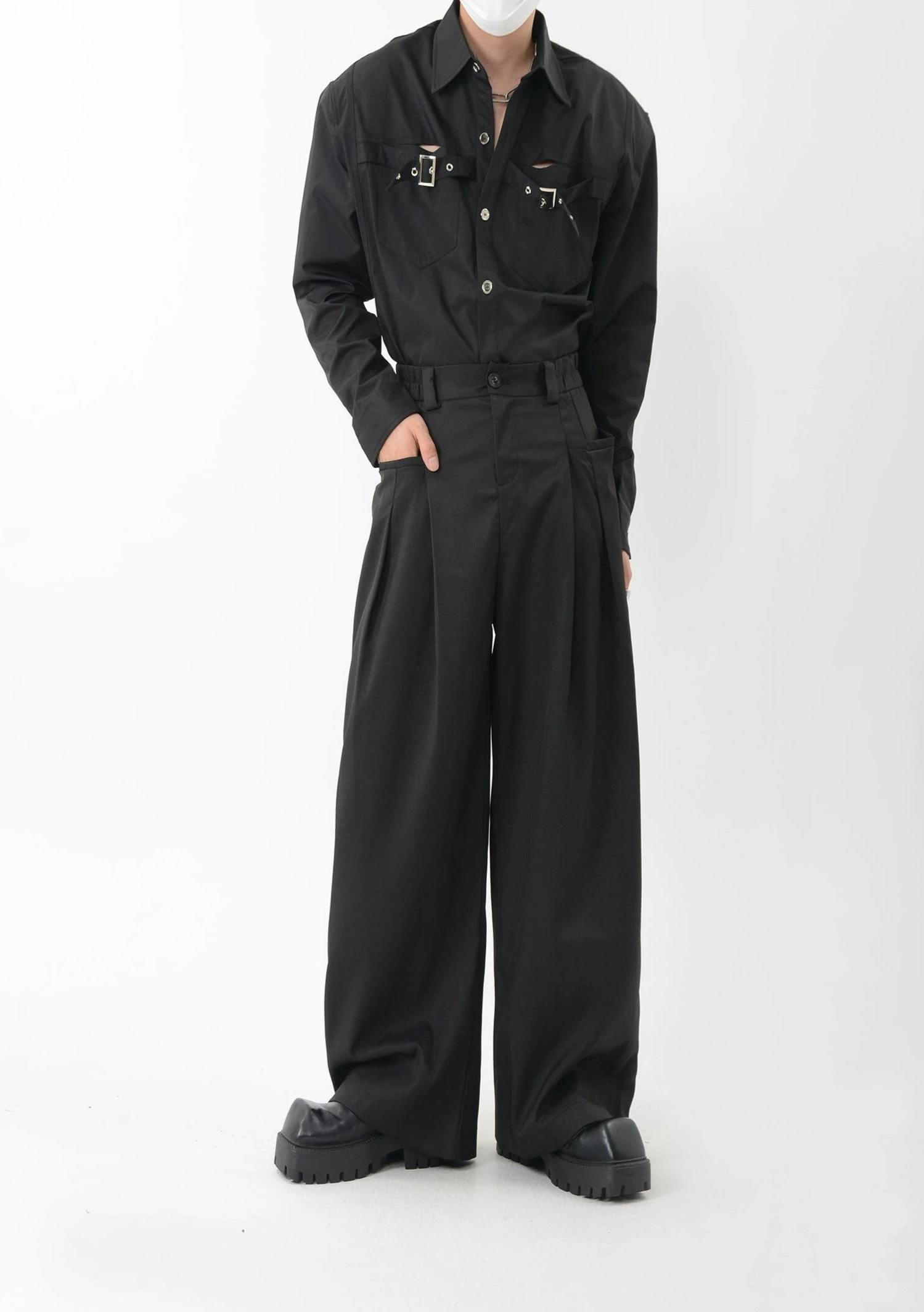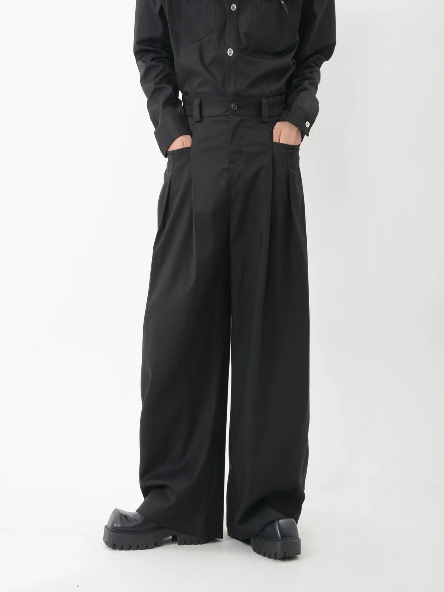 An essential piece that effortlessly blends style and comfort, these trousers are designed to add a modern edge to your outfit while maintaining a timeless appeal. Crafted from a high-quality woven fabric with 97% polyester and 3% spandex, these trousers offer a relaxed, lightweight fit with excellent durability. The structured pleats and loose silhouette create a flowy drape, emphasizing both comfort and sophistication. The minimalist fine-line pocket detailing adds a refined touch, suitable for smart-casual or formal settings alike.