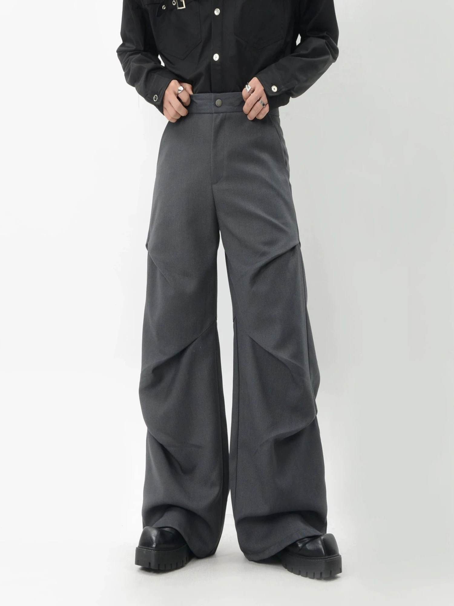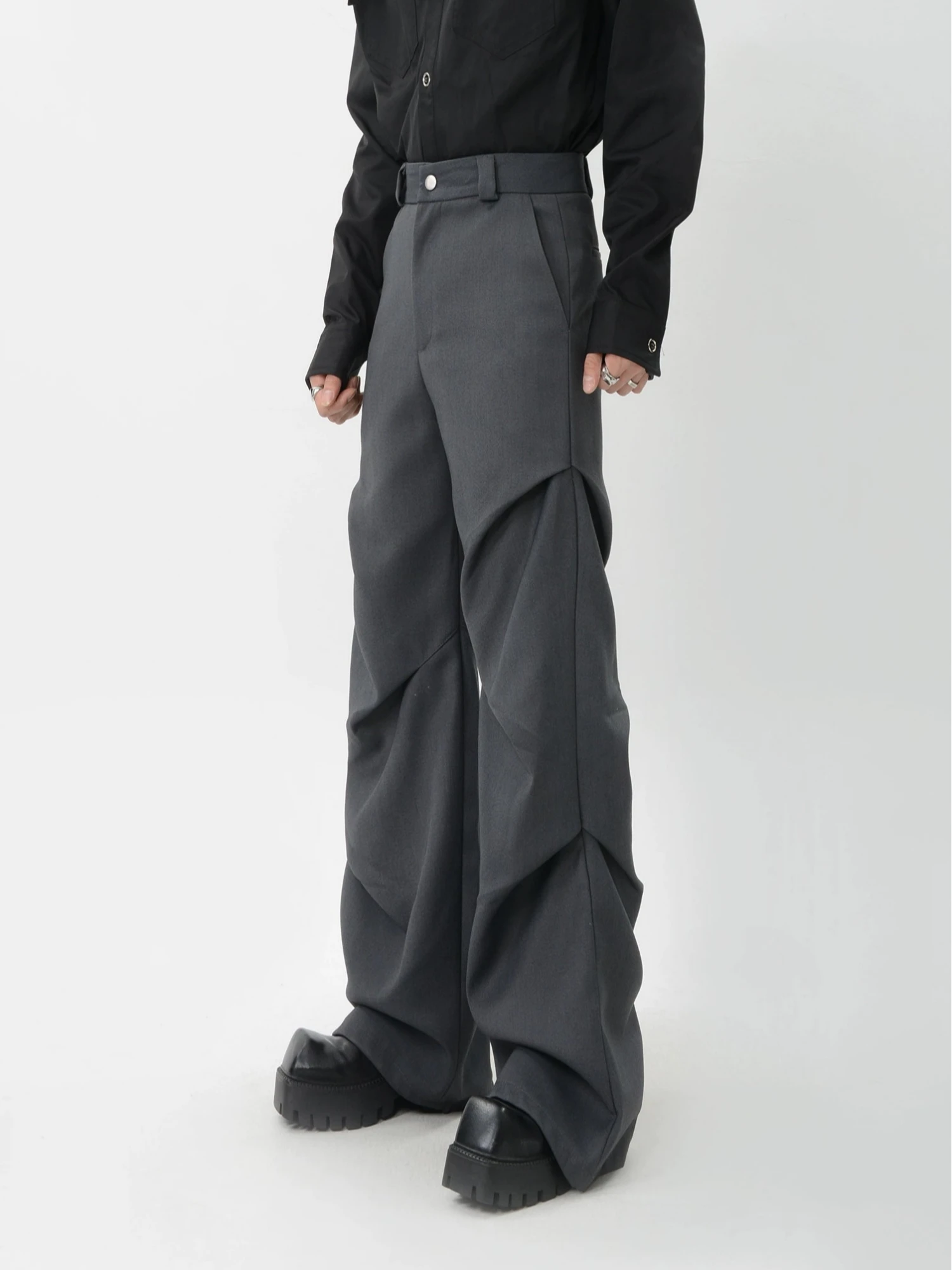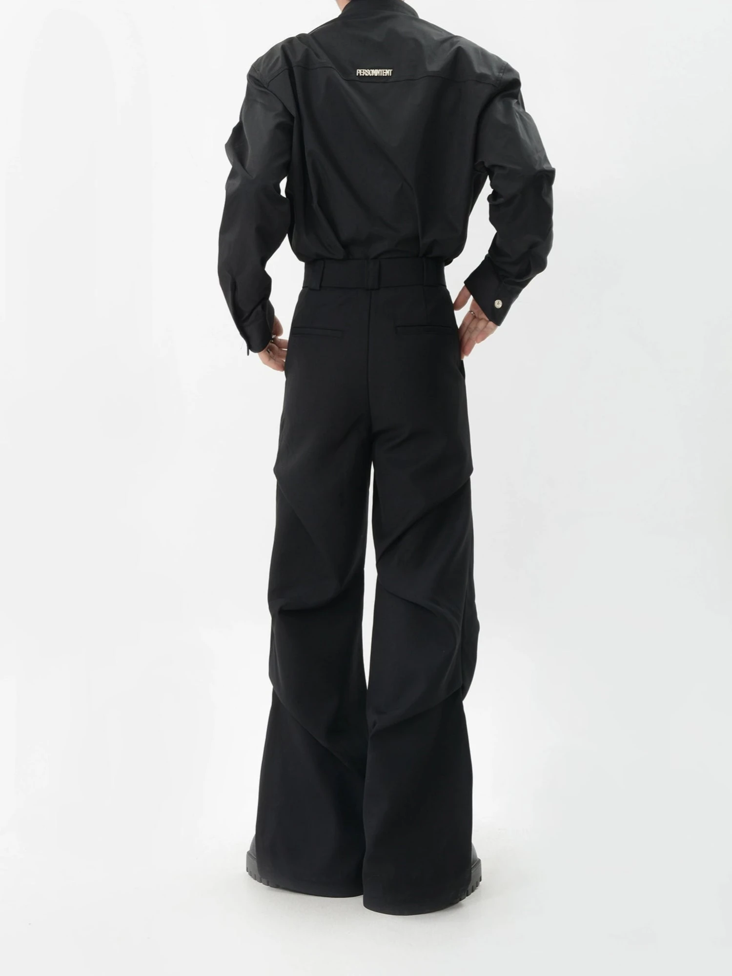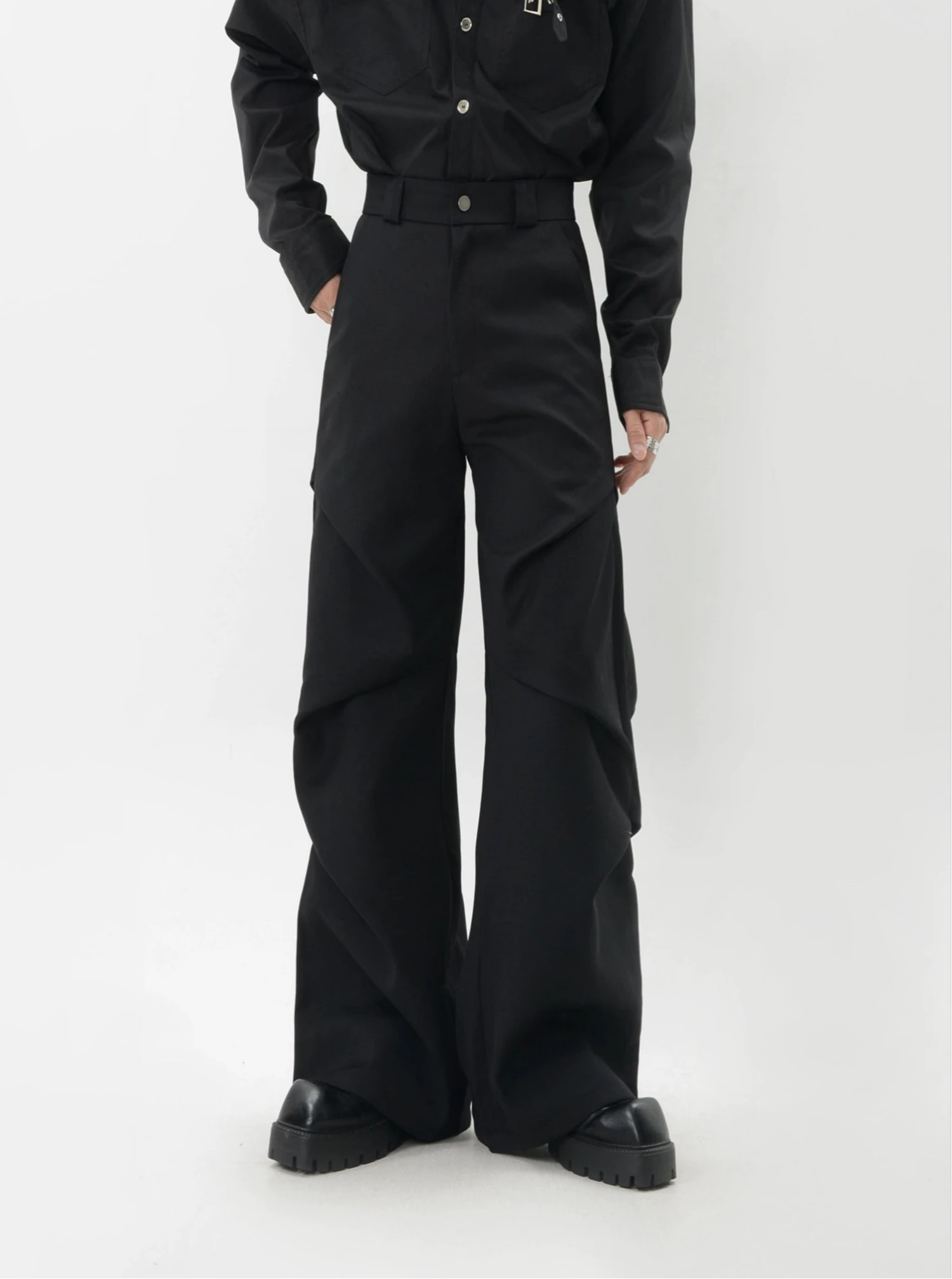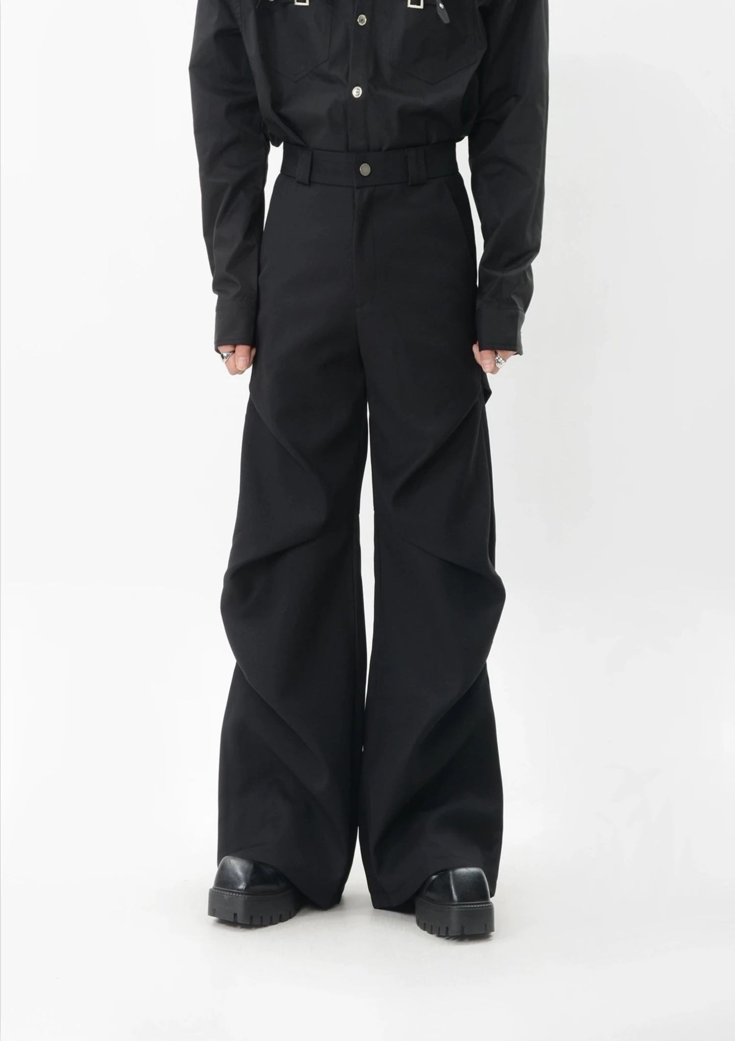 These trousers feature innovative zigzag drape detailing along each leg, creating a sculptural yet effortless silhouette that speaks to refined individualism. Crafted from a premium blend of 75% polyester and 25% cotton, the fabric is both durable and comfortable, offering a smooth, wrinkle-resistant finish. The high-waist fit and structured tailoring ensure an elegant, elongated look, while the wide-leg cut allows for natural ease of movement.
