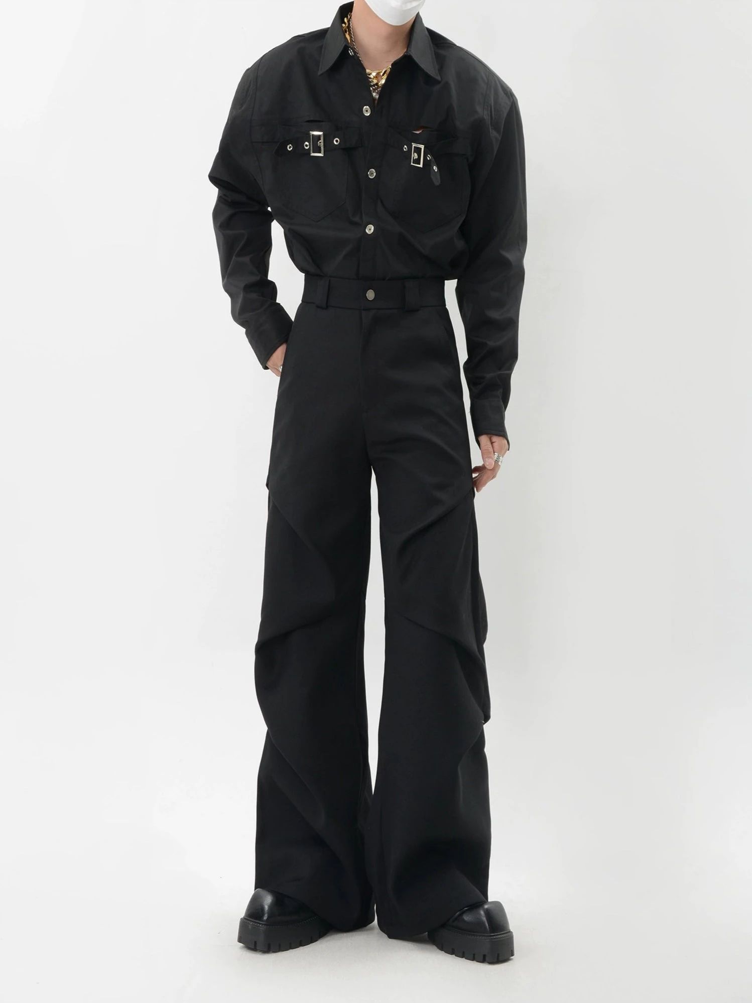 The Wide-Leg Zigzag Drape High Waist Trousers combine striking modern design with versatile wearability, making them a bold wardrobe staple.