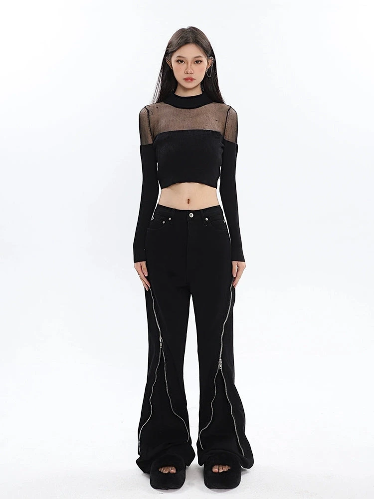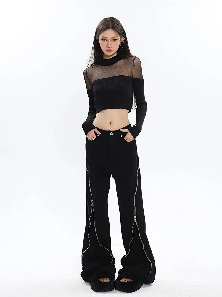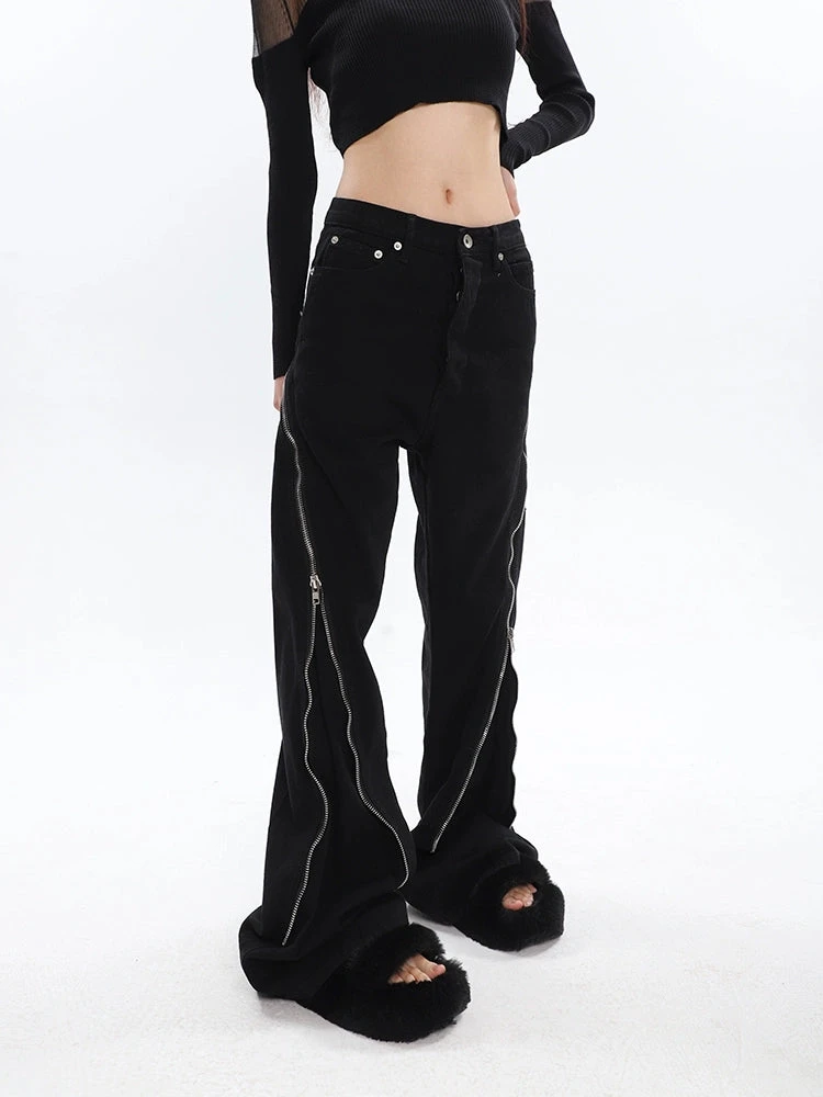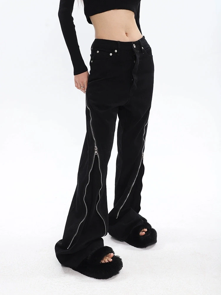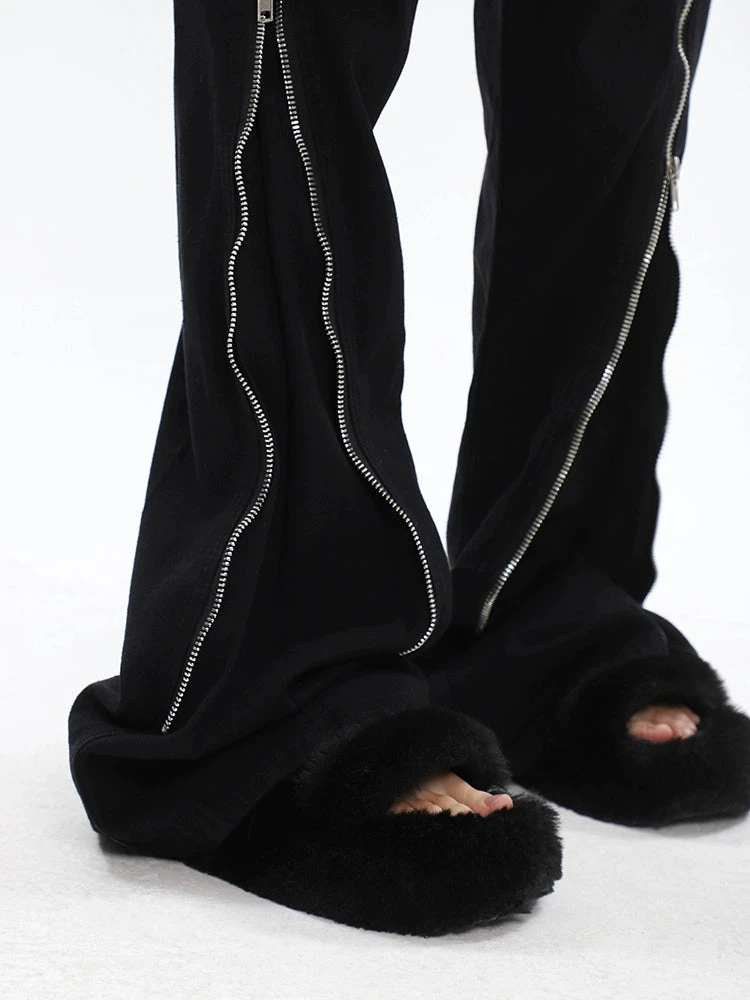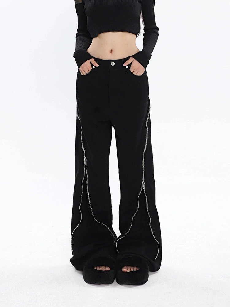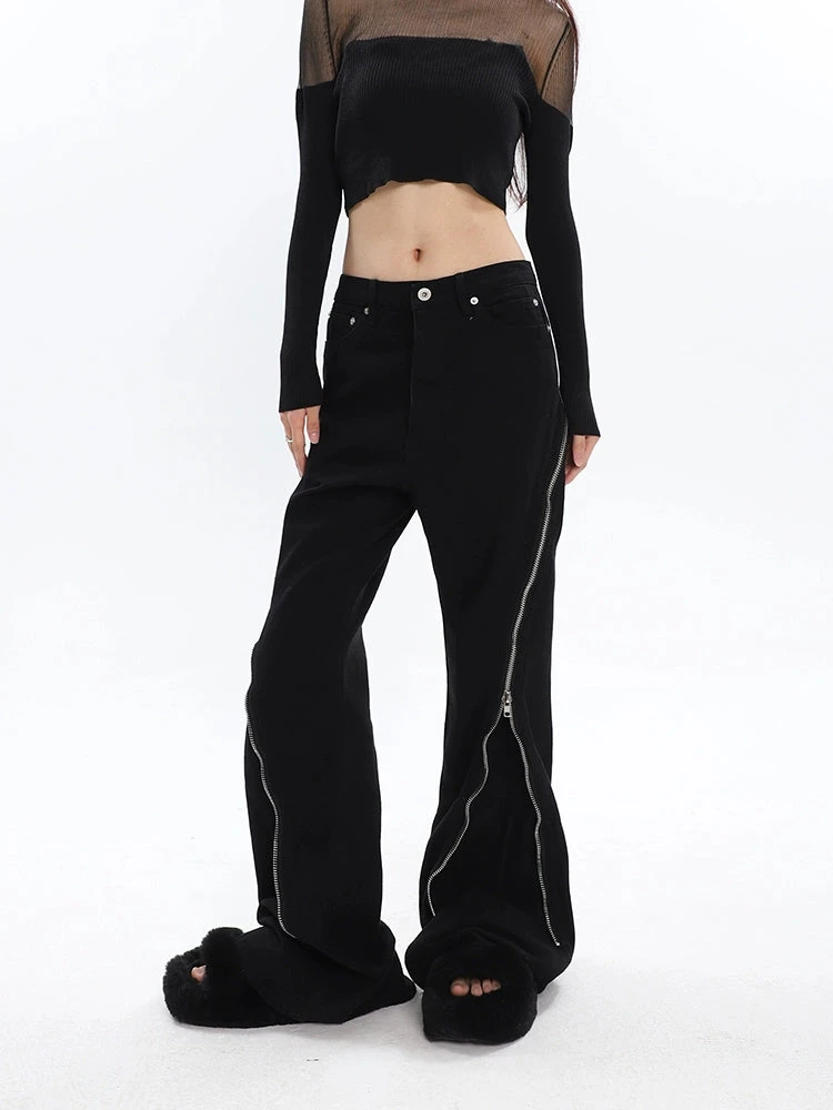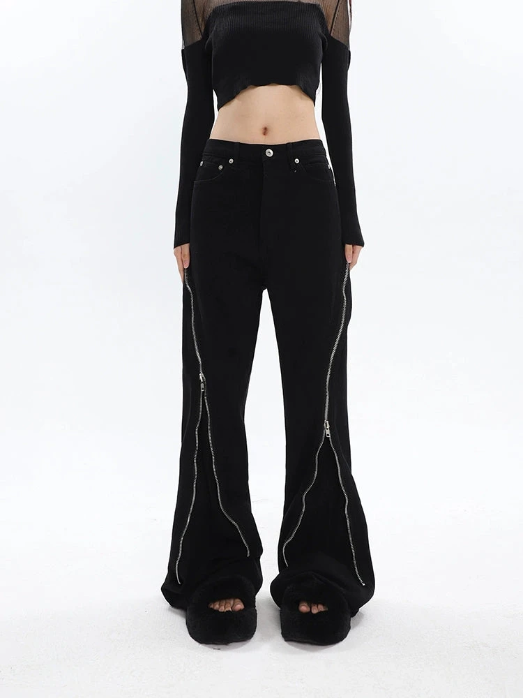 Embrace the balance of sophistication and edge with our Zippered Split Semi-Flare Pants designed for the modern woman.